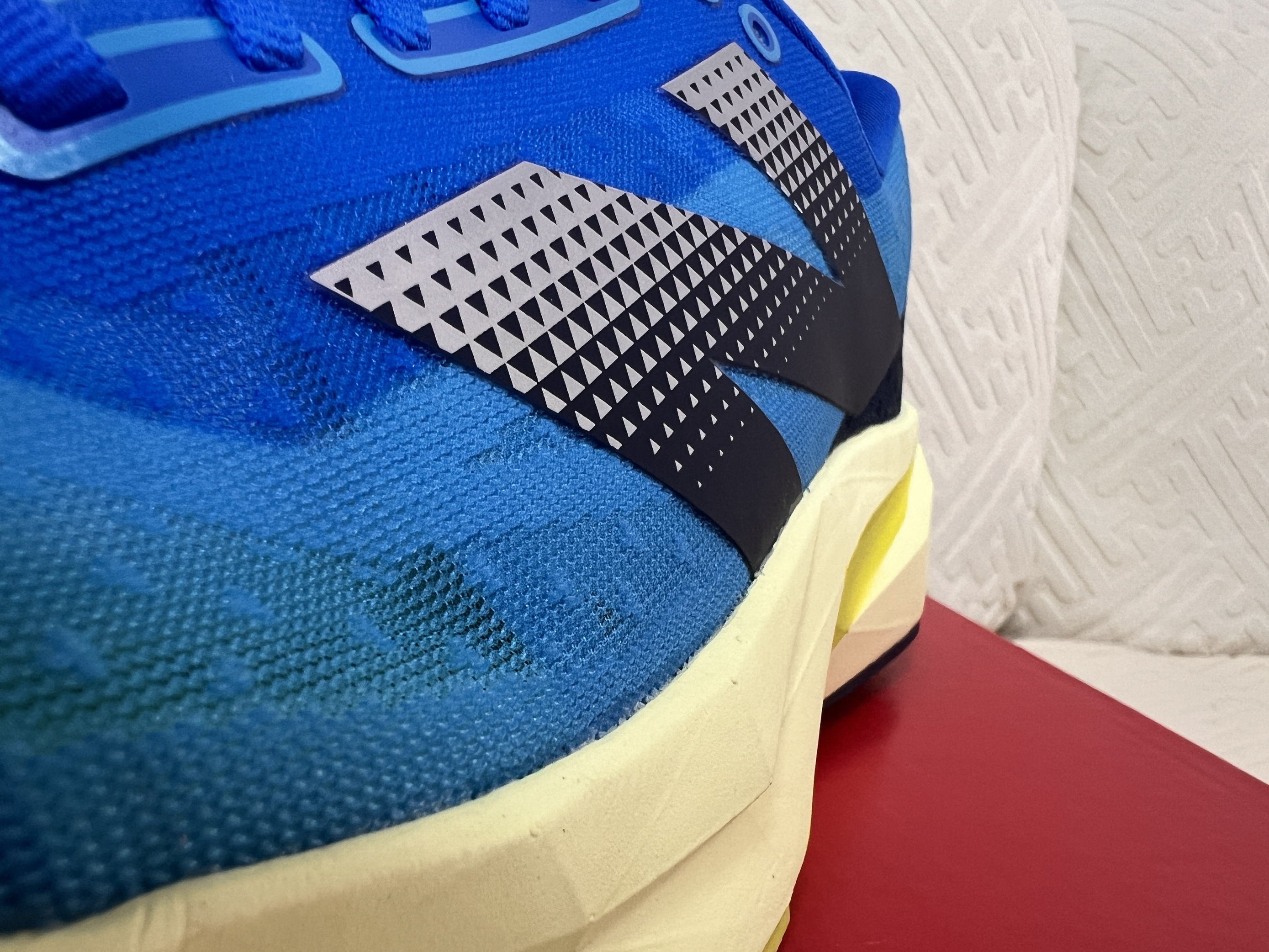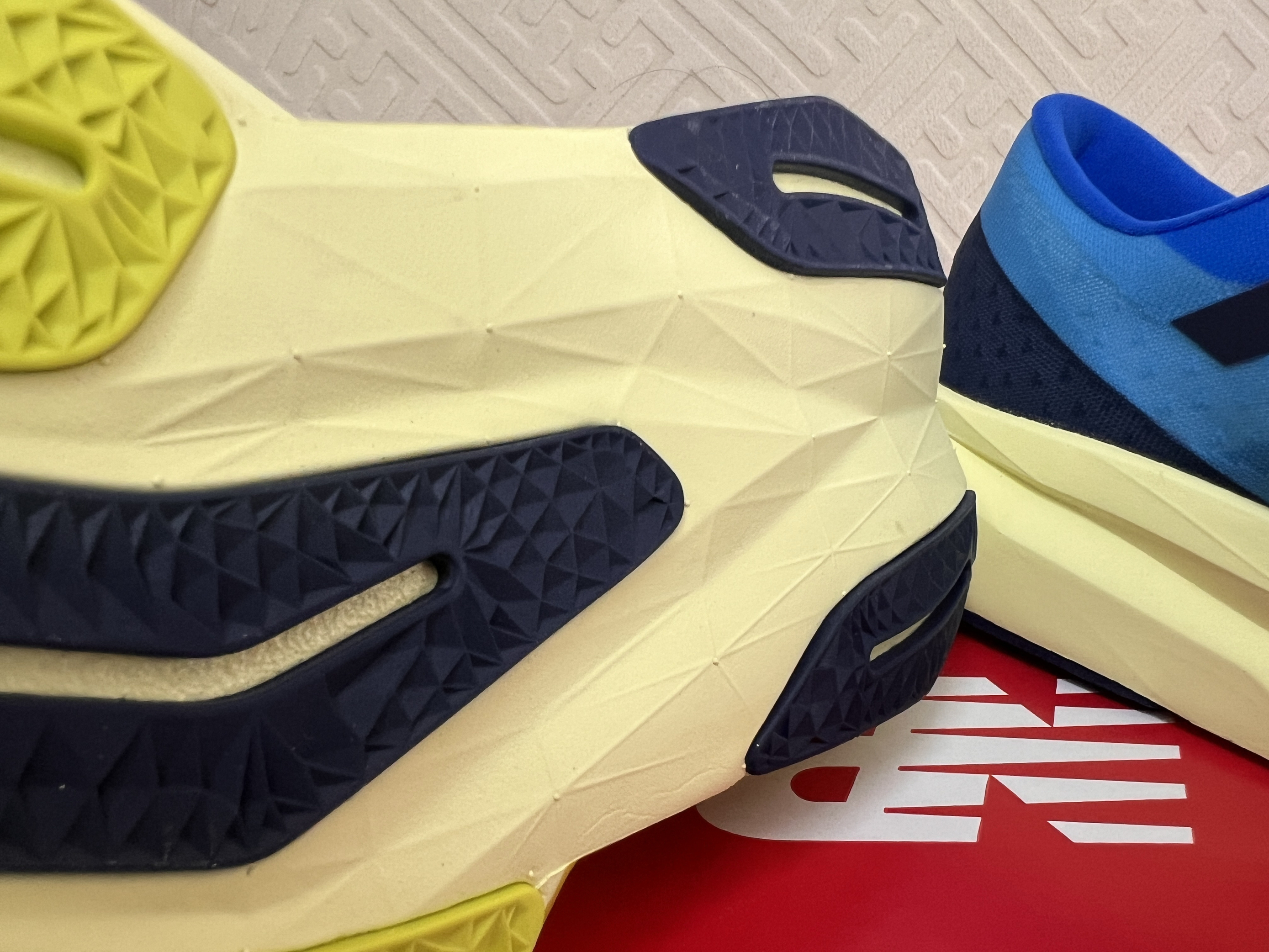 再来说说这中底呀,这可更是大有乾坤呢!这中底采用的是升级的peba基材的FuelCell中底哦,而且呀,跟前一代比起来,它可是加厚了2.5mm呢,这意味着什么?意味着它的回弹力度提升了15%呀,哇哦,这可太牛啦!想象一下,当咱们穿着它跑步的时候,每一步踩下去,都能感受到那种超强的回弹,就好像这鞋子在给咱们的脚助力一样呢。还有哦,这6mm的前后掌坡差,让这鞋子的韧弹表现更持久,缓震也更稳定啦,跑起来那感觉肯定超棒的呀。而且呢,这前掌、中足和后跟都进行了加宽处理哦,这样一来呀,咱们在落地和过渡步伐的时候,就更加稳定安心啦,不用担心会崴脚啥的,真的是考虑得太周到啦。