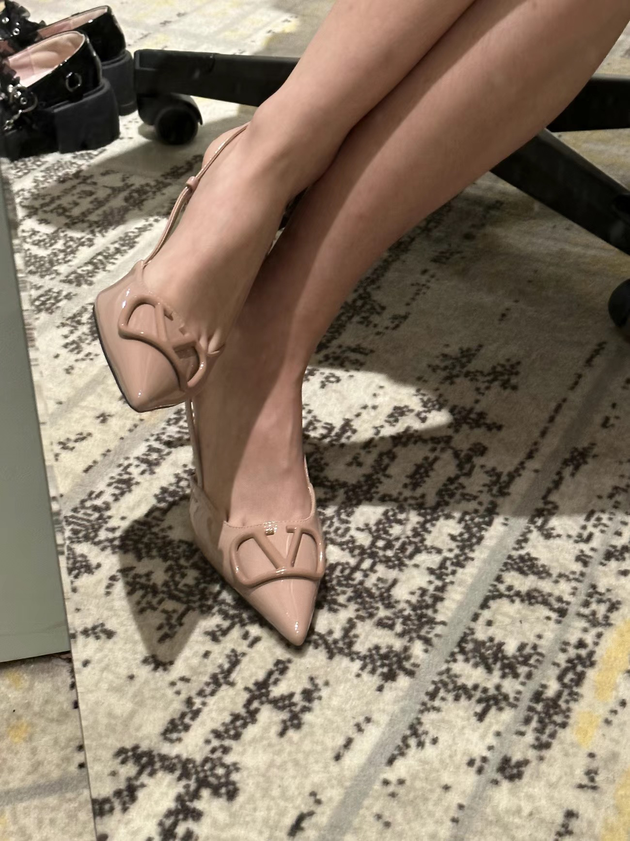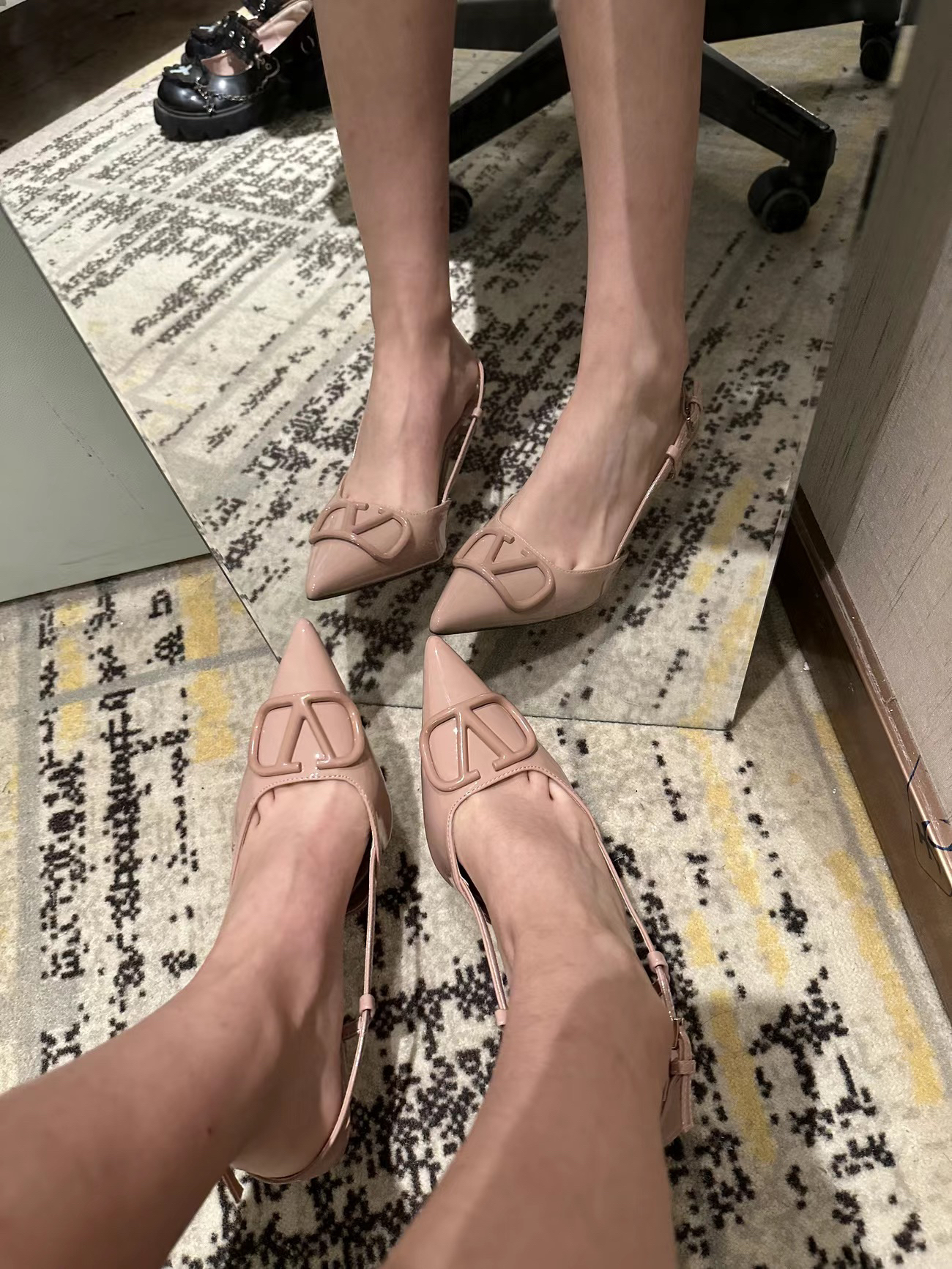 这双高跟鞋也太优雅了吧👸 裸色漆皮太绝了💗 纯欲天花板气质女神的feel~ 尖头显得腿又长又好看 上脚很舒服😌 跟很稳走路不磨脚 搭大衣风衣🧥短裙长裙都超级好看👍