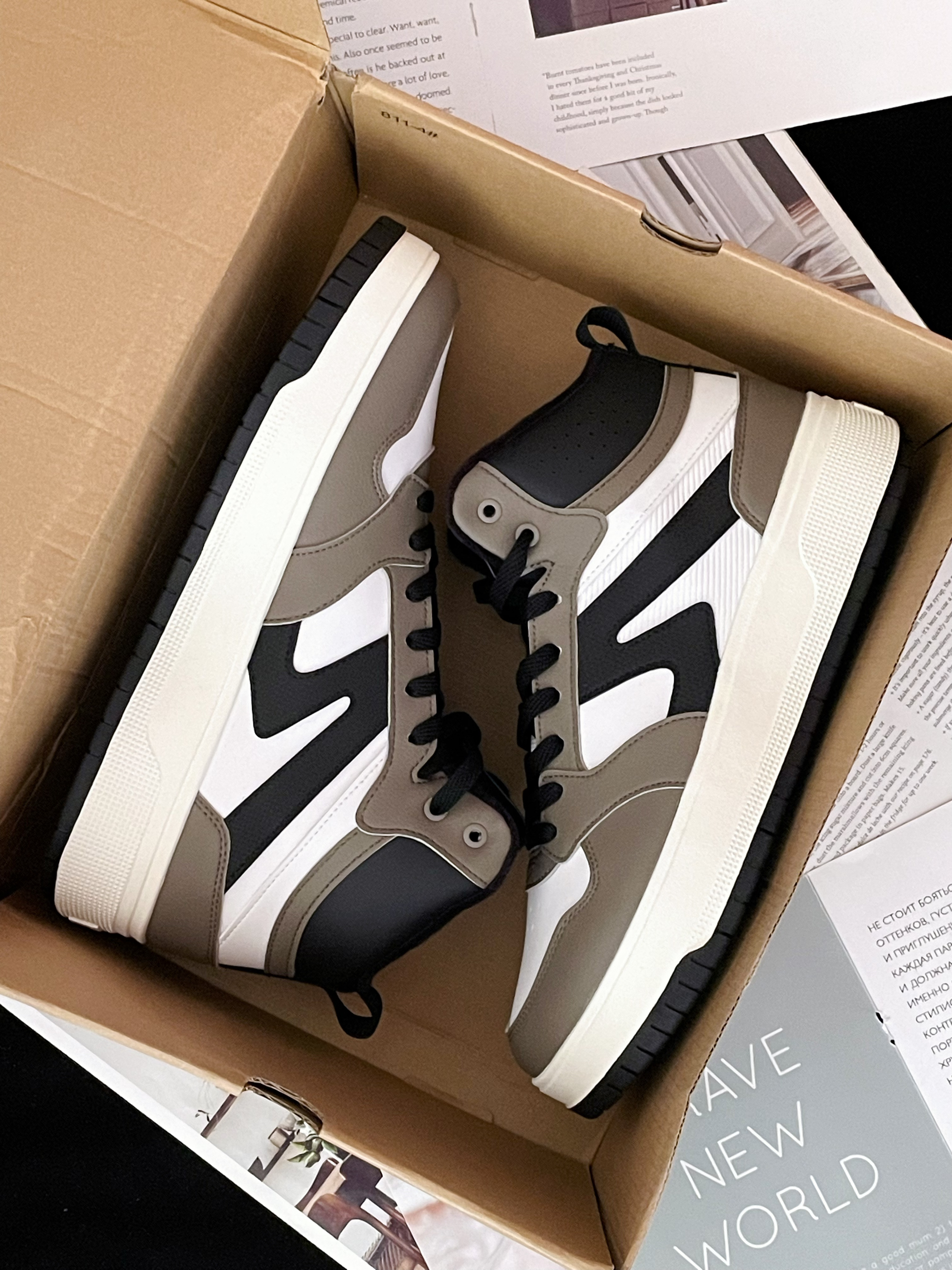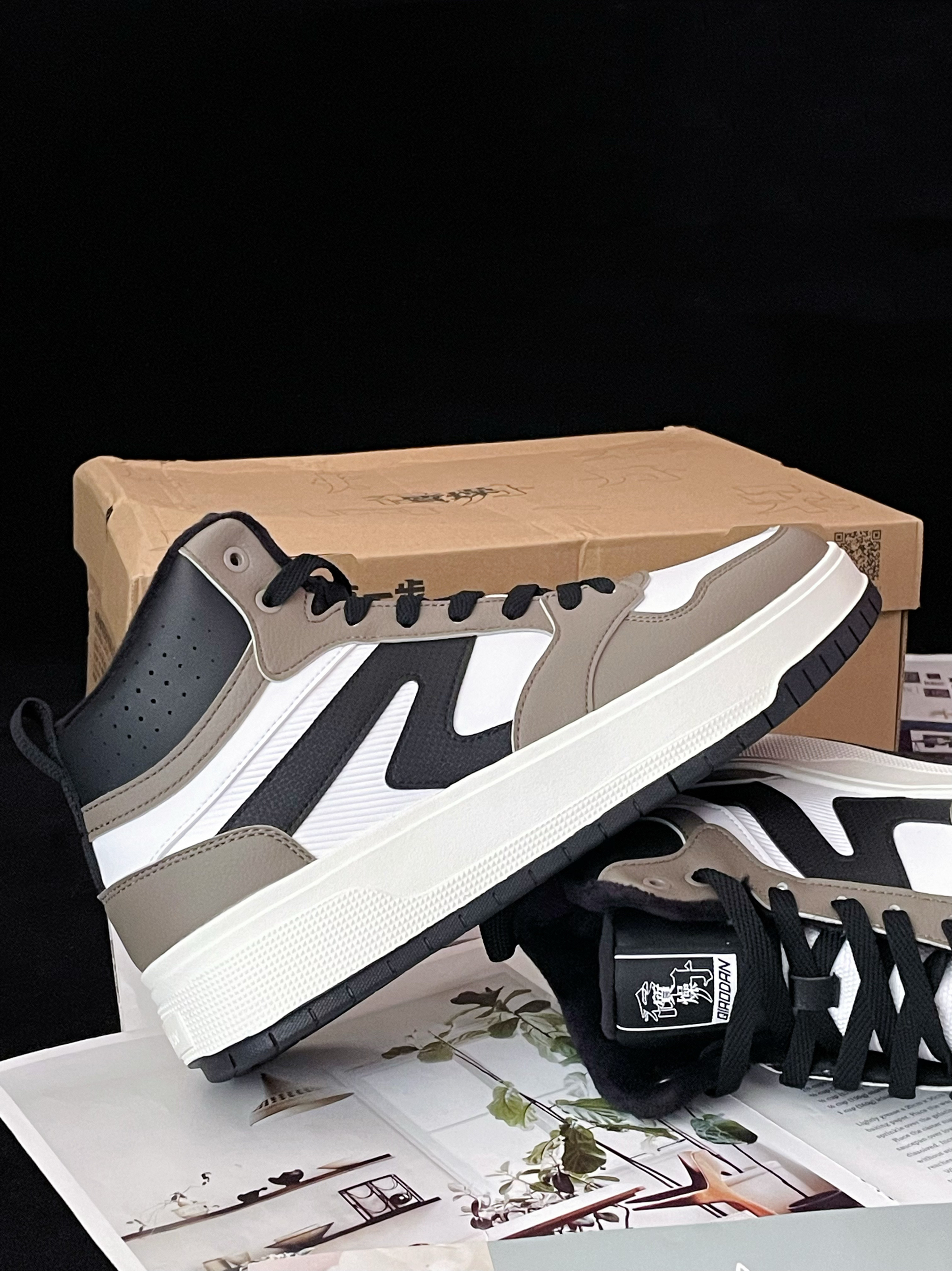今天给大家分享这双 中乔『棕白黑』加绒中帮板鞋 鞋款由白色/棕色/黑色为主色调 整体的配色蛮有美拉德风格的 也很契合秋冬季节的氛围~ 皮革材质的鞋面搭配上中帮的鞋型 兼顾了良好的透气性和包裹性 加绒的内里很保暖可轻松应对寒冷的天气 厚实的中底脚感软弹 舒适轻便 并且还有4️⃣公分左右的增高效果呢~ 多纹路的大底耐磨防滑问题不大 ⚠️尺码方面不偏码 建议正码选择