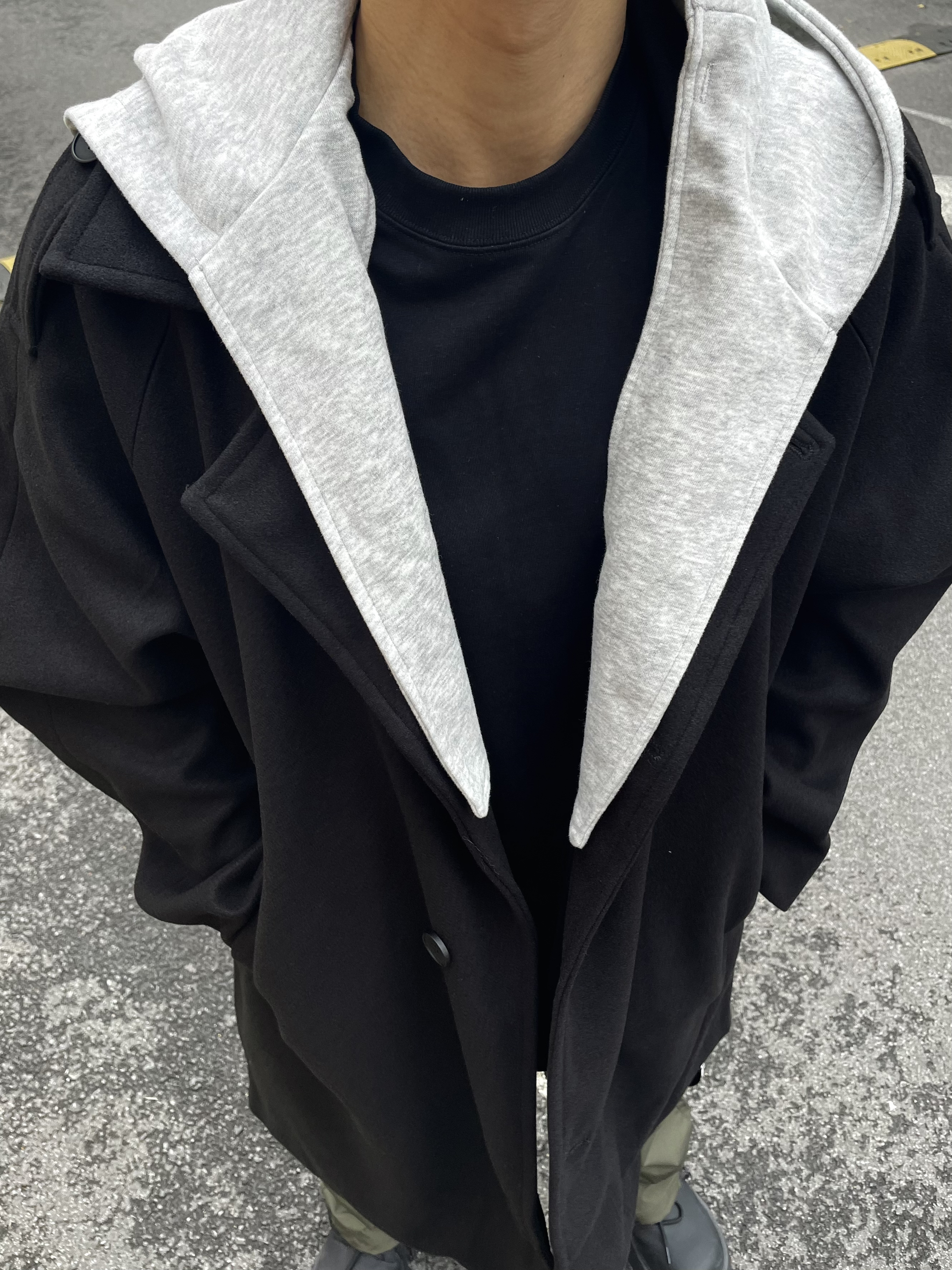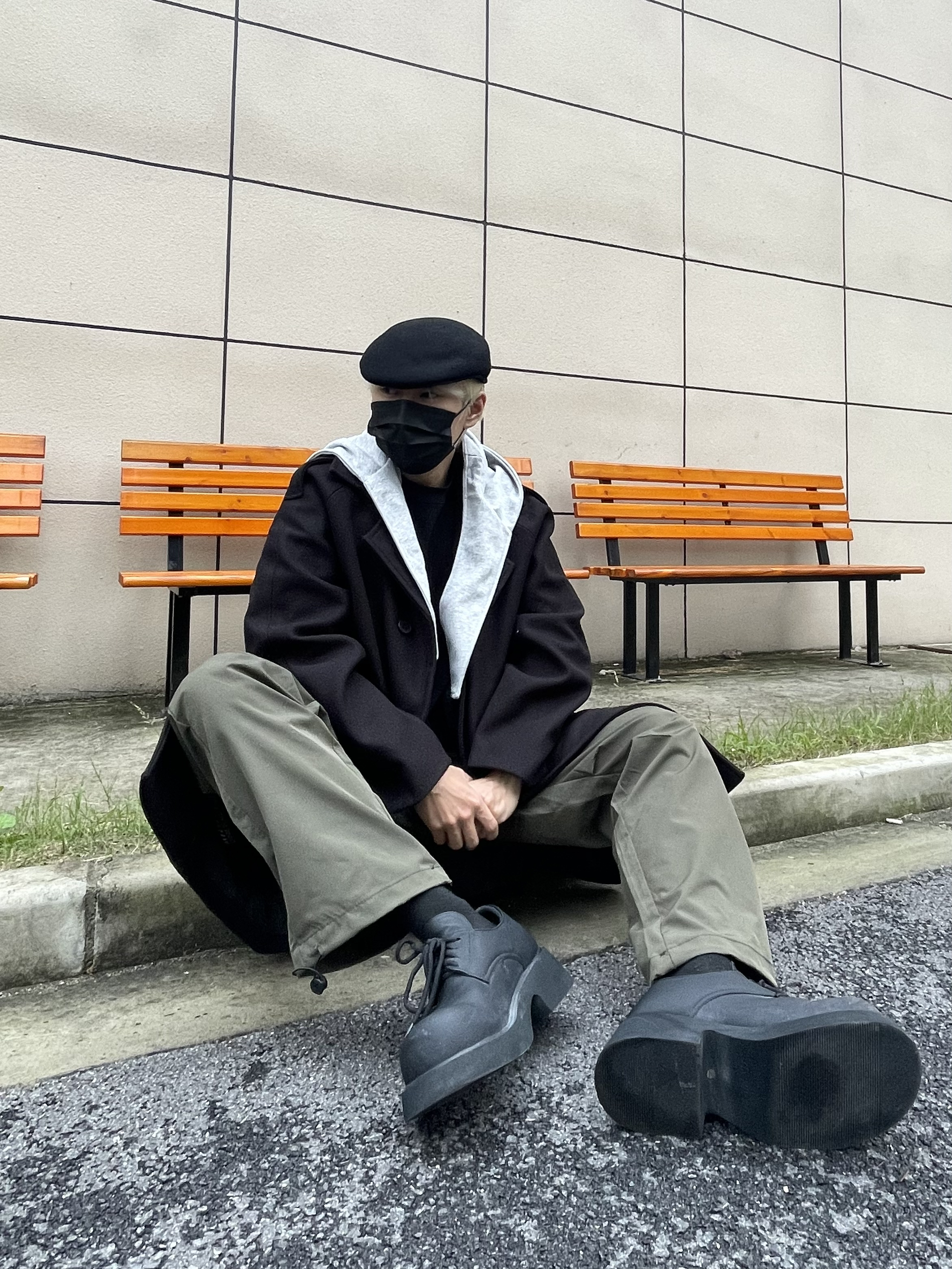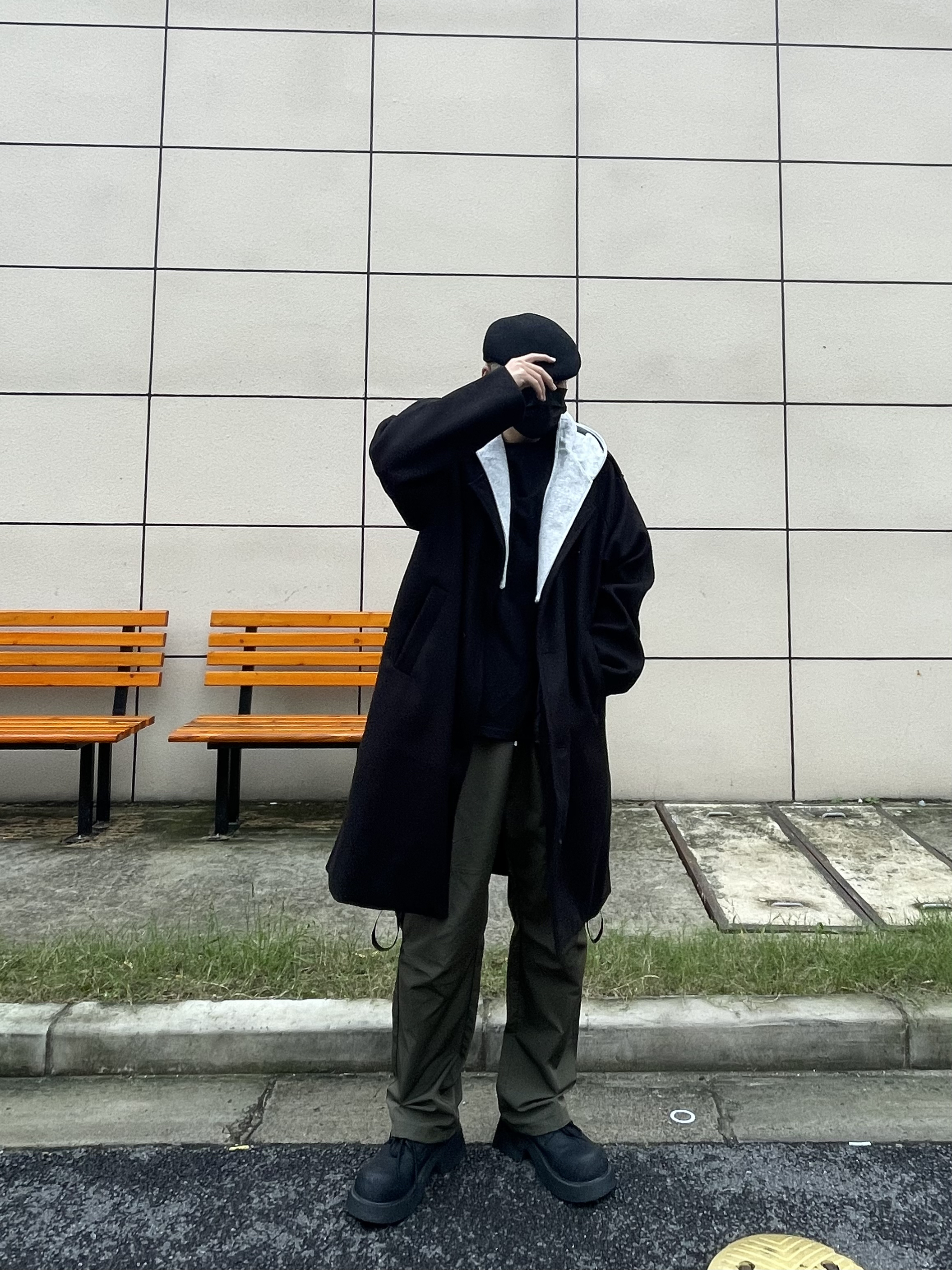 大家好!今天是大衣的小猪🐷! 周末了想走一个绅士风度出门约会~ 今日搭配主打一个约会套装❤️~ 上身一件黑色大衣🧥,长款的设计这两年真的顶翻了^_^,更漂亮的是这件还做了可拆卸帽子设计,灰色连帽扣在上面更加有层次了嘿嘿😁! 裤子一条绿色飞行裤👖上身很好看,搭配黑色德比出门确实优雅呀^_^