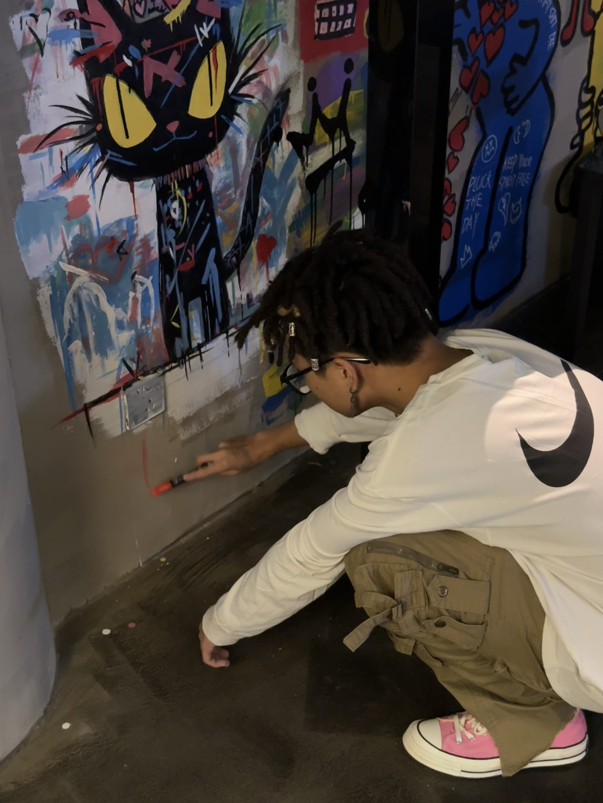 👔 上衣:stussy nike logo t 👖 下装:卡其cargo 👟 鞋子:chuck70粉色 🎒配饰:自己remake的帽子