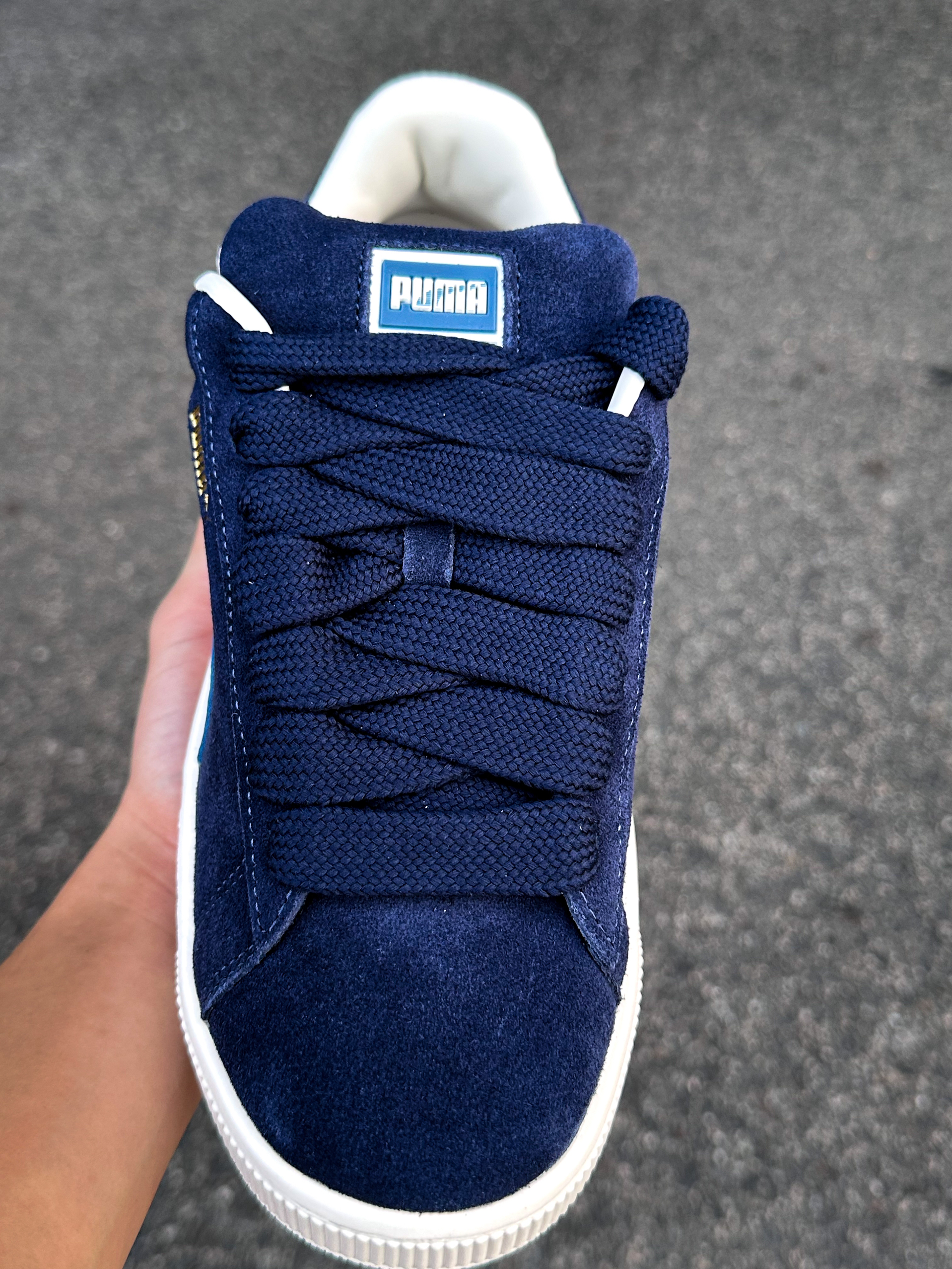 puma Suede 海军蓝配色是当季新品的面包鞋 这双才用了牛剖呈皮革 鞋身宽大廓形 鞋舌很厚很柔软穿起来更舒适 包裹性很好 不会压脚背 鞋底采用了纹路大底 抓力强而且防滑耐磨 不容易打滑 日常穿搭也是首选的 实物到手比网图会更好看 马上要双十一了 喜欢的可以入手