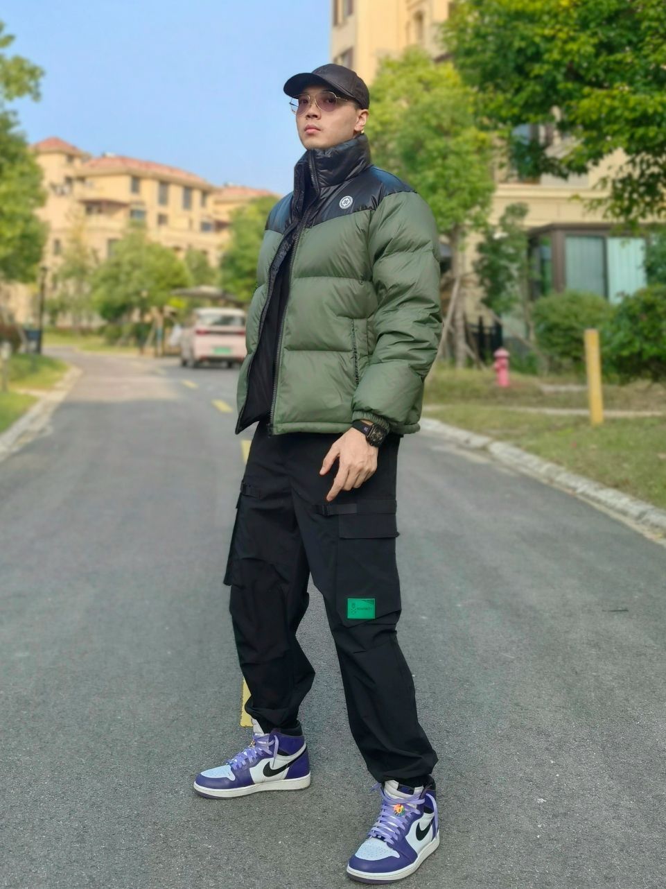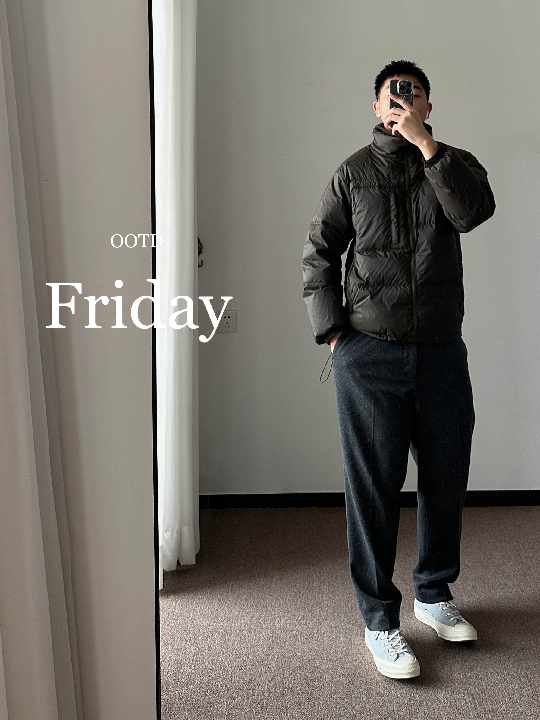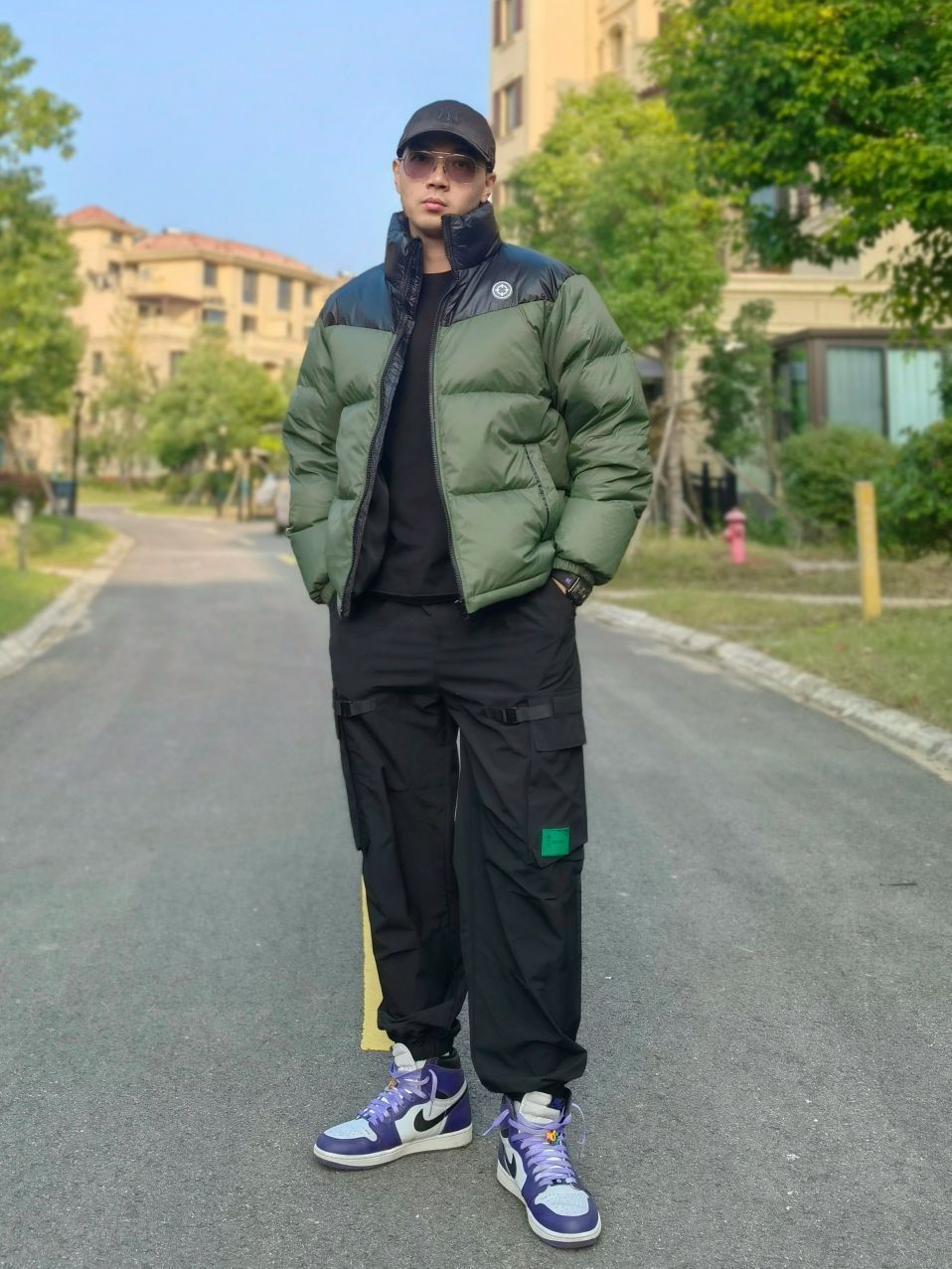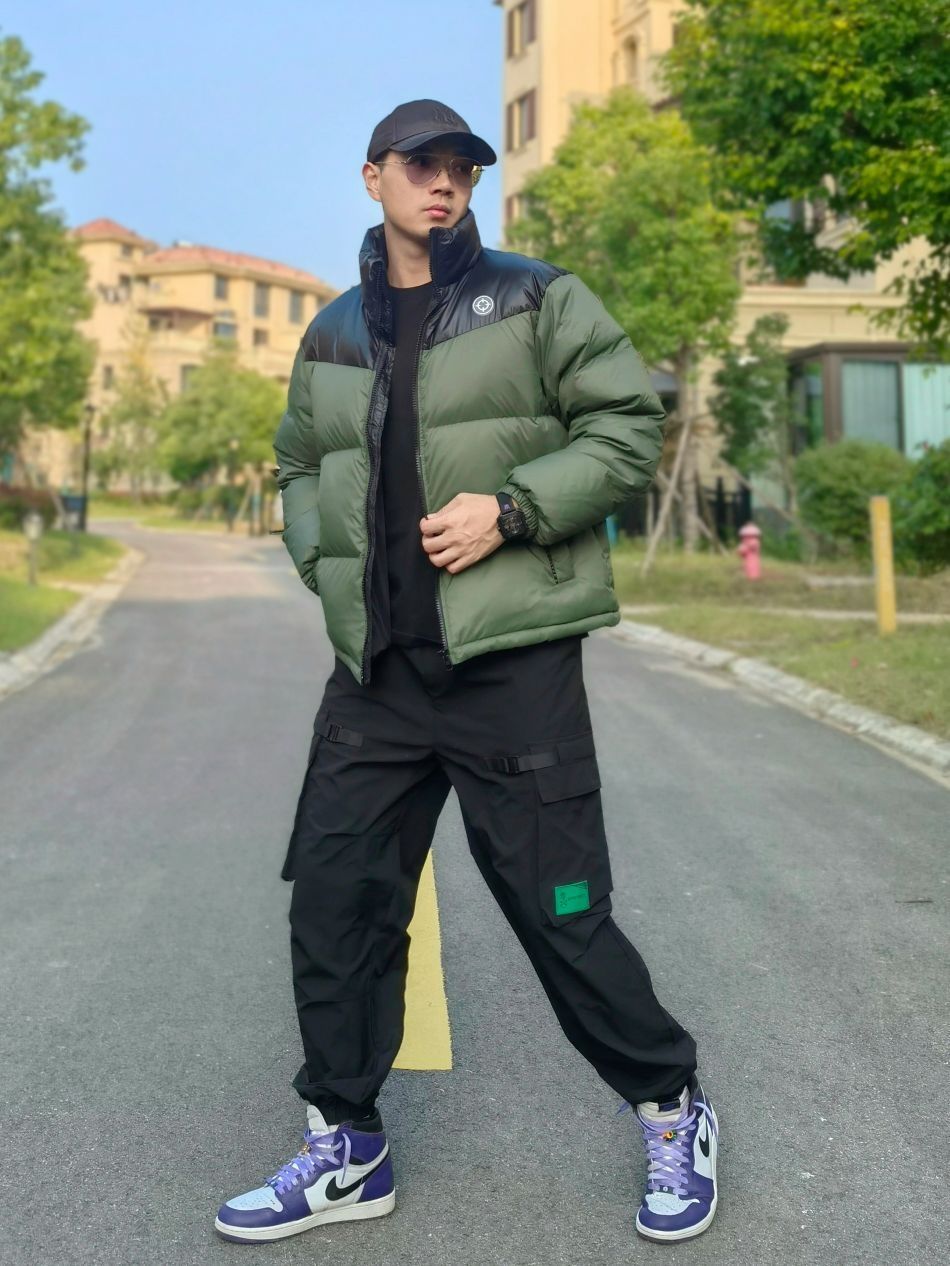 hello 大家好,这里是撒旦锅锅 💜179cm/80kg 🌞今日穿搭为户外工装风格 搭配类型:羽绒服+工装裤+AJ1 上身搭配黑绿色准者短款鸭绒羽绒服,蓬松度很好,80%的绒子含量相当保暖,运动男孩运动之前和结束保温都非常重要,下身选择一条黑色工装裤,最后搭配一双AJ1,整体搭配户外工装运动风满满,真心推荐✔️