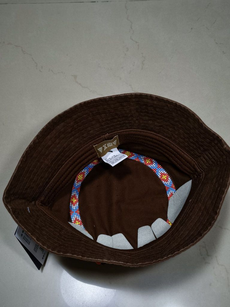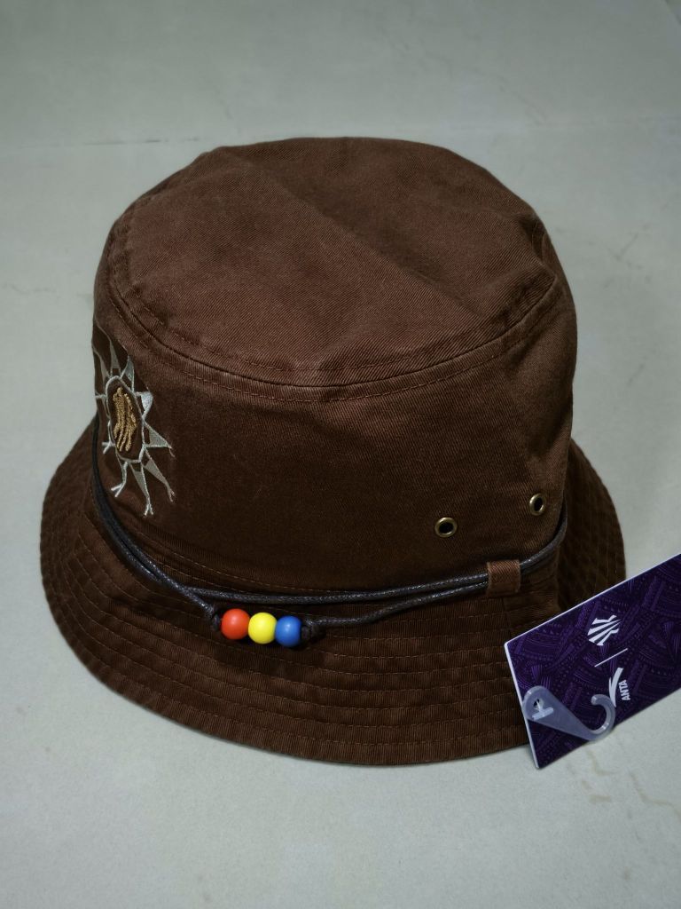 随kai1酋长一同发售的渔夫帽 深卡其色为主色 欧文之盾的loqo与欧文的部落“立岩苏族”灵感相融合 帽子内部有一圈特殊图案纹路 尺码M(57mm)和L(59mm)
