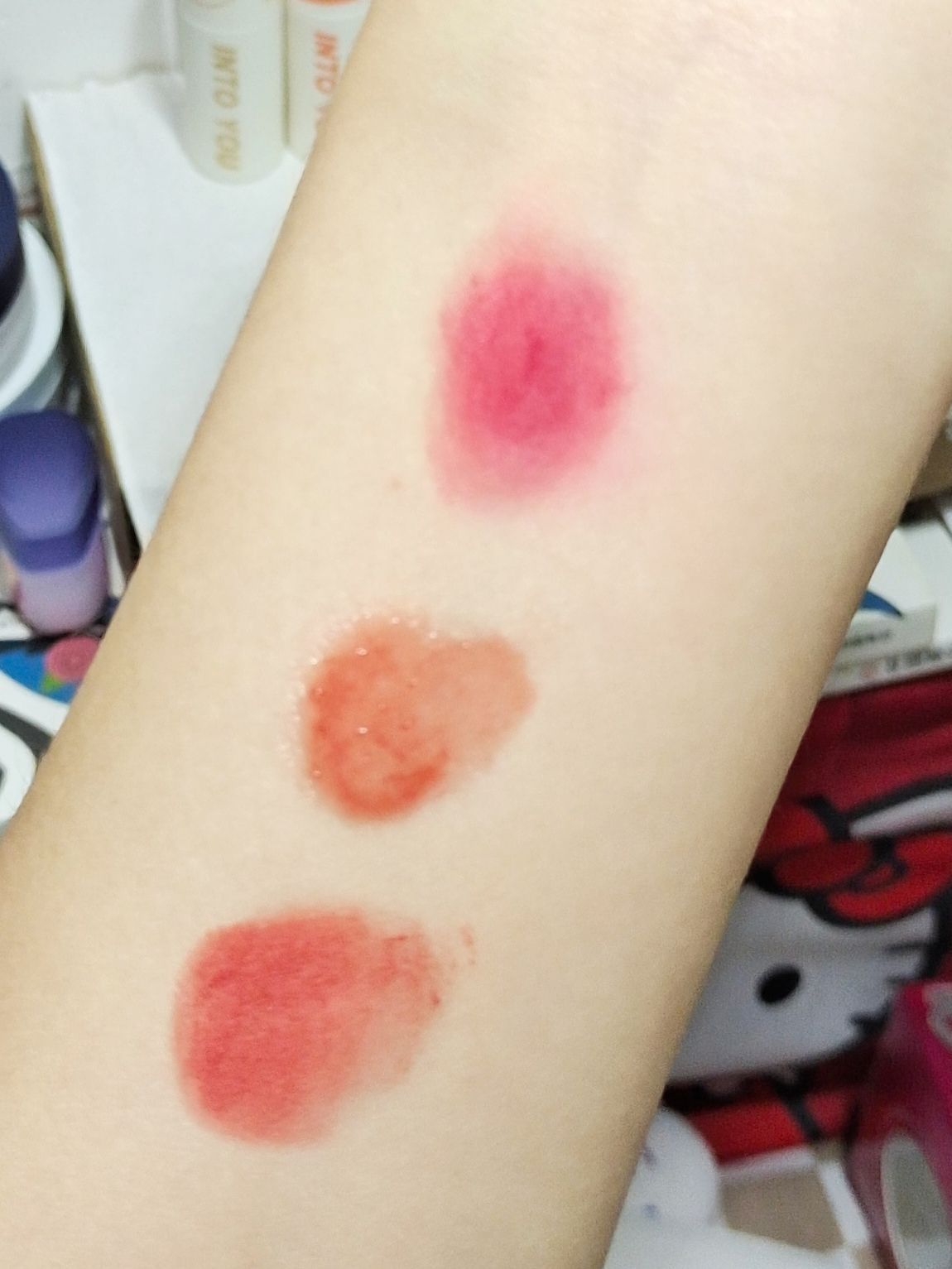 今天是一期口红试色分享 分别是intoyou他们家的三支口红 一共是两只哑光和一只镜面的 第一只是和草莓熊联名的 🧐色号是#OS02 这个颜色是比较韩系的颜色 偏桃红一点 深唇很适合 第二只是唇蜜系列的G08 颜色是偏橙一点的红 适合偏嫩妹一点的女生涂 显得超级温柔~😇 第三只是唇泥系列的W2 质地超级丝滑绵密 我真的爱了 颜色也是比较嫩一点的颜色 秋天涂也不会觉得干😉