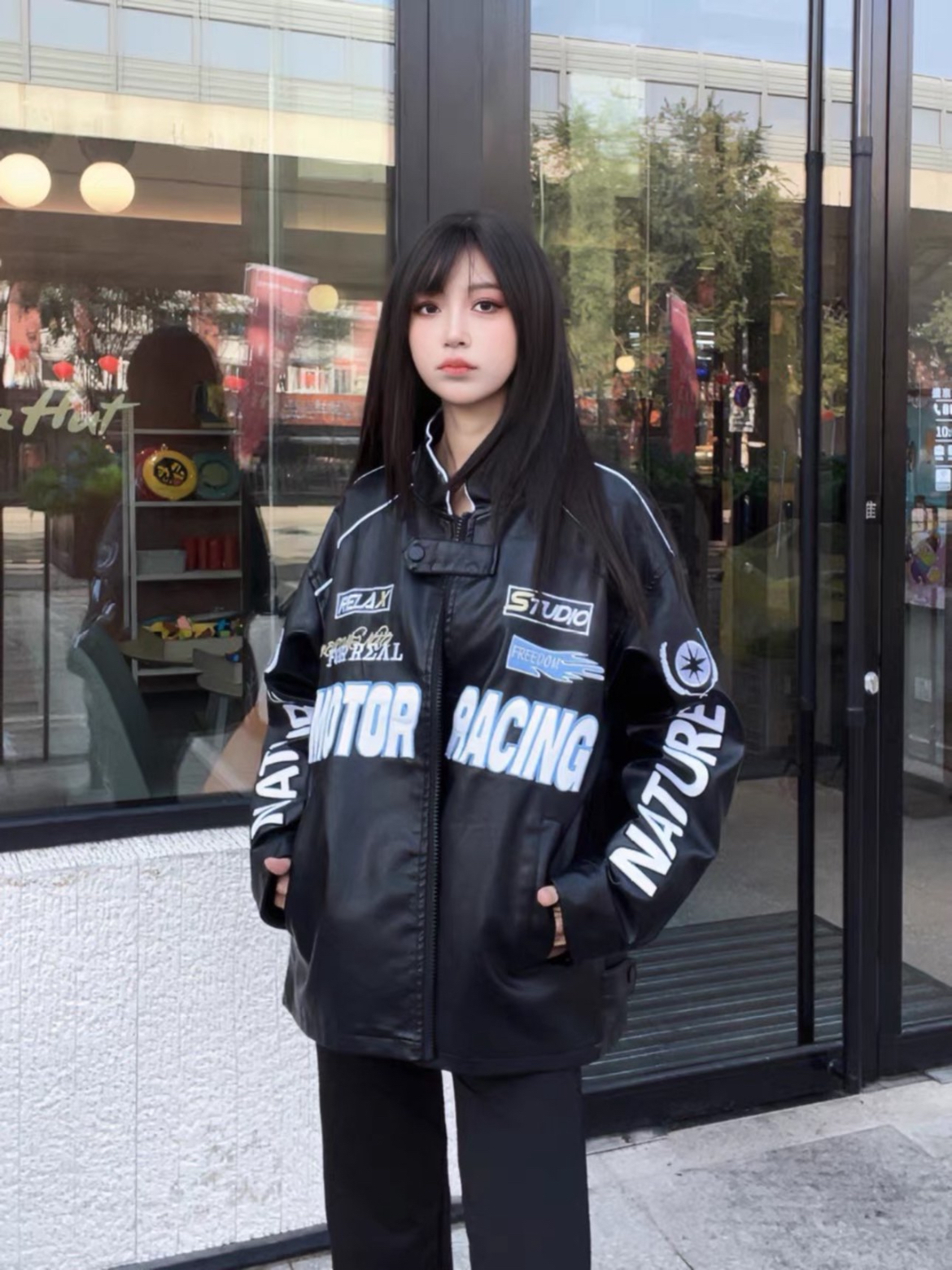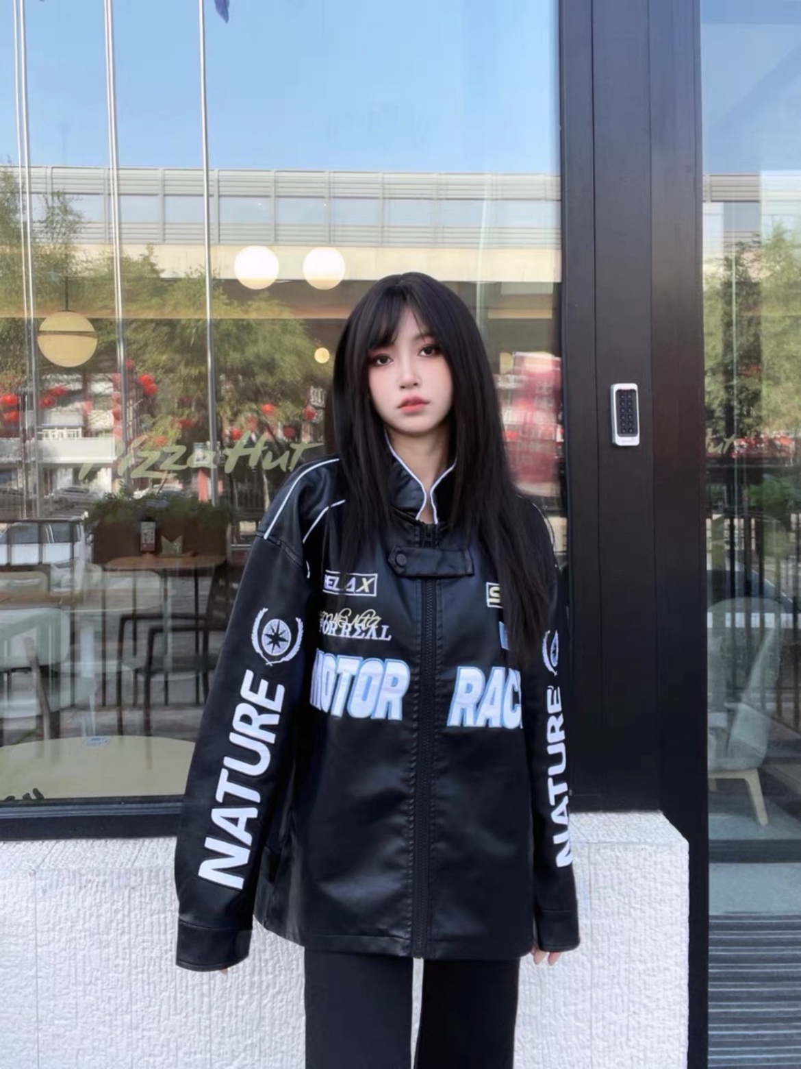 女生穿飞行服夹克的潮酷感你get了嘛~发现了一件超适合女生的飞行服外套。上身显得干净又街头!!pu皮材质非常时髦,布满衣服的飞行服元素非常醒目,给整个衣服做出了点缀,像这样的外套斩男又斩女! (图片来自网络,侵删)
