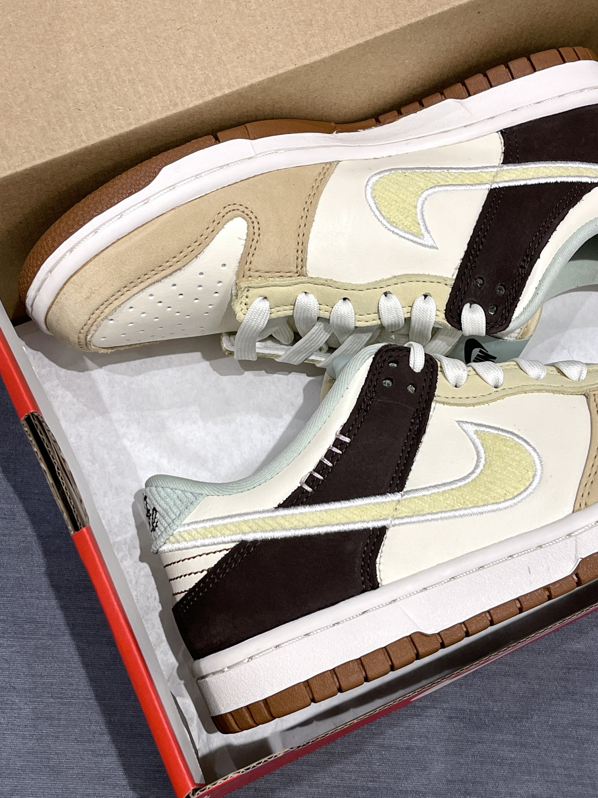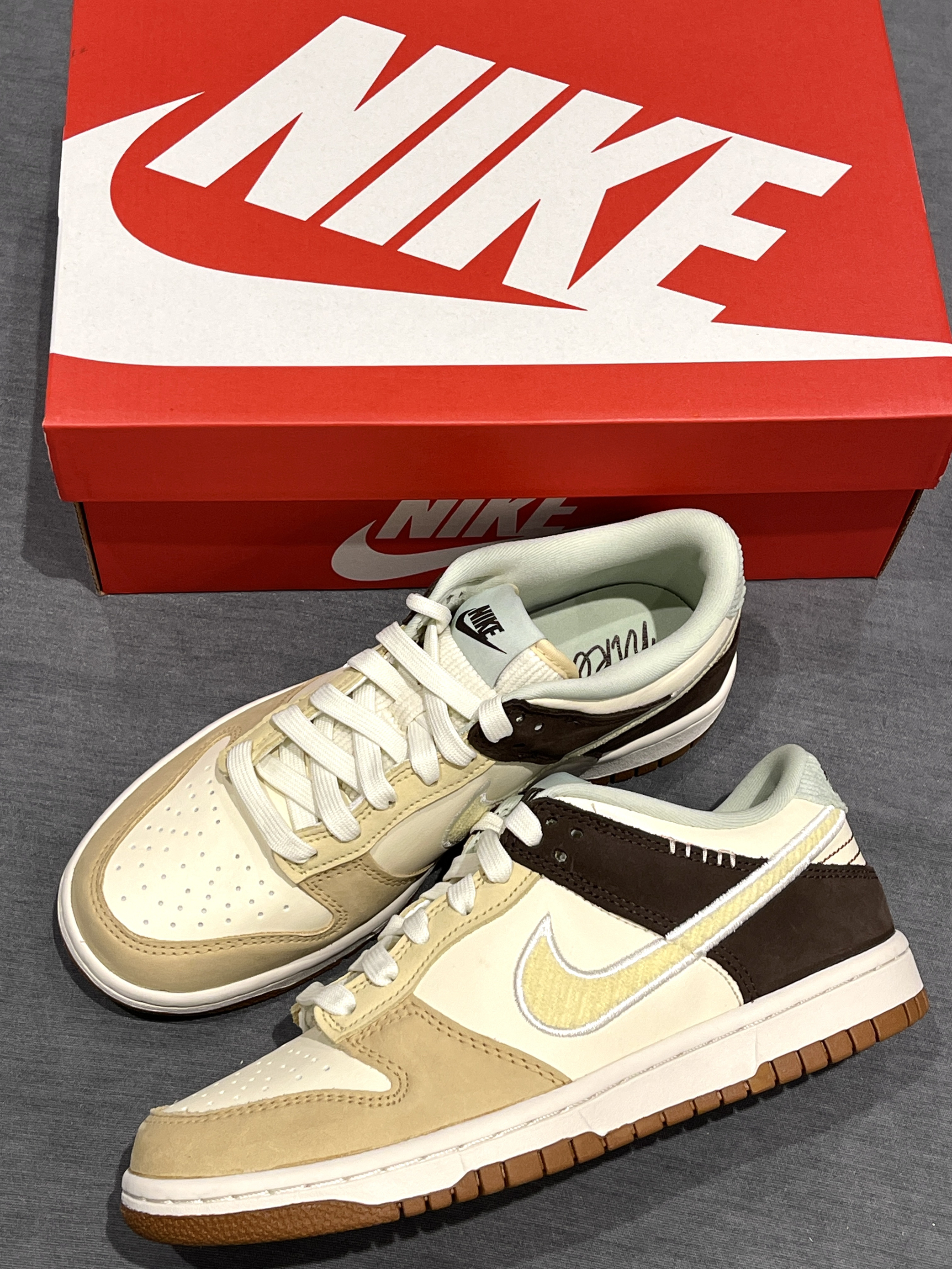 Dunk最近新出的秋冬配色有点东西嗷! Nike|Dunk 低帮板鞋“米白色”☕️,经典复古Dunk低帮鞋型,穿脱起来嘎嘎方便~米色低饱和度鞋面➕灯芯绒Swoosh,整体层次感拉满~🔆