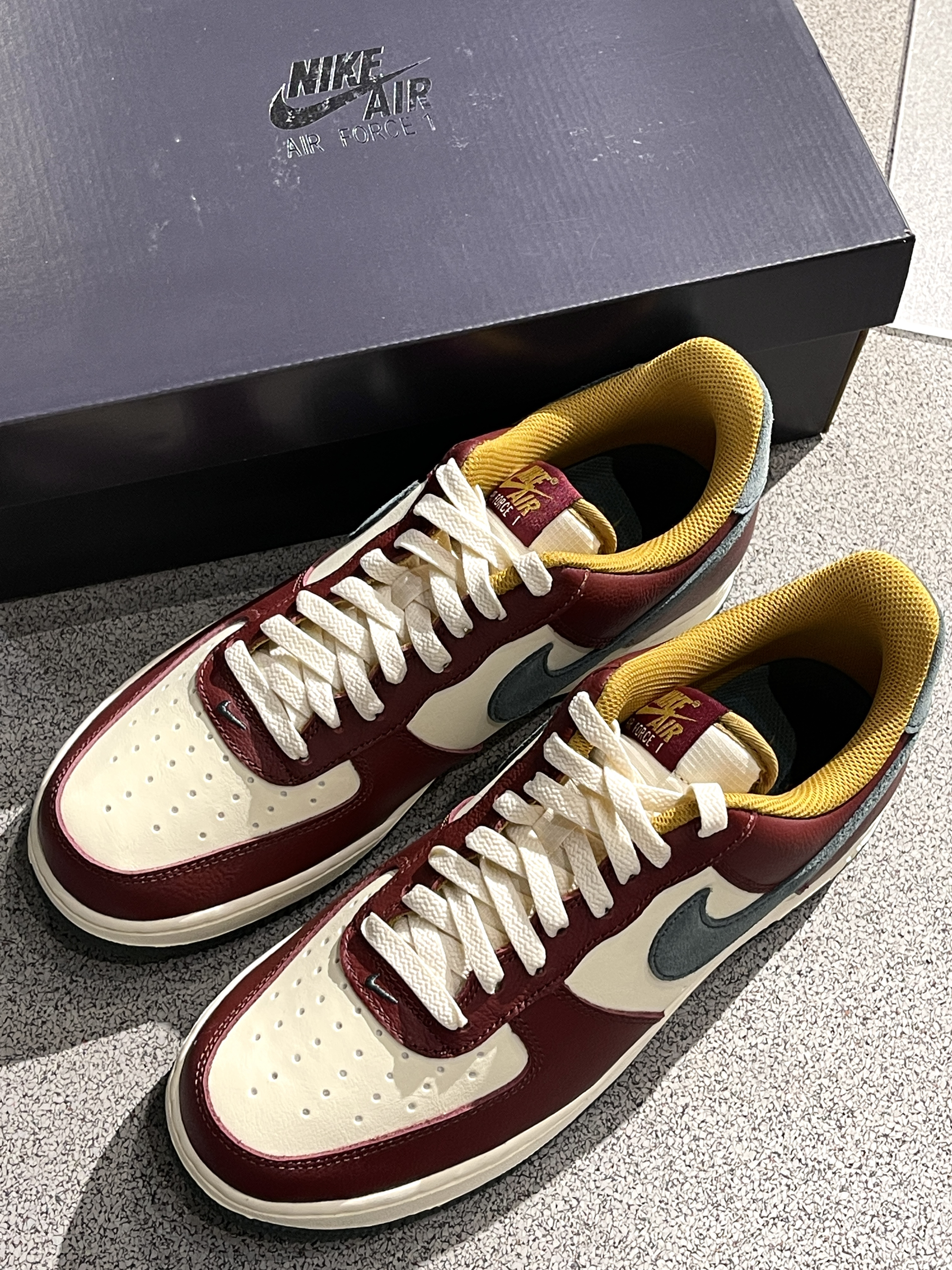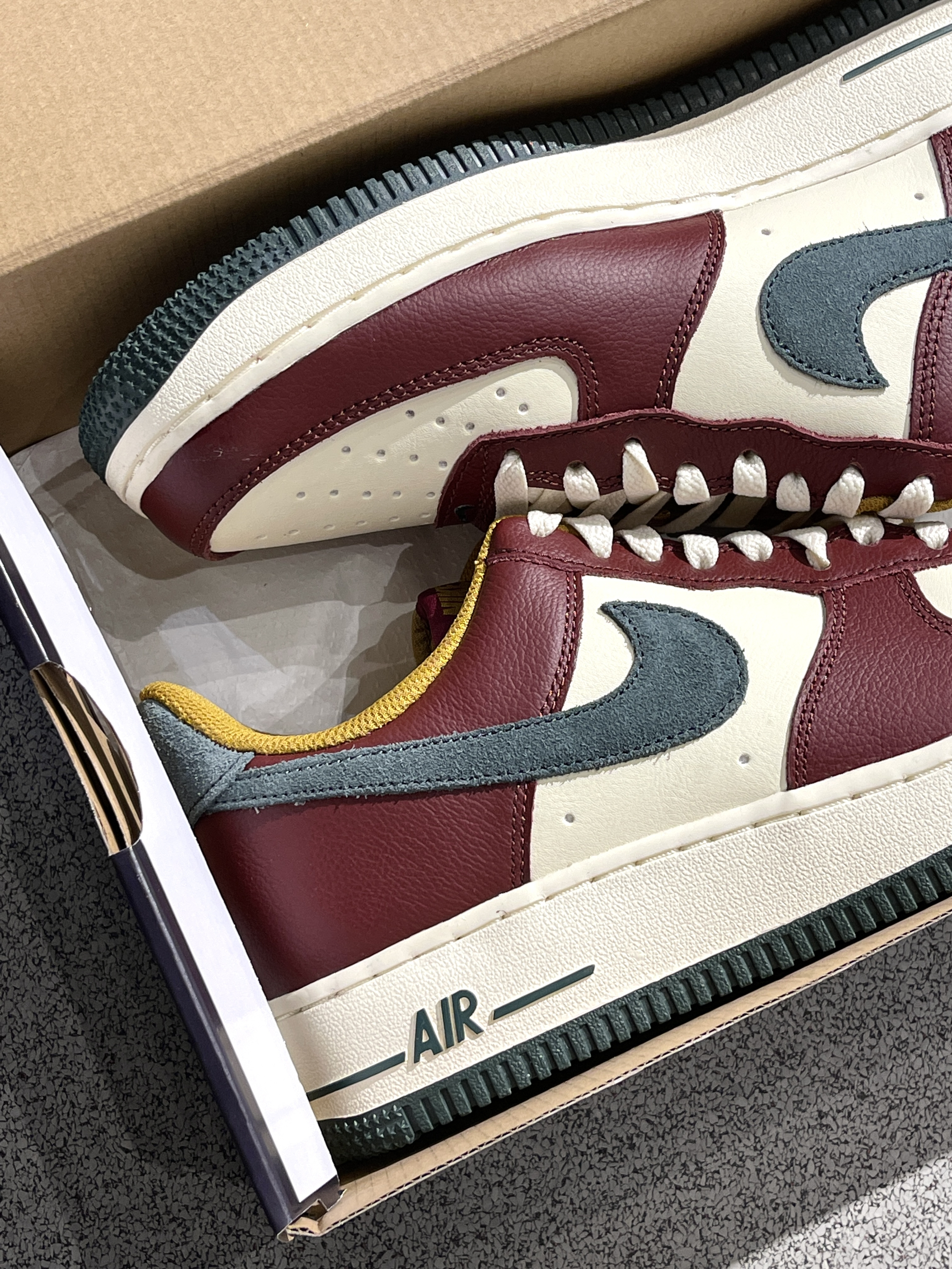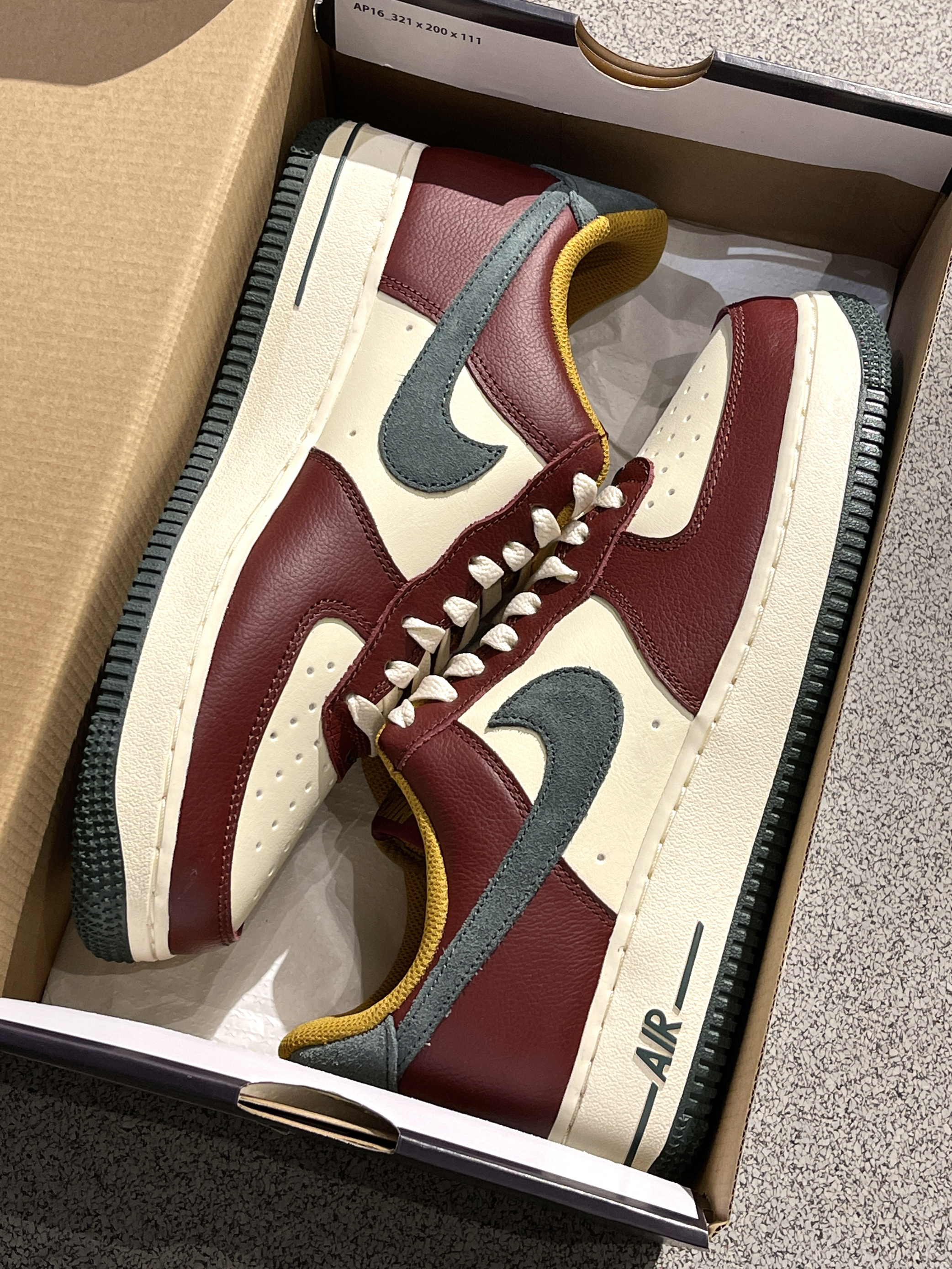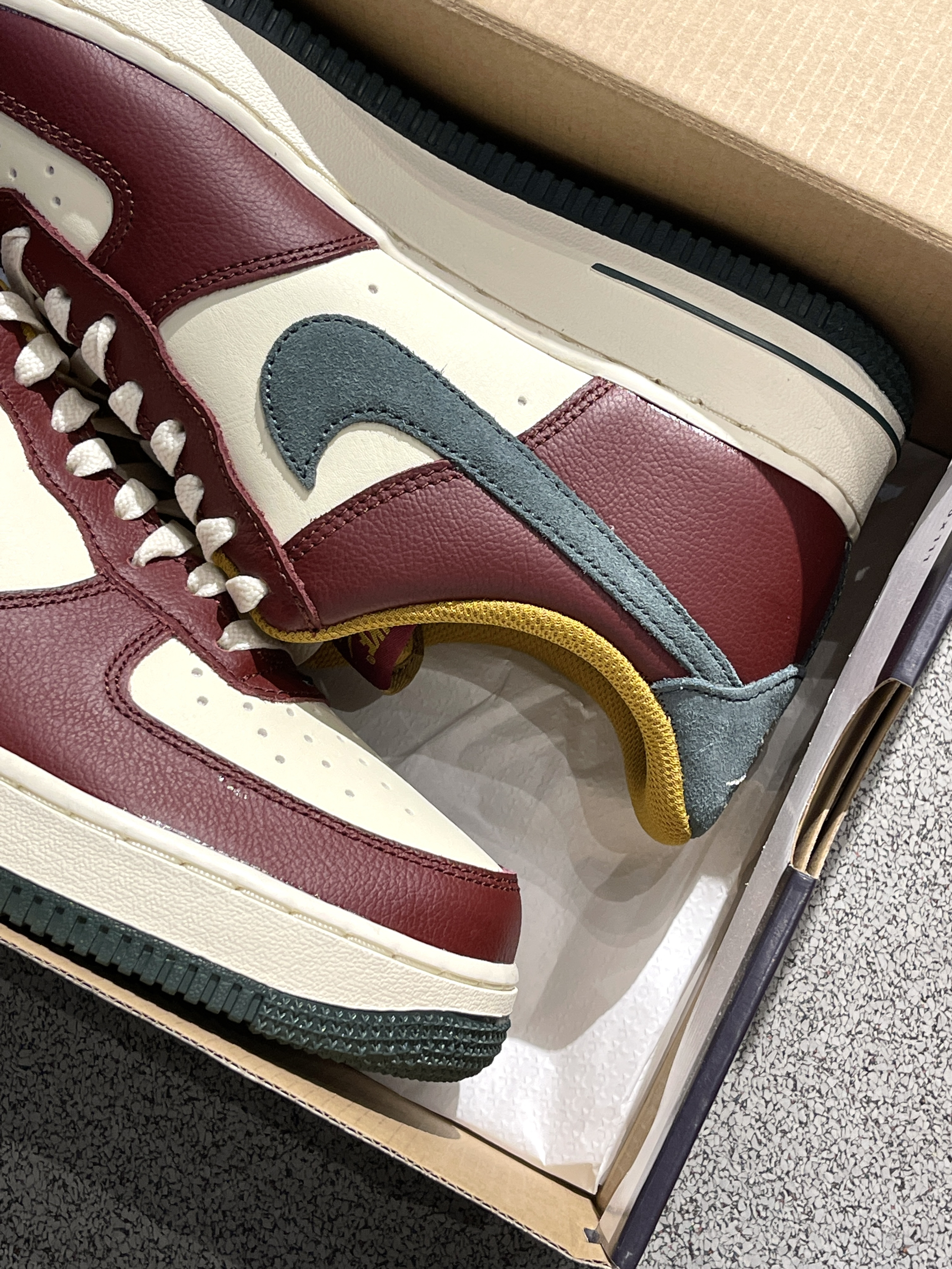 秋冬配色AF1更新啦,氛围感满满~🔥 Nike|Air Force 1 Low “Dark Team Red/Vintage Green” 低帮板鞋,开箱依旧是经典的AF1鞋型,白红鞋面➕绿色翻毛皮Swoosh,整体层次感十足,满满的圣诞氛围~😍