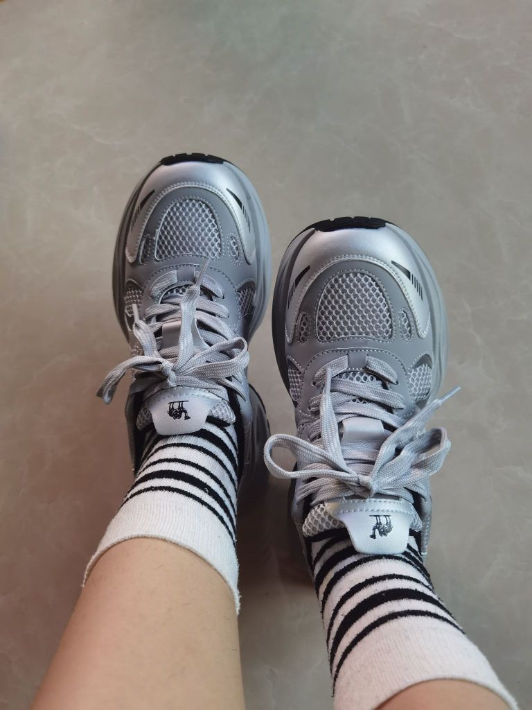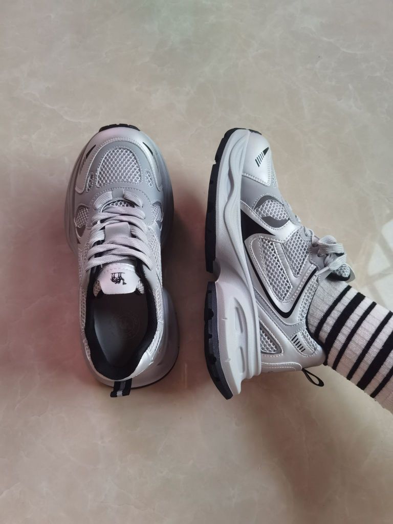 极简的流光灰配色 宛如银河🌌 上脚舒适 透气网面不闷jio~ 厚底增高5公分 拔高显腿长 不开玩笑 穿上它我一米八