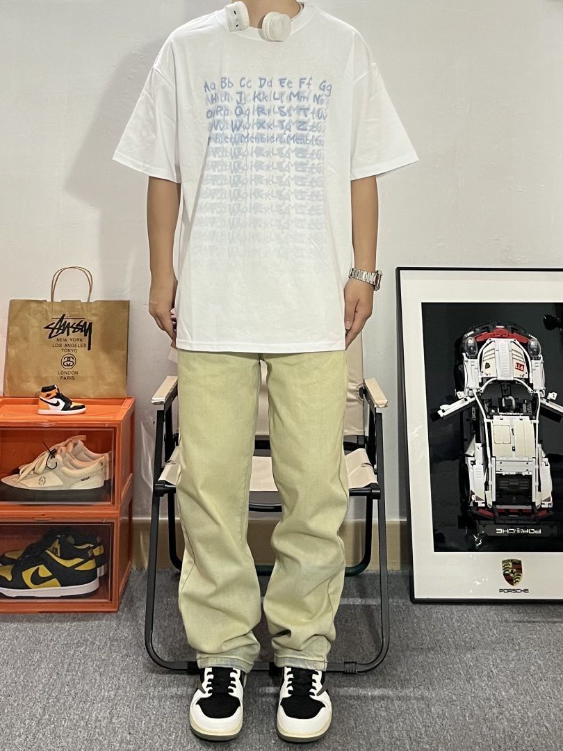 哈喽这里是pupu同鞋🏄🏻♂️ ——————————— . 👔:menblero 宽松的版型大多数人都能很好驾驭🧊 白蓝配色真的特别清新自然好好看 满印的字母印花街头感满满🤩 · 👖:黄泥牛仔裤 · 👟:倒钩 ——————————— 💁🏻♂️:170/115 以上都是个人观点🍟欢迎讨论