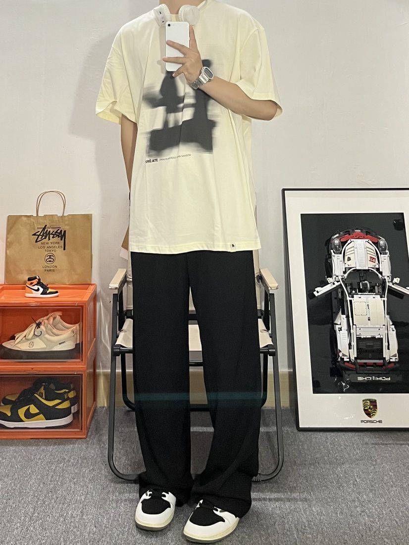 哈喽这里是pupu同鞋🏄🏻♂️ ——————————— . 👔:kreate · 👖:休闲西裤 冰丝长裤真的很难不爱 垂感很顺滑! 冰冰凉凉的很适合夏天穿 黑色很耐看🤩 直筒宽松的版型百搭不挑人不挑身材 · 👟:倒钩 ——————————— 💁🏻♂️:170/115 以上都是个人观点🍟欢迎讨论