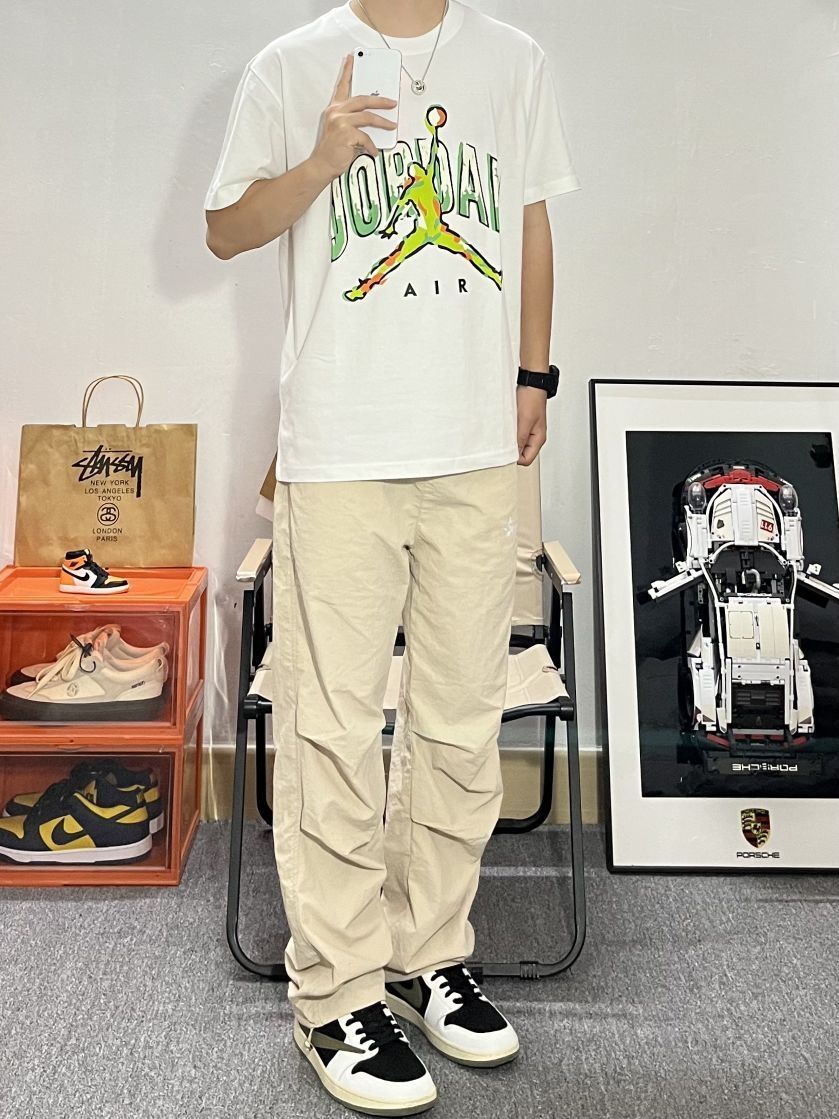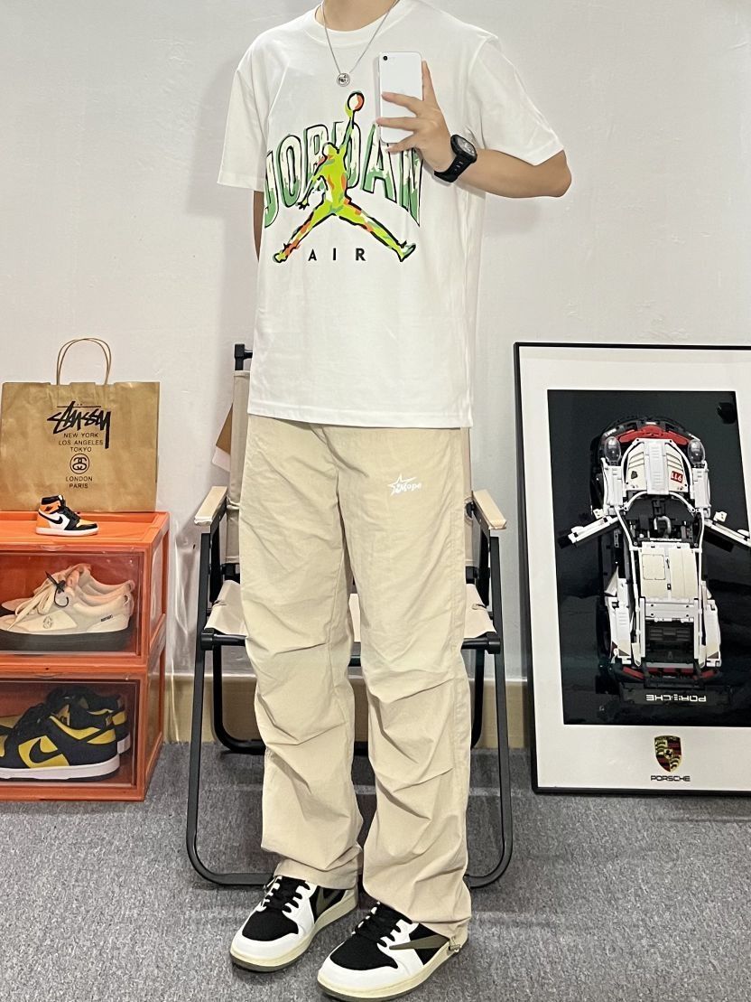本篇笔记关联了Jordan Brand 跑步训练健身透气短袖飞人印花T恤 男女同款 CZ8384 白、【范丞丞同款】MOPE 美式伞兵冰丝薄款降落速干直筒休闲长裤 男女同款 K86221 卡其、Air Jordan 1 板鞋 运动休闲鞋 复古潮流支撑合成革 女款/Travis Scott联名/倒钩5.0/黑棕等商品,为用户提供真实的使用体验和购买参考。