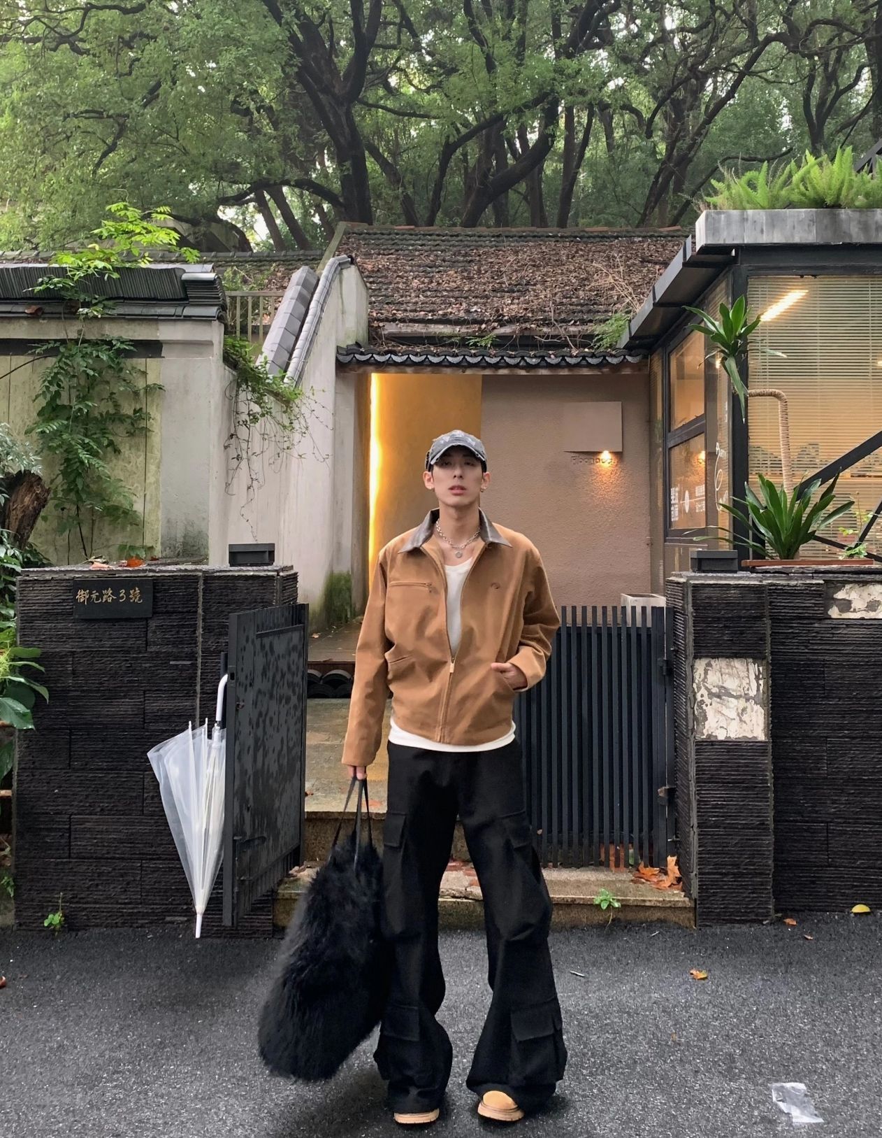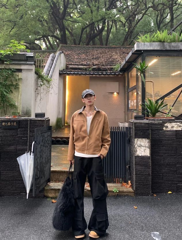 身高|体重:178cm|145斤 🧍♂️ 穿搭风格:美式硬朗 👔 上衣:短袖配夹克 👖 下装:工装裤 👟 鞋子:马丁靴
