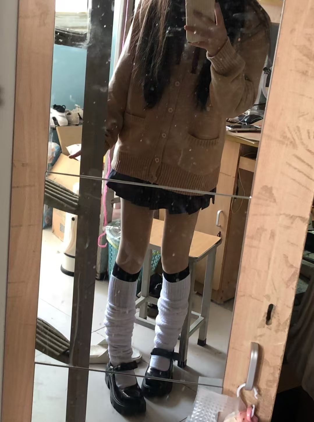 识货实选买的买的毛衣➕百褶裙巨漂亮穿起来也很舒服,而且只有一家店在卖很靠谱 袜子是自己搭配的过膝袜 就是现在天冷🥶了只能在家里穿穿了。