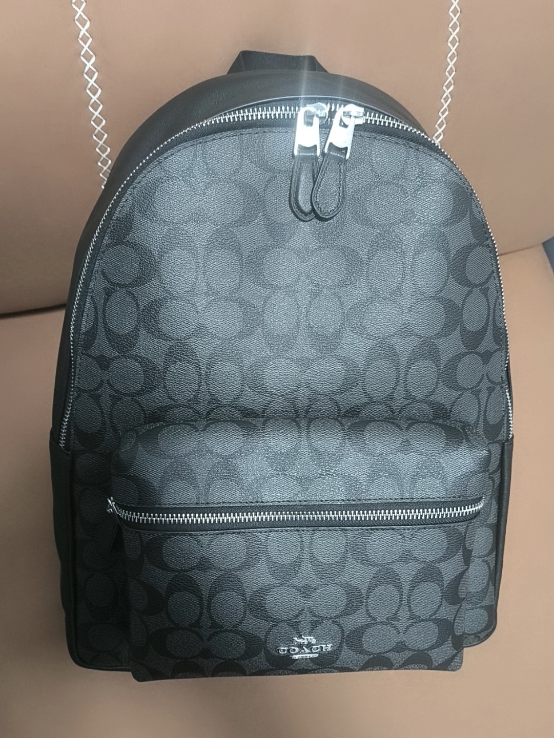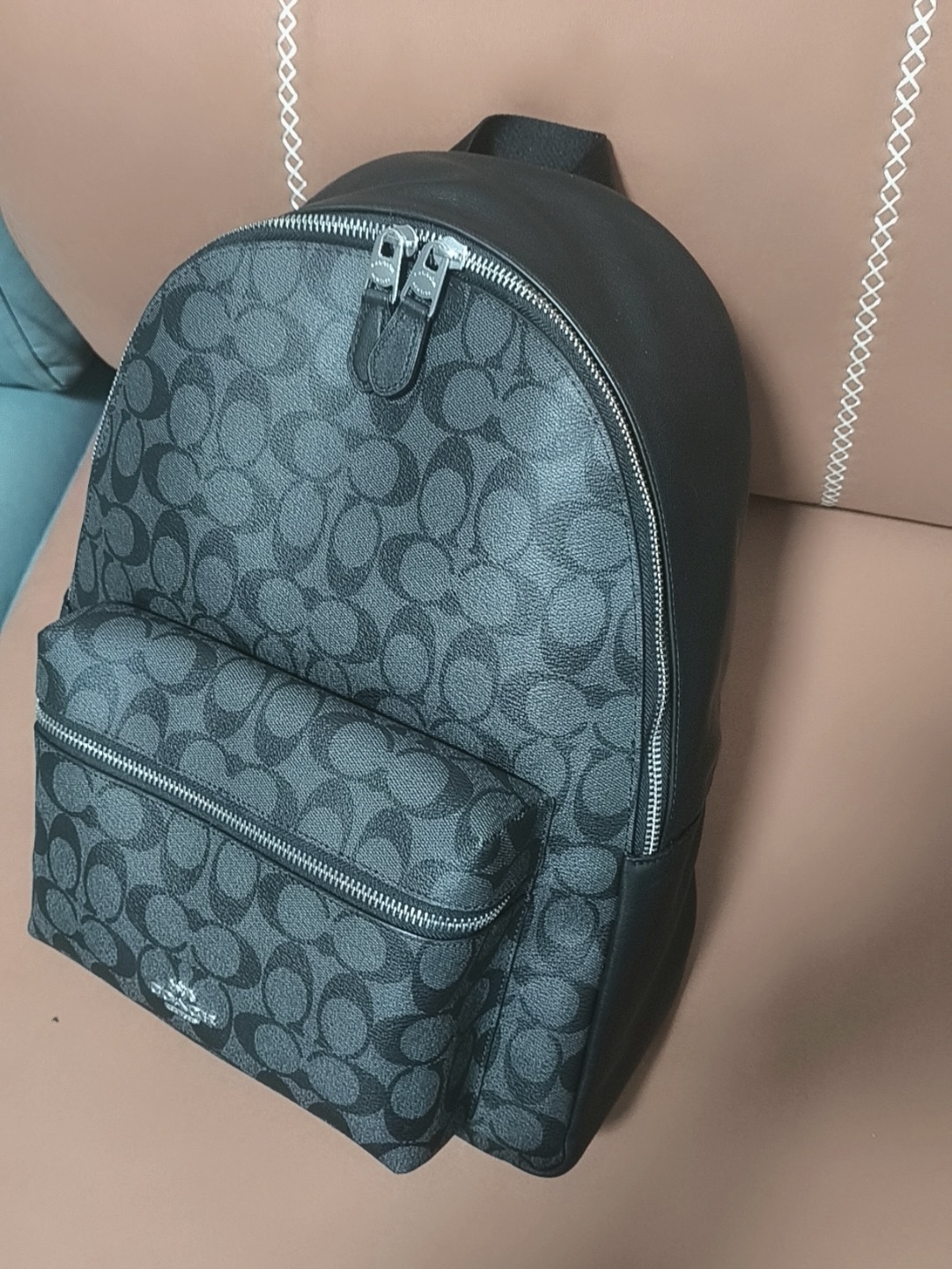 本篇笔记关联了Coach Charlie 30 大号 涂层时尚休闲帆布配皮老花满印拉链开合双肩包 炭黑灰等商品,为用户提供真实的使用体验和购买参考。