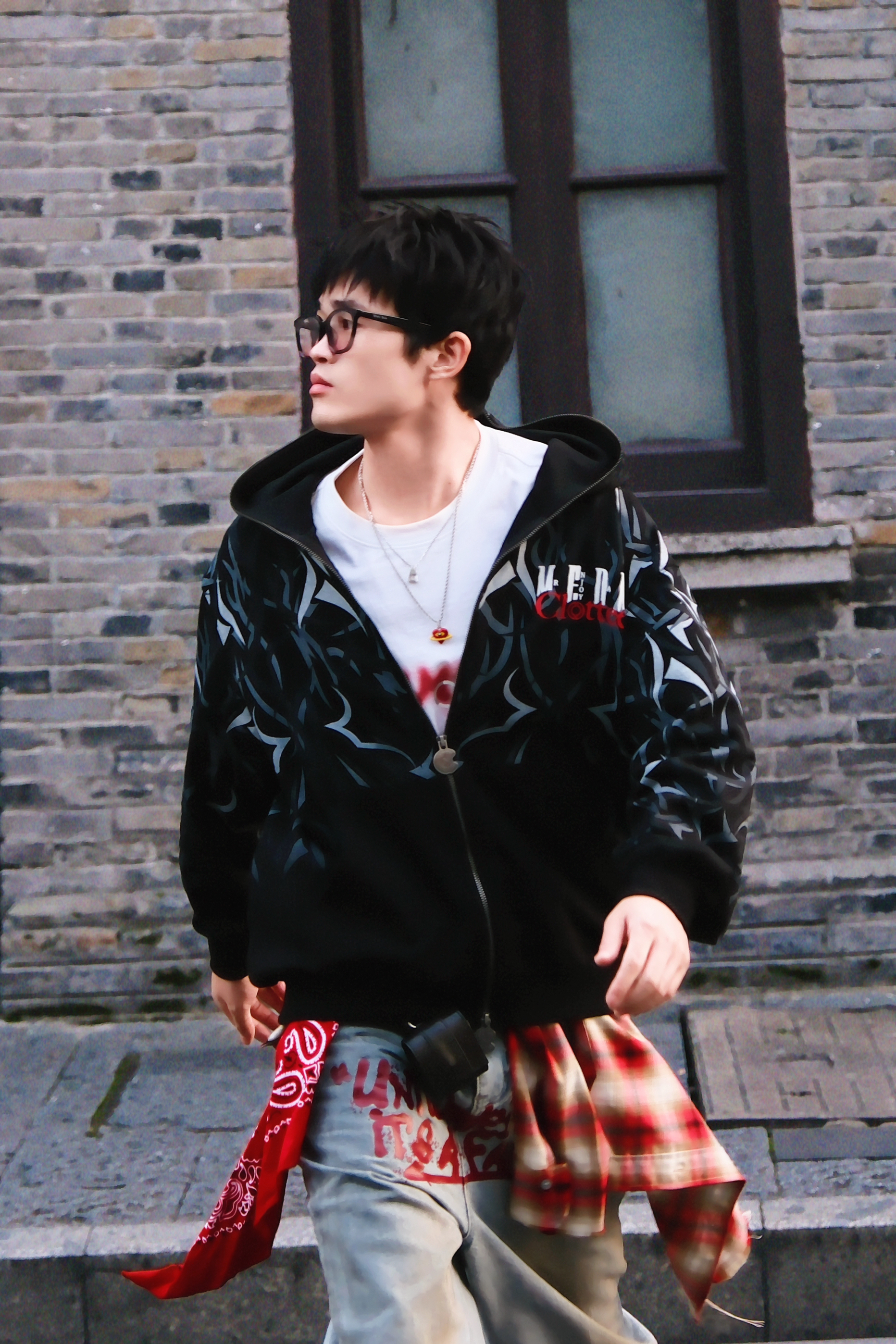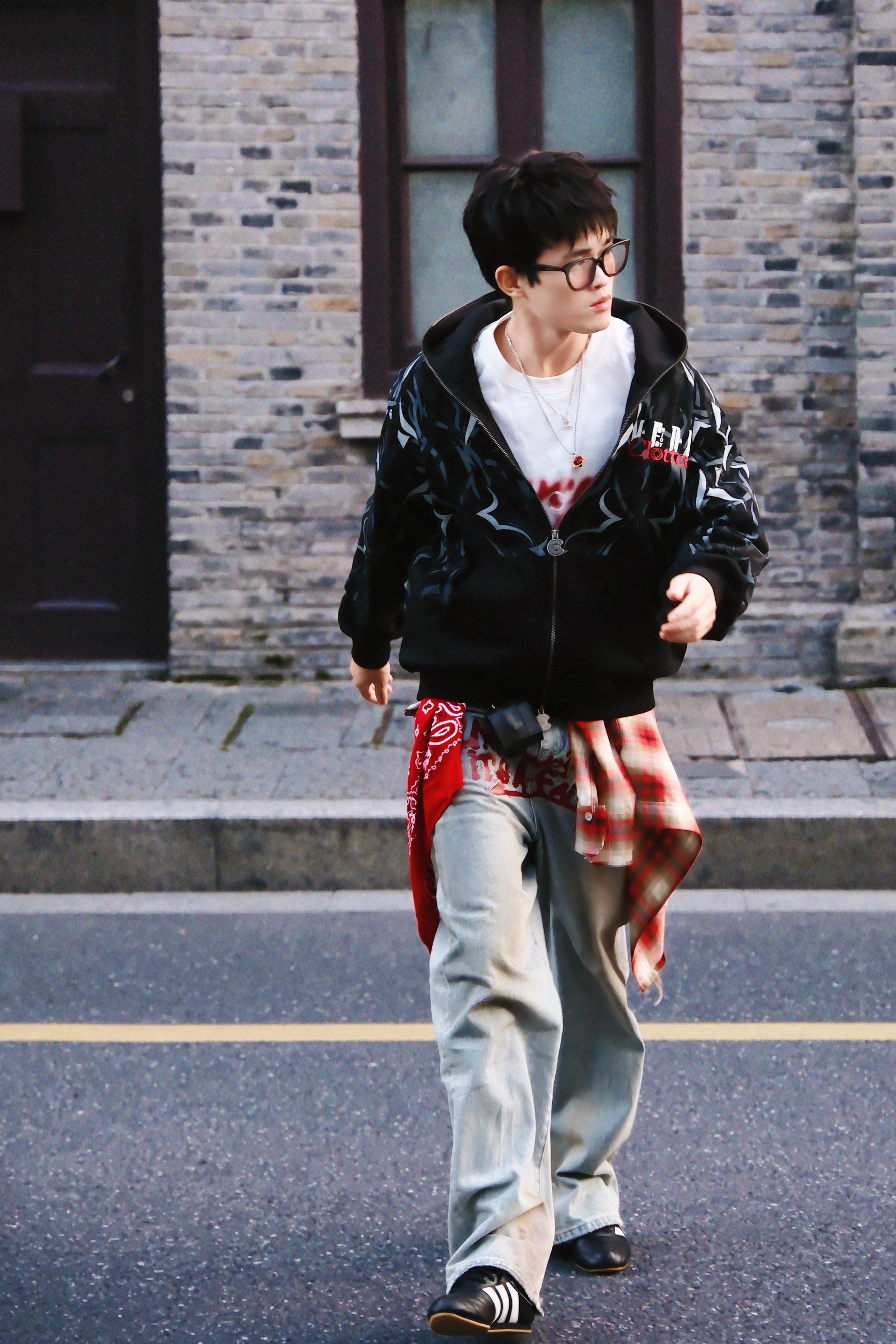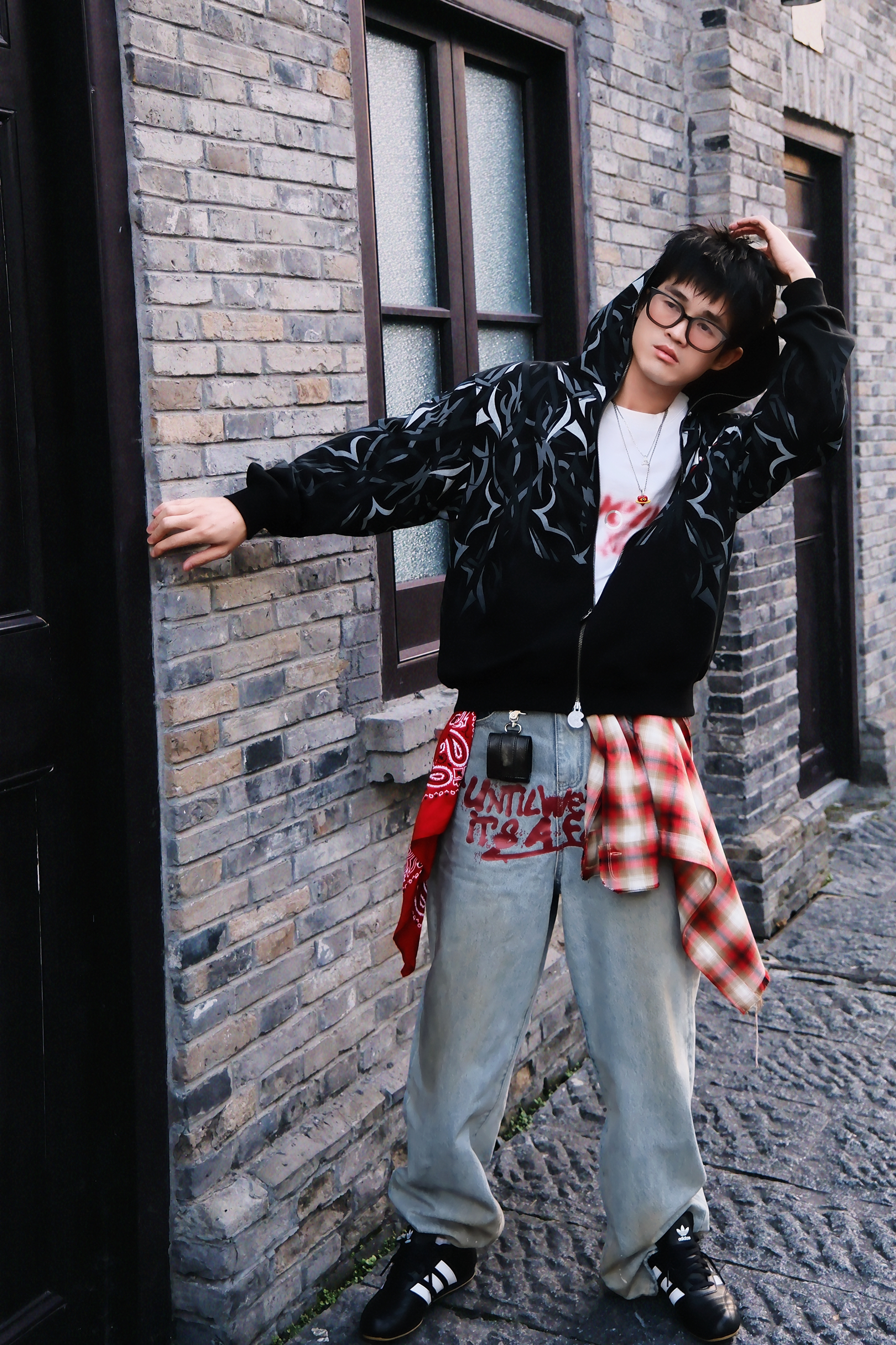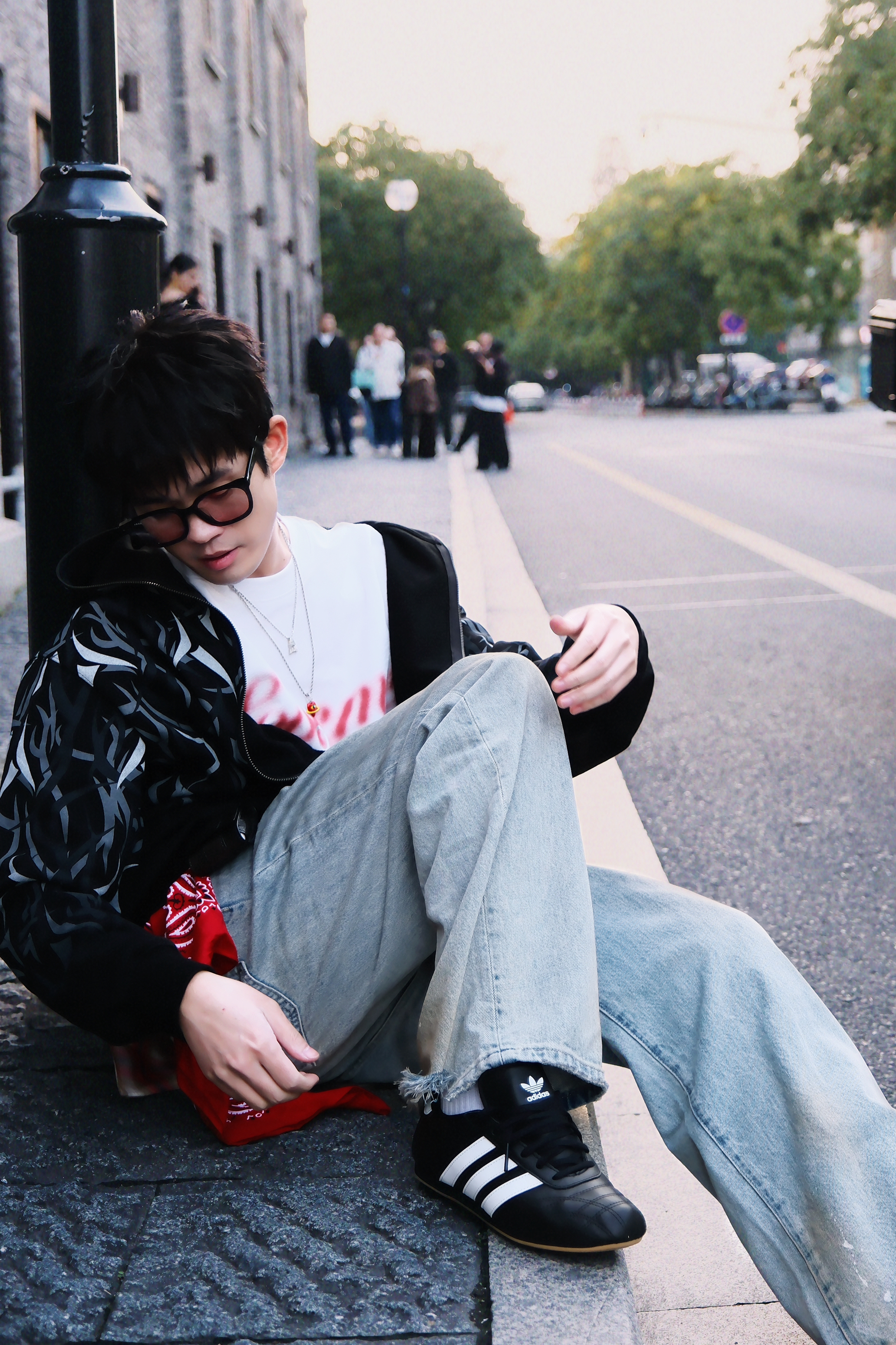 不是从头到尾都帅 只帅了40%(“微do” - 秋冬白T叠穿这种暗黑风的潮流外套 配上街潮感拉满的牛仔裤 直接帅出一个新高度了! - 这阵子超火的潮鞋今天也穿上了 很喜欢这种轻便鞋型的设计 主要它还做了黑白极简撞色 日常搭起来反差感很强!