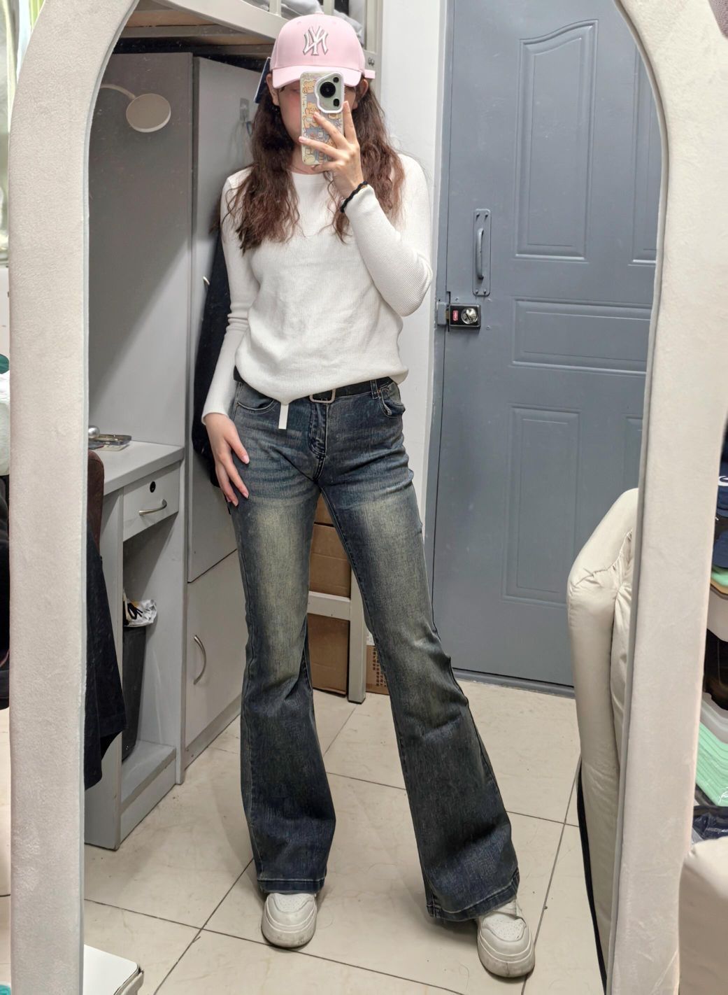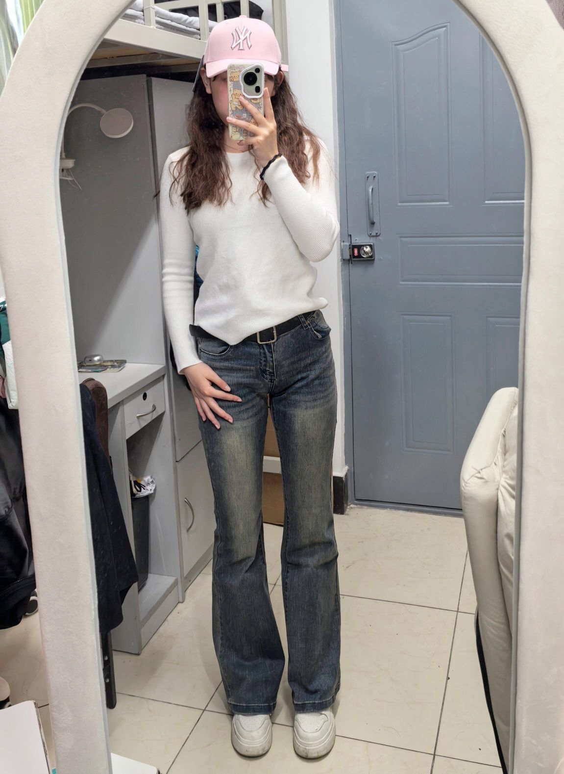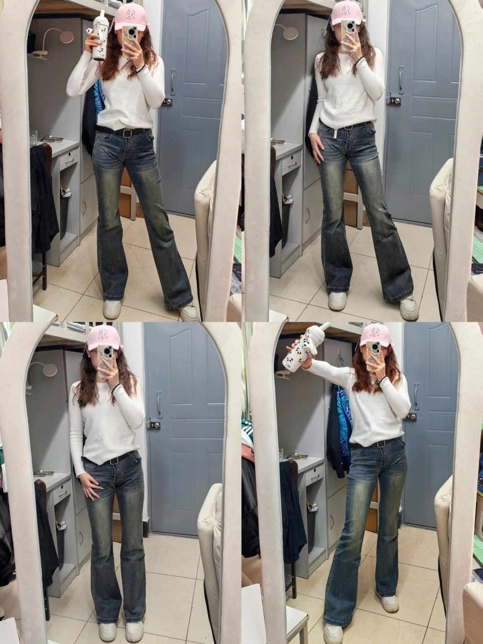 和朋友去商场吃饭,中途需要脱外套,简约休闲的风格最合适啦~ ⭐燕麦色大衣真的很百搭超适合女大学生!面料很厚实! ⭐简单白色内搭配复古微喇牛仔裤真的绝绝子!!!本人大腿内侧有肉肉,很难买到显腿细的裤子 这条裤子版型超好~ ⭐不想化妆的一天出门带个帽子就够啦!粉色帽子设计感超足,帽型很好~最主要是显白、显脸小 ⭐秋冬要多喝水,熊猫挂坠不要太可爱!保温效果也很好!本干皮秋冬救星!!谁能拒绝这么可爱的水杯...