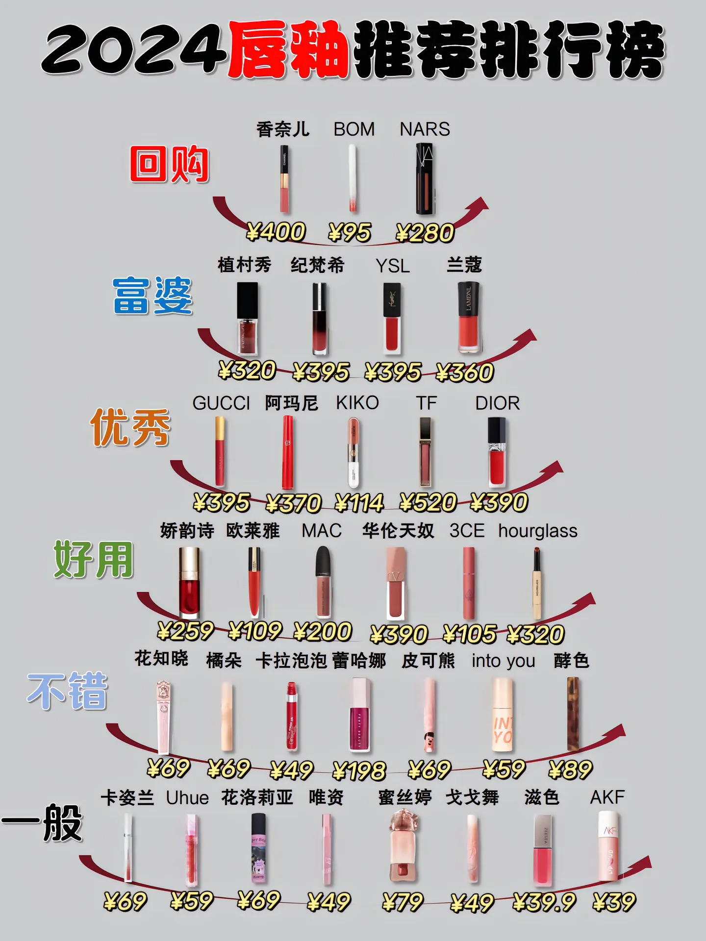 各价位的口红我都已经给宝宝们整理出来了,大多数都是博主自己也用过的,效果真的很不错