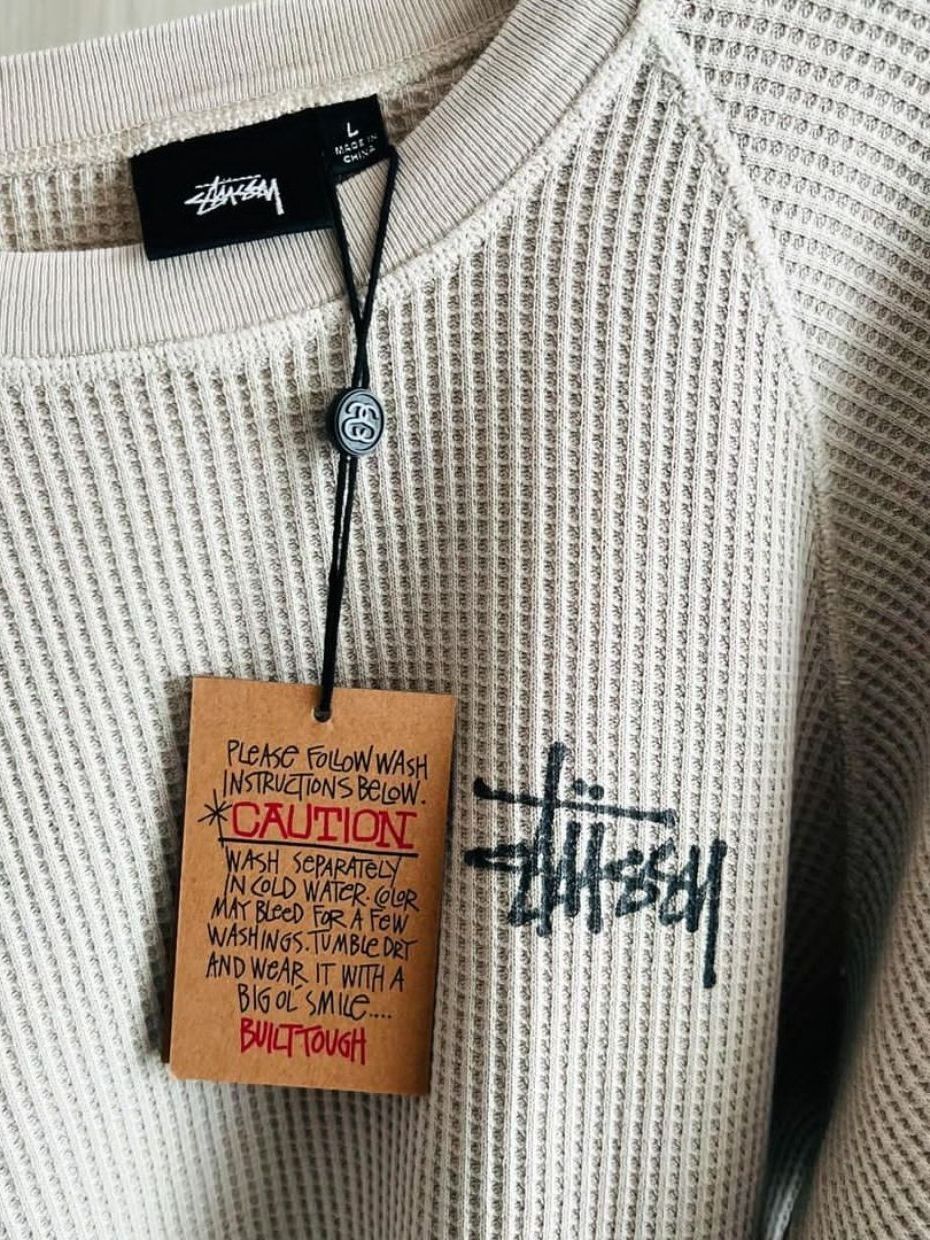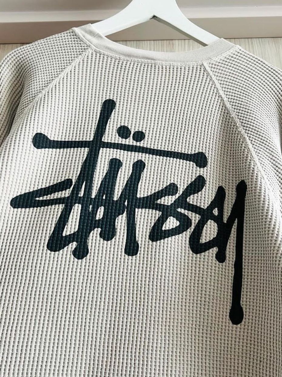 stussy华夫格是一款谁能不爱的单品呢,一款无论男女单穿内搭都可以的单品还是喜欢这种水洗做旧的感觉,一件不能错过的单品票。华夫格的材质摸起来还是很亲肤的,直接贴身穿啦!秋冬穿搭简直不要太帅!秋天单穿叠穿都又帅又有质感!冬天穿羽绒服里一点也不臃肿!