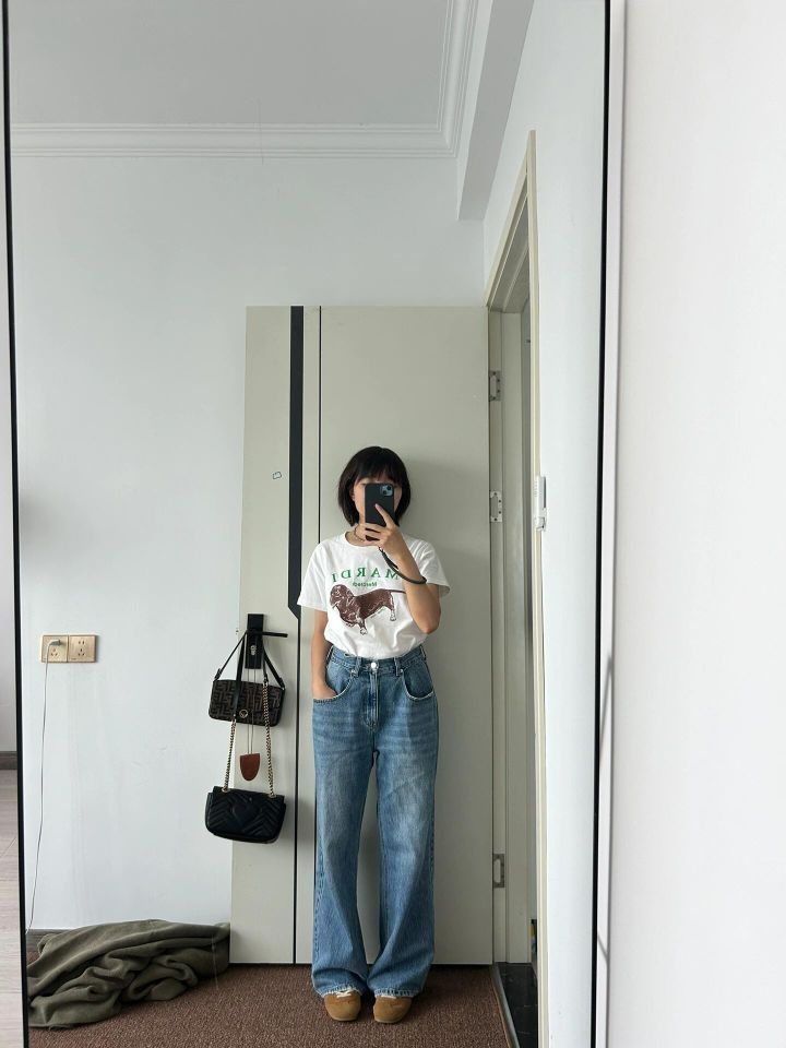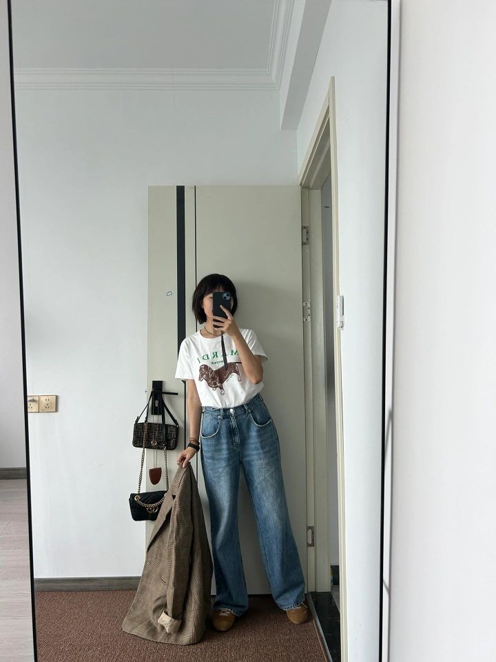 Mardi的腊肠狗t恤是去年春天跟风董洁直播间买的 两百多?忘记了……反正一眼看中这个腊肠狗去的 很厚夏天没法穿降温了终于可以秀一下了 Zne的牛仔裤神裤!!一周穿7天也是董洁直播间买的 有点贵600多我记得但是真的…………好穿 松松垮垮颜色也好看随便搭秒配 外套是几年前massimodutti天河的万菱汇店买的 打折不到1000吧羊毛呢格子外套 有几年疯狂痴迷他们家的衣服男装也买了不...