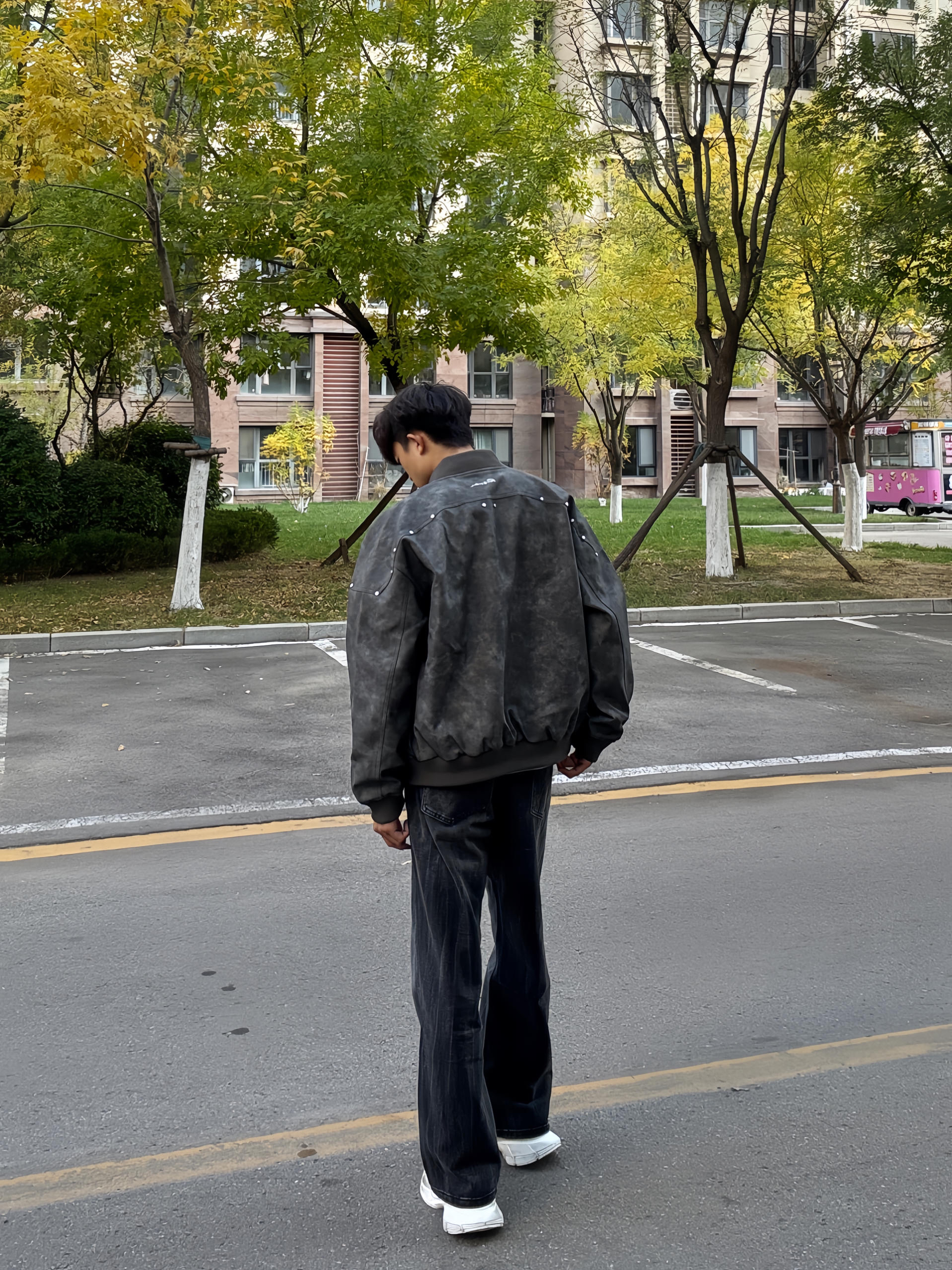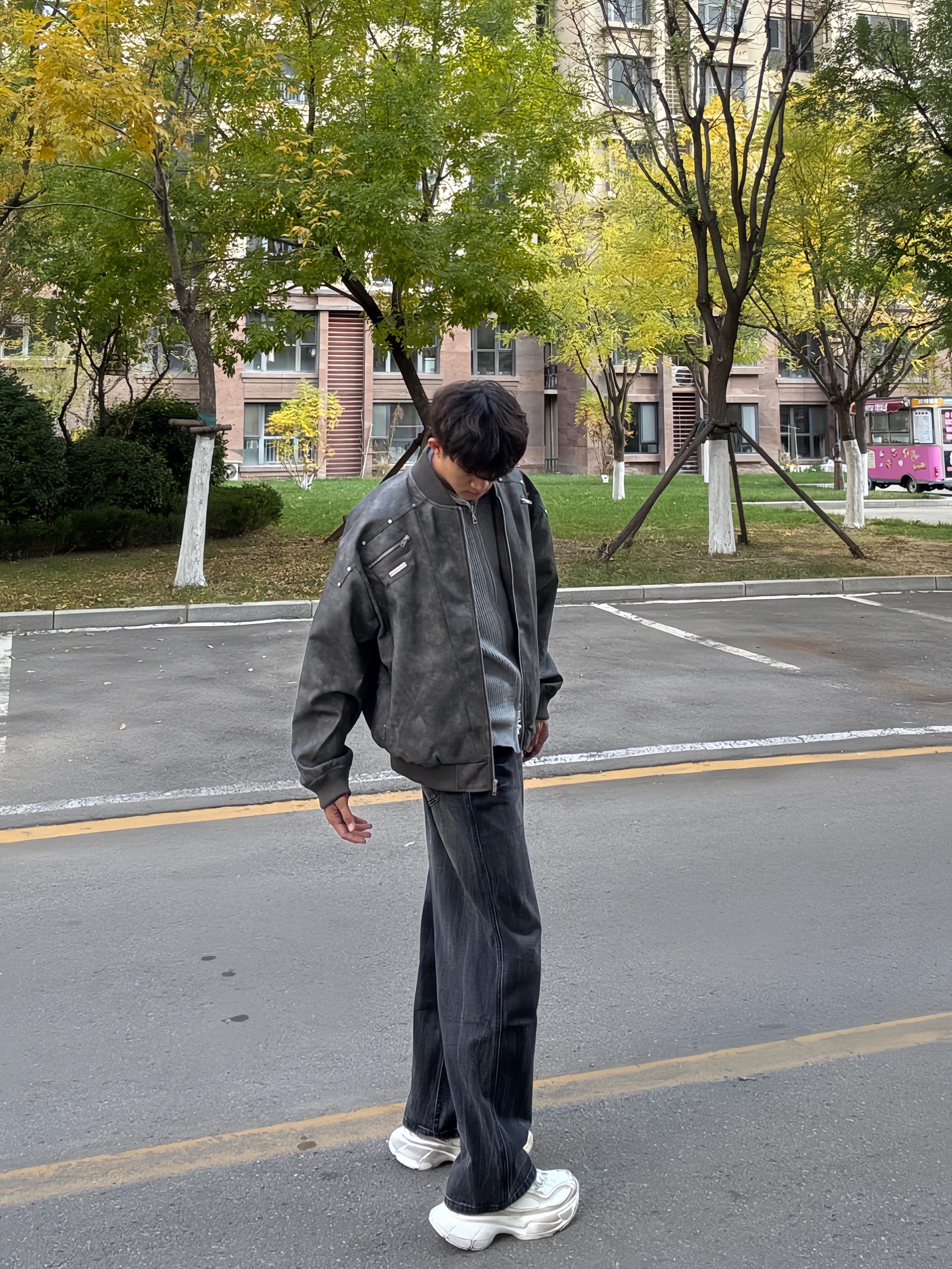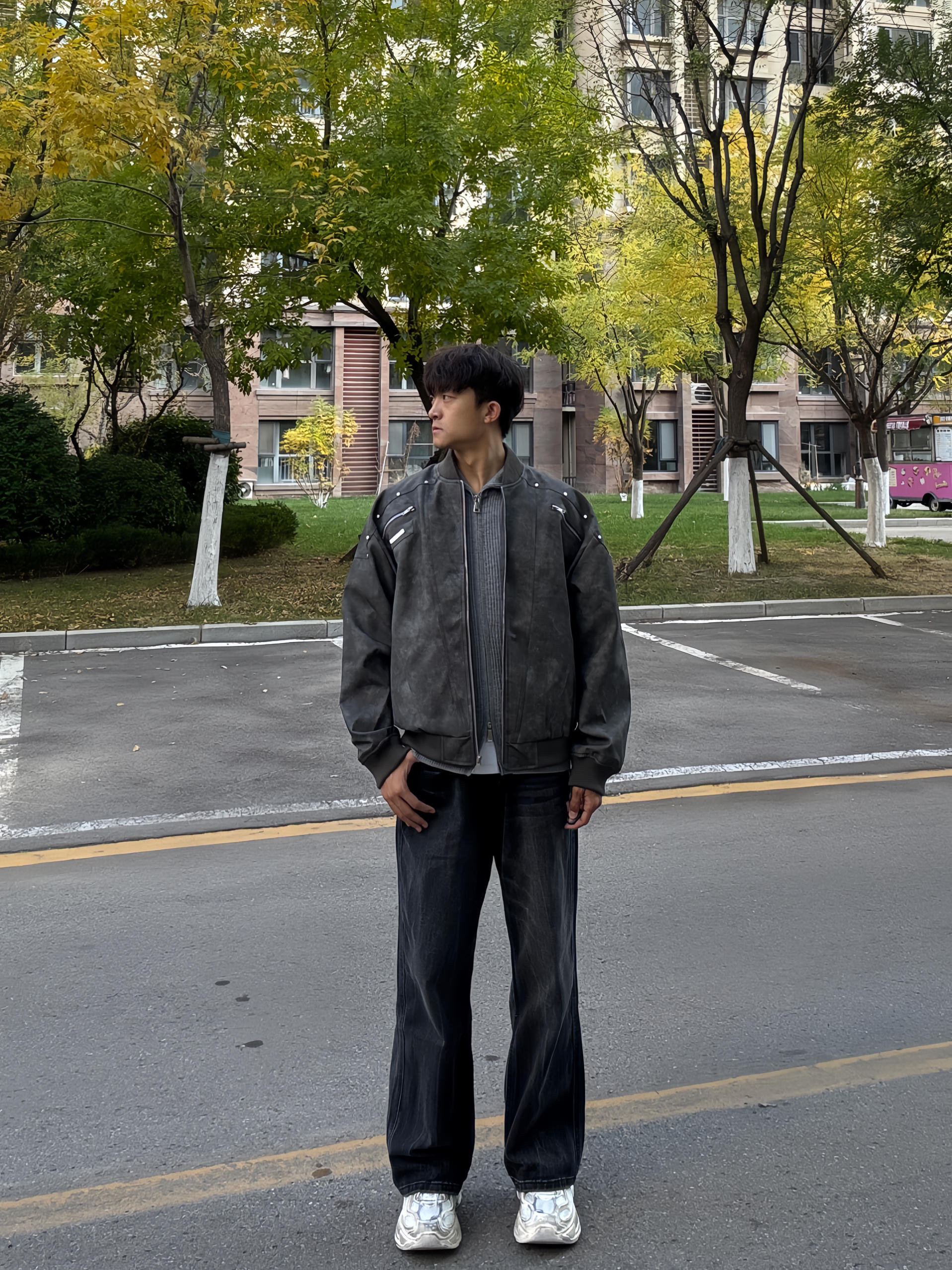 180 130 | O0TD穿搭分享 👔|巨帅的灰色铆钉皮衣呀,真的好适合 cleanft穿搭,叠穿效果好棒,质感也比较舒服,加棉款好适合秋冬,还是比较保暖滴~ 👖|搭配直筒黑牛,巨显腿长~