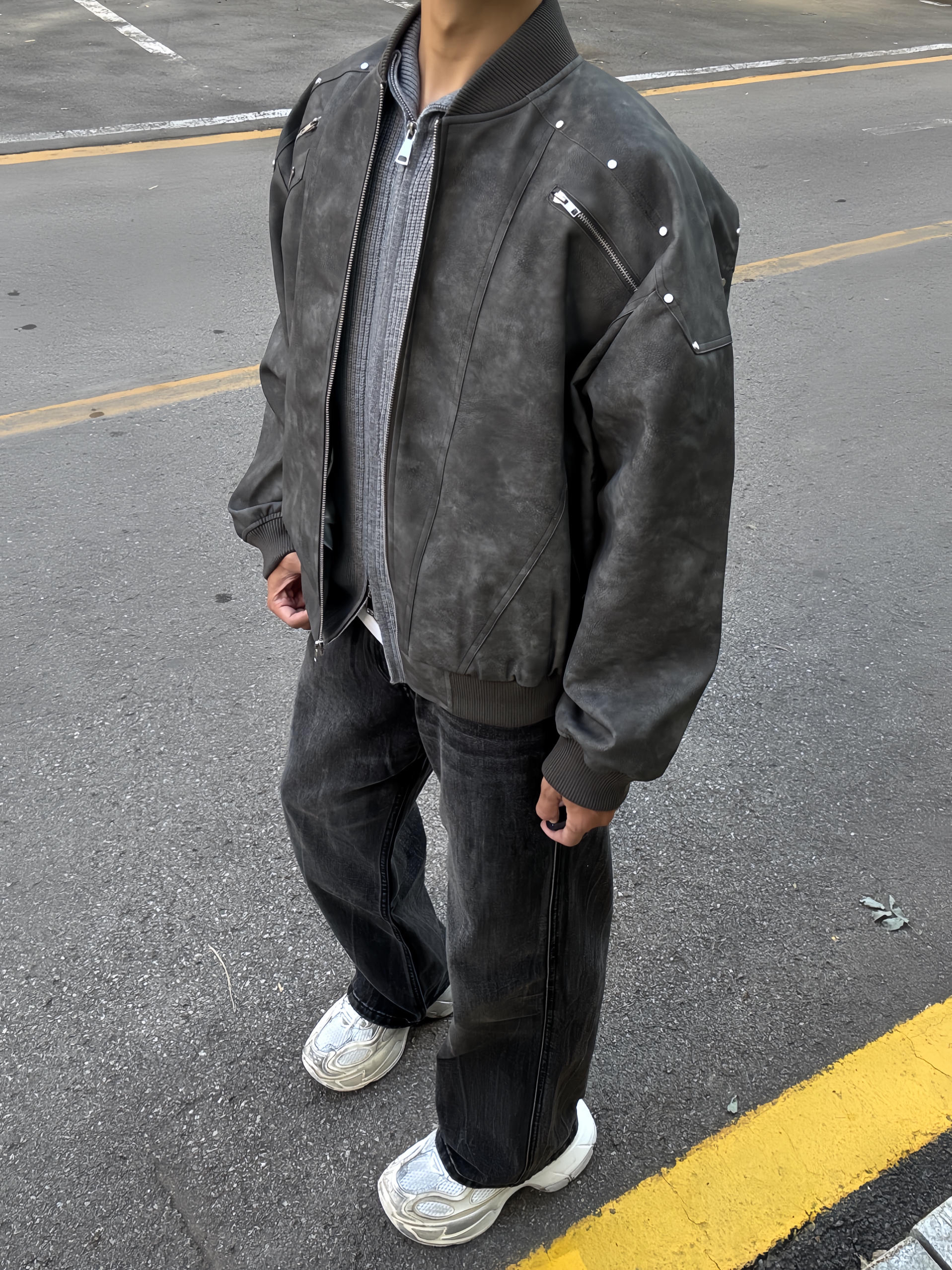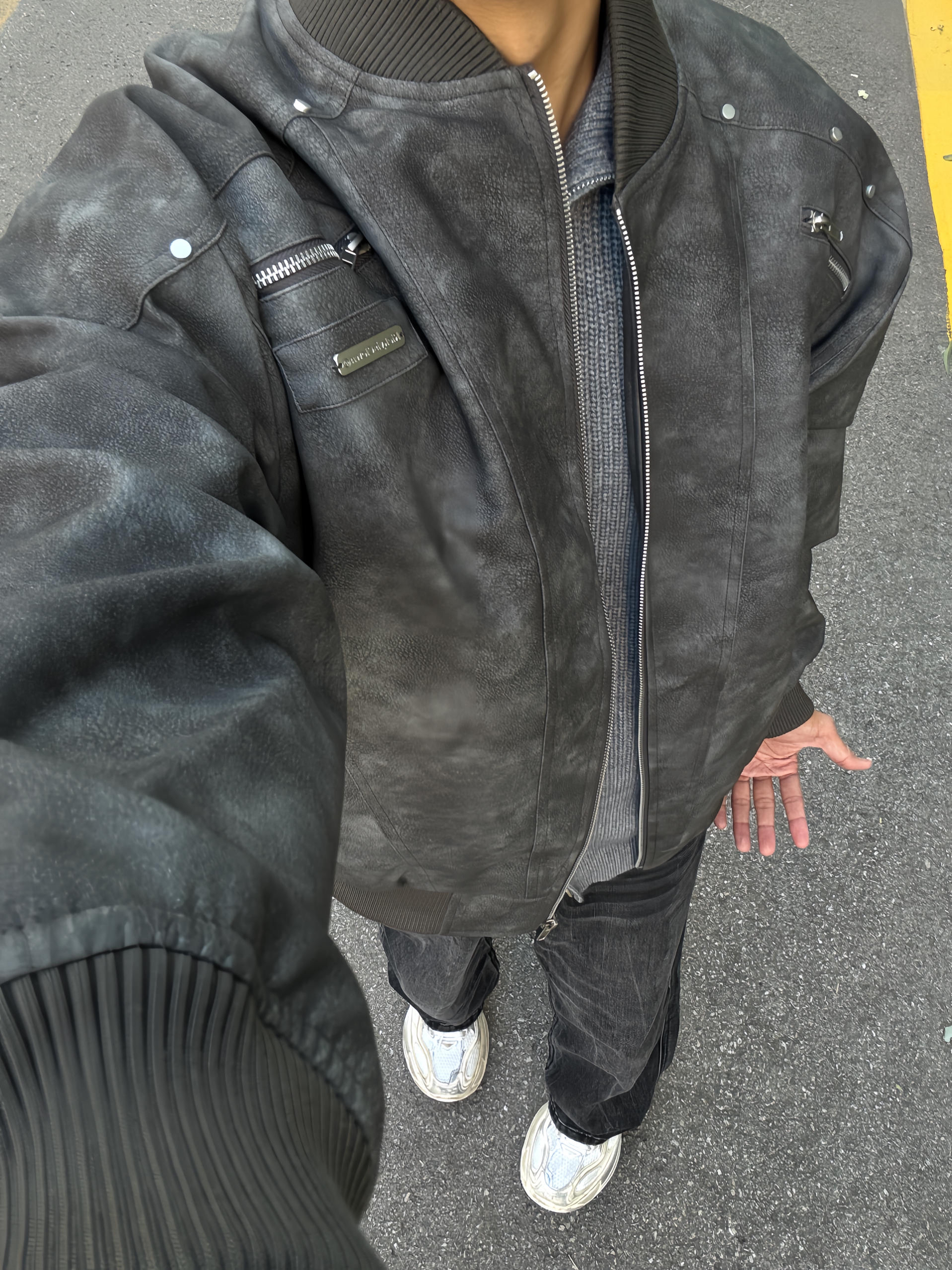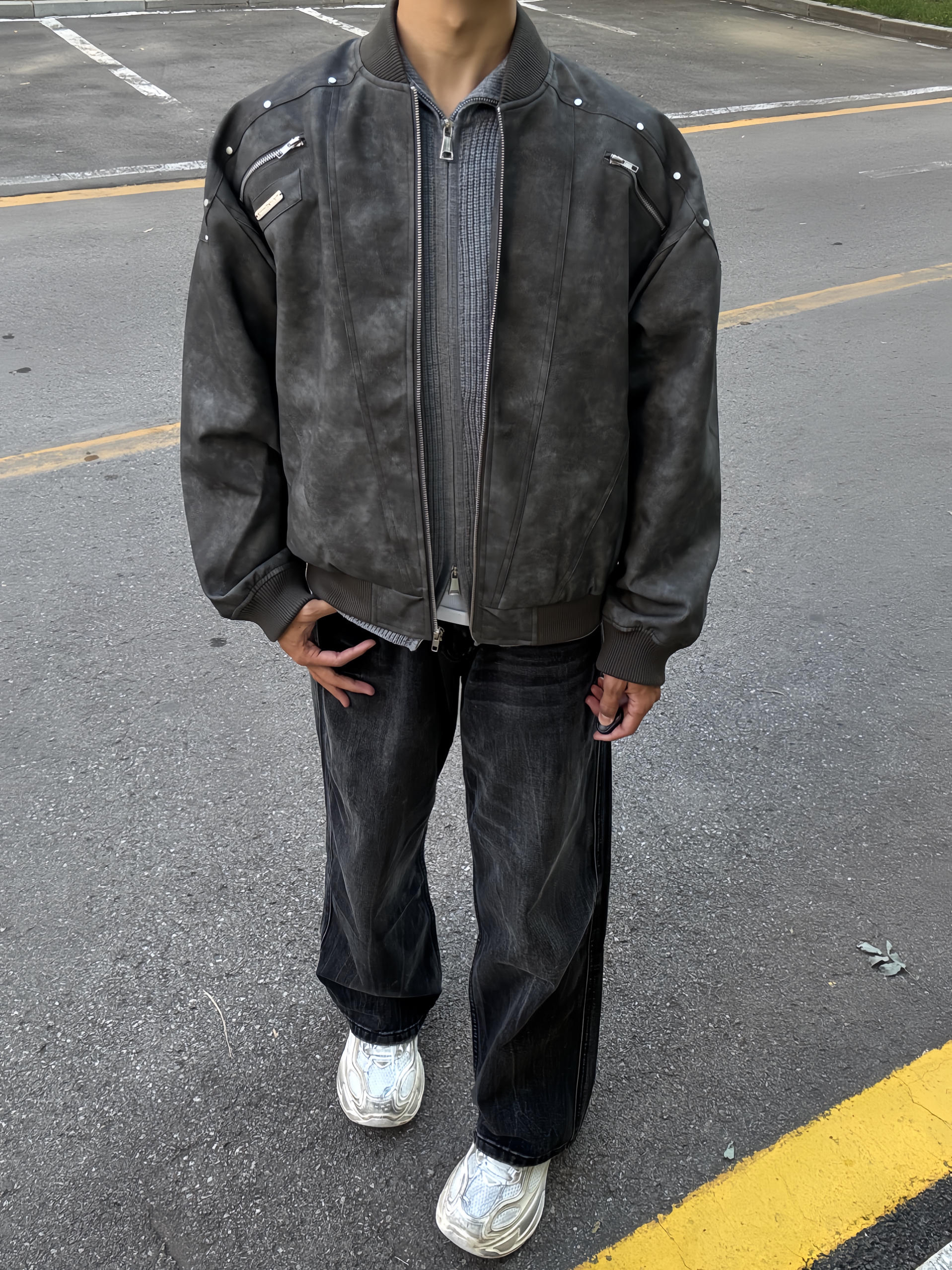 180 130 | O0TD穿搭分享 👔|巨帅的灰色铆钉皮衣呀,真的好适合 cleanft穿搭,叠穿效果好棒,质感也比较舒服,加棉款好适合秋冬,还是比较保暖滴~ 👖|搭配直筒黑牛,巨显腿长~