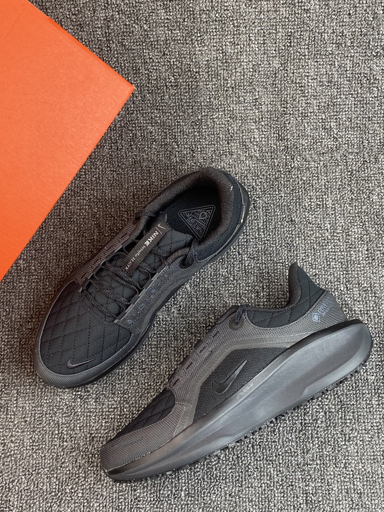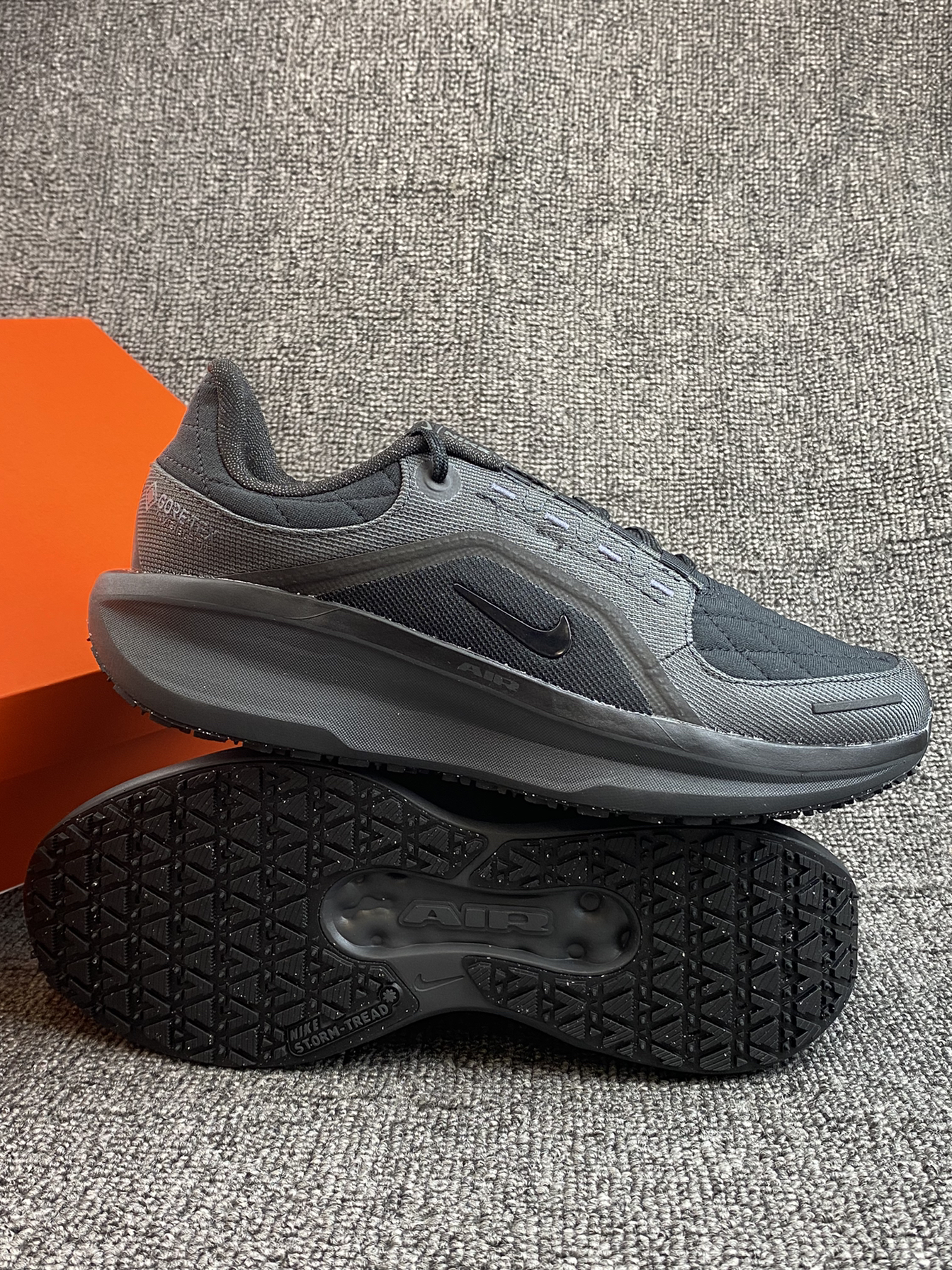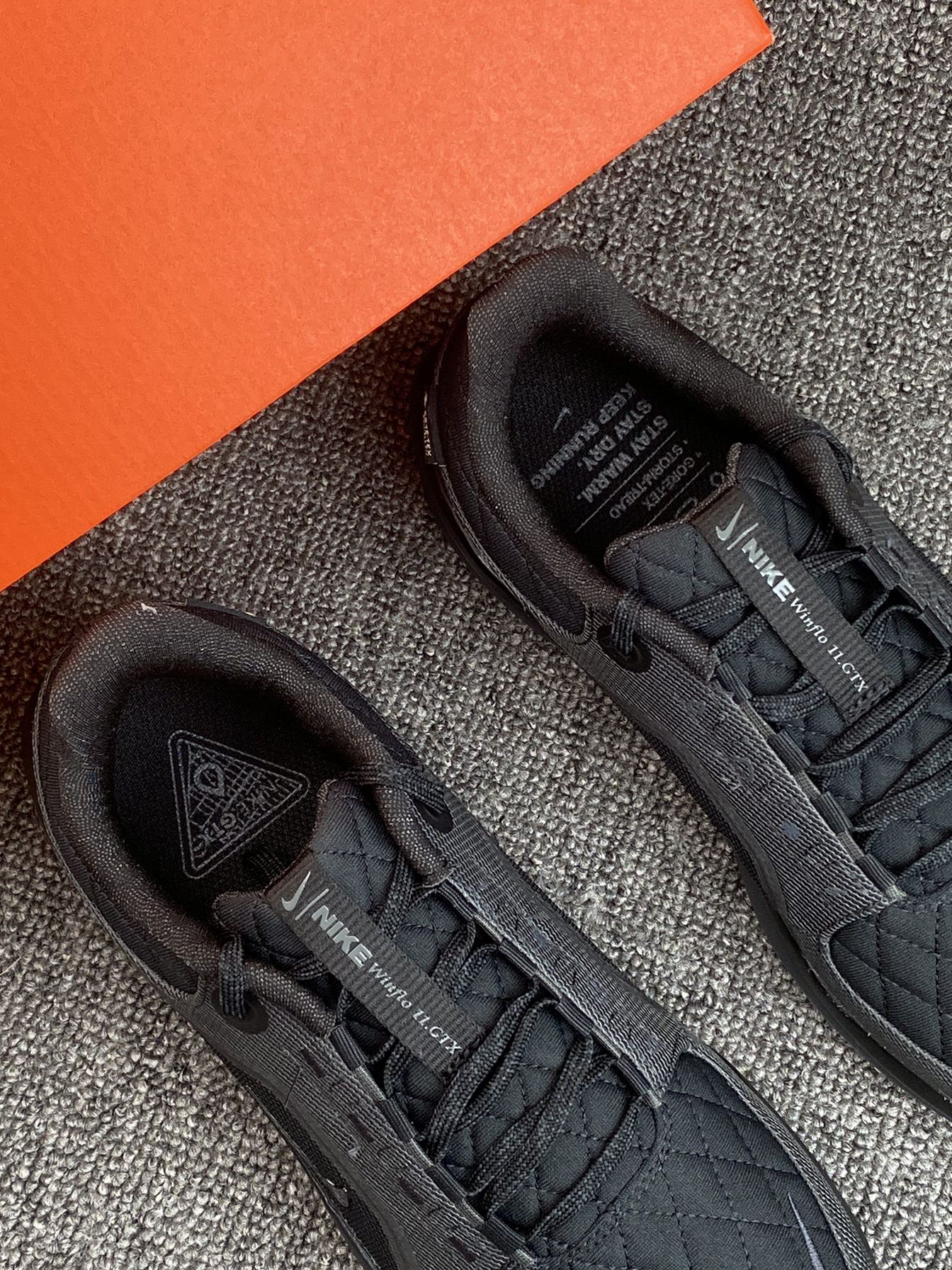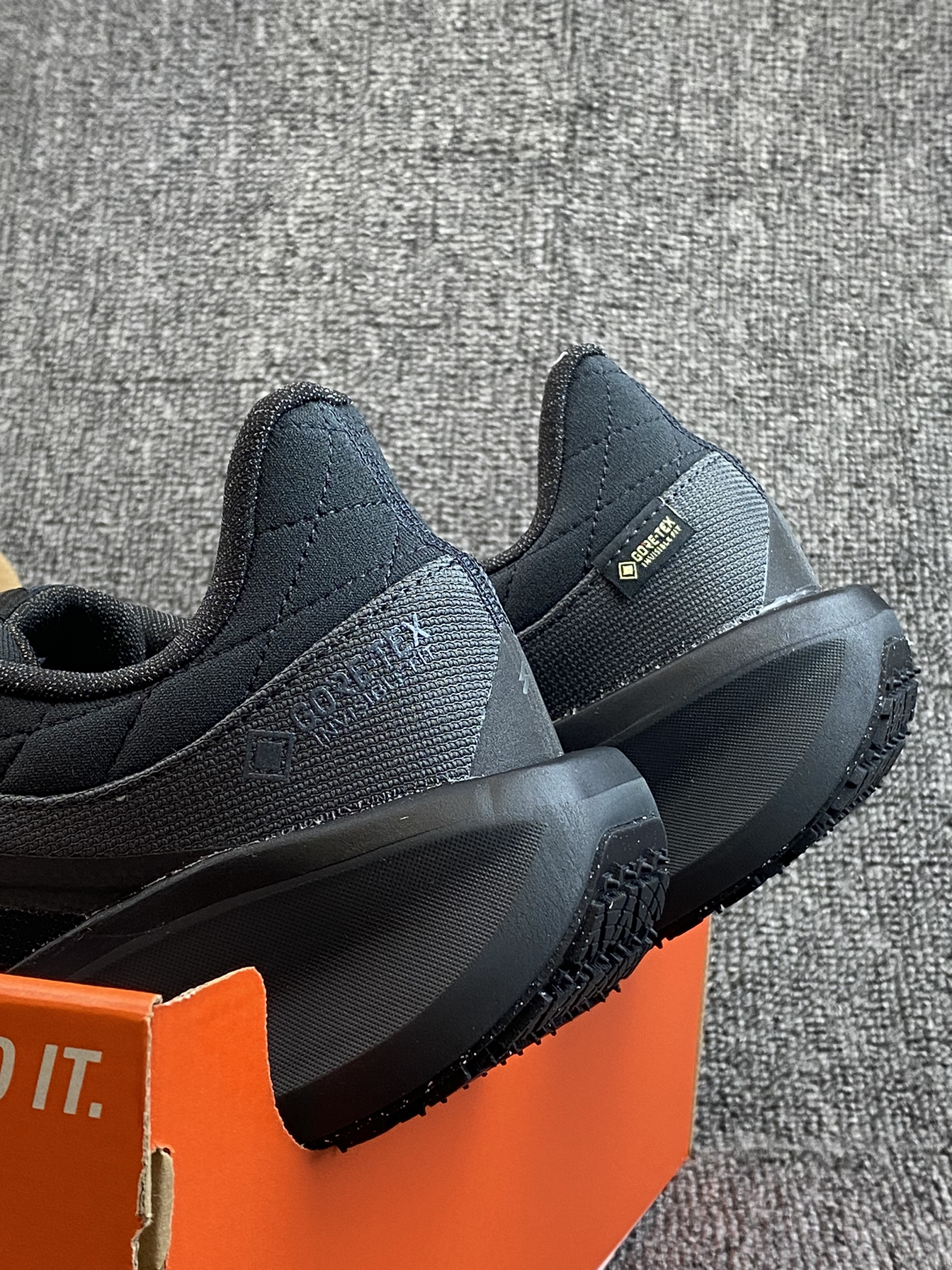 带有GORE-TEX的跑鞋 也能去户外跑了,能保暖还能防泼水 全黑的配色也是很耐脏了👍