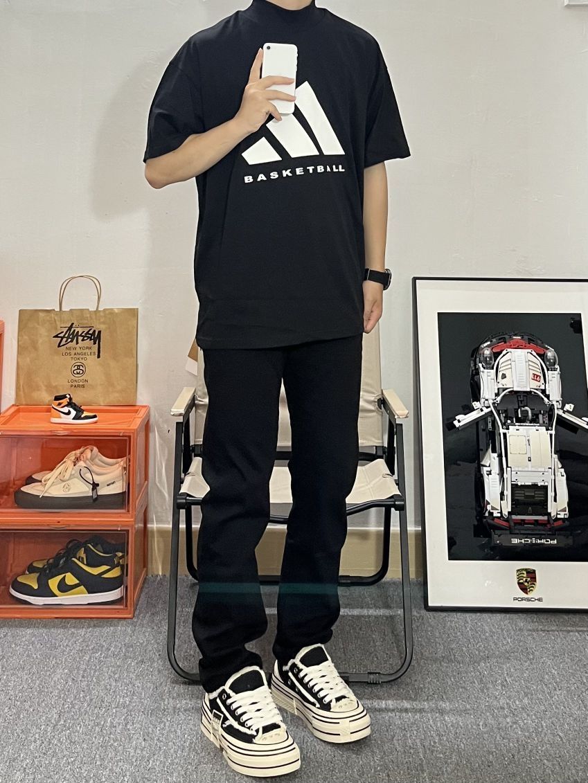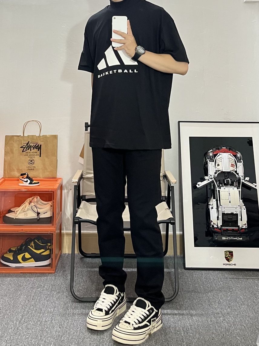 哈喽这里是pupu同鞋🏄🏻♂️ ——————————— . 👔:adidas · 👖:23R+ 偏修身的版型上身很显腿长 很有高瘦感 弹力面料很柔软不会很紧绷✔️很nice 黑色百搭很耐看 随便搭配一双球鞋就很帅 · 👟:xvessel ——————————— 💁🏻♂️:170/115 以上都是个人观点🍟欢迎讨论