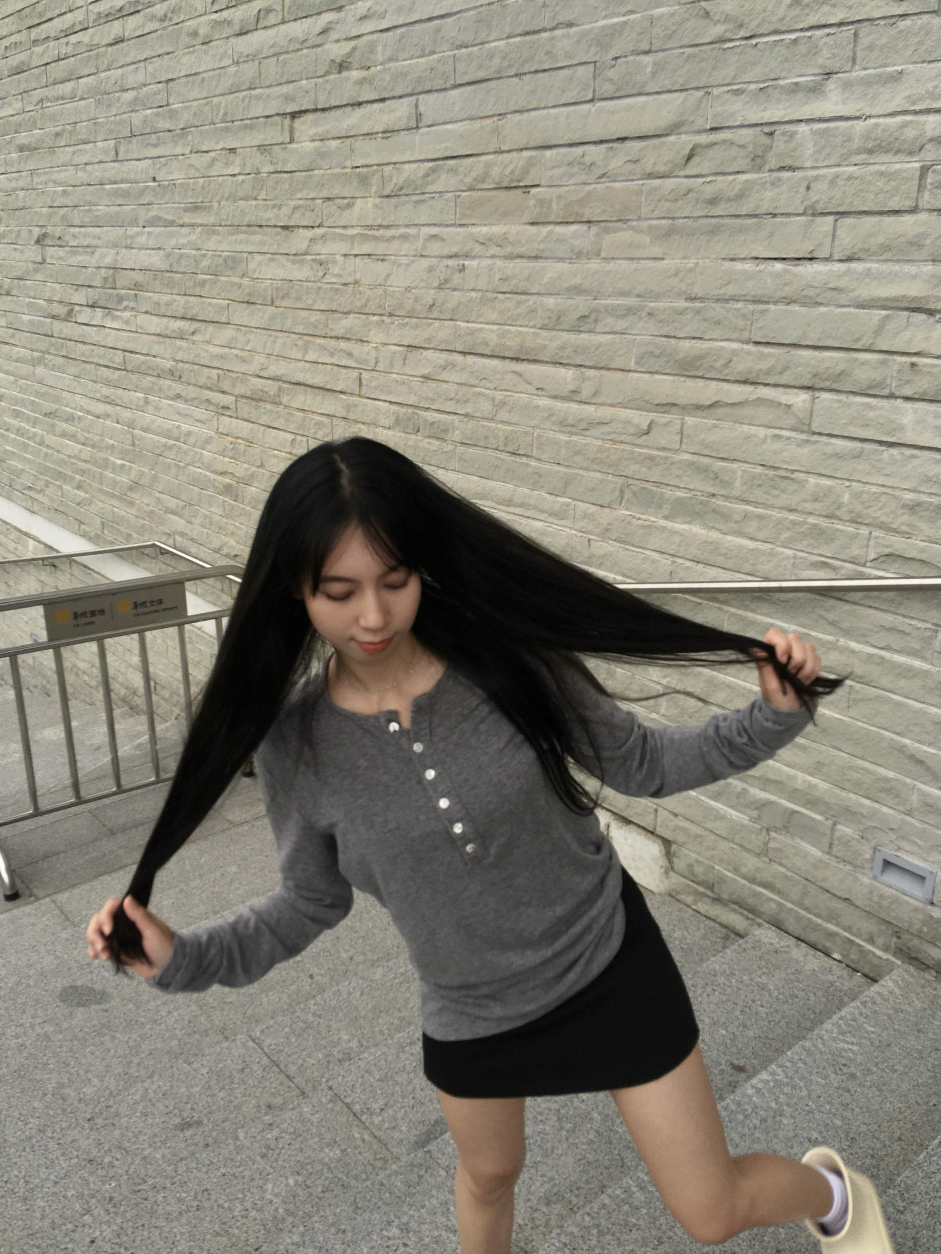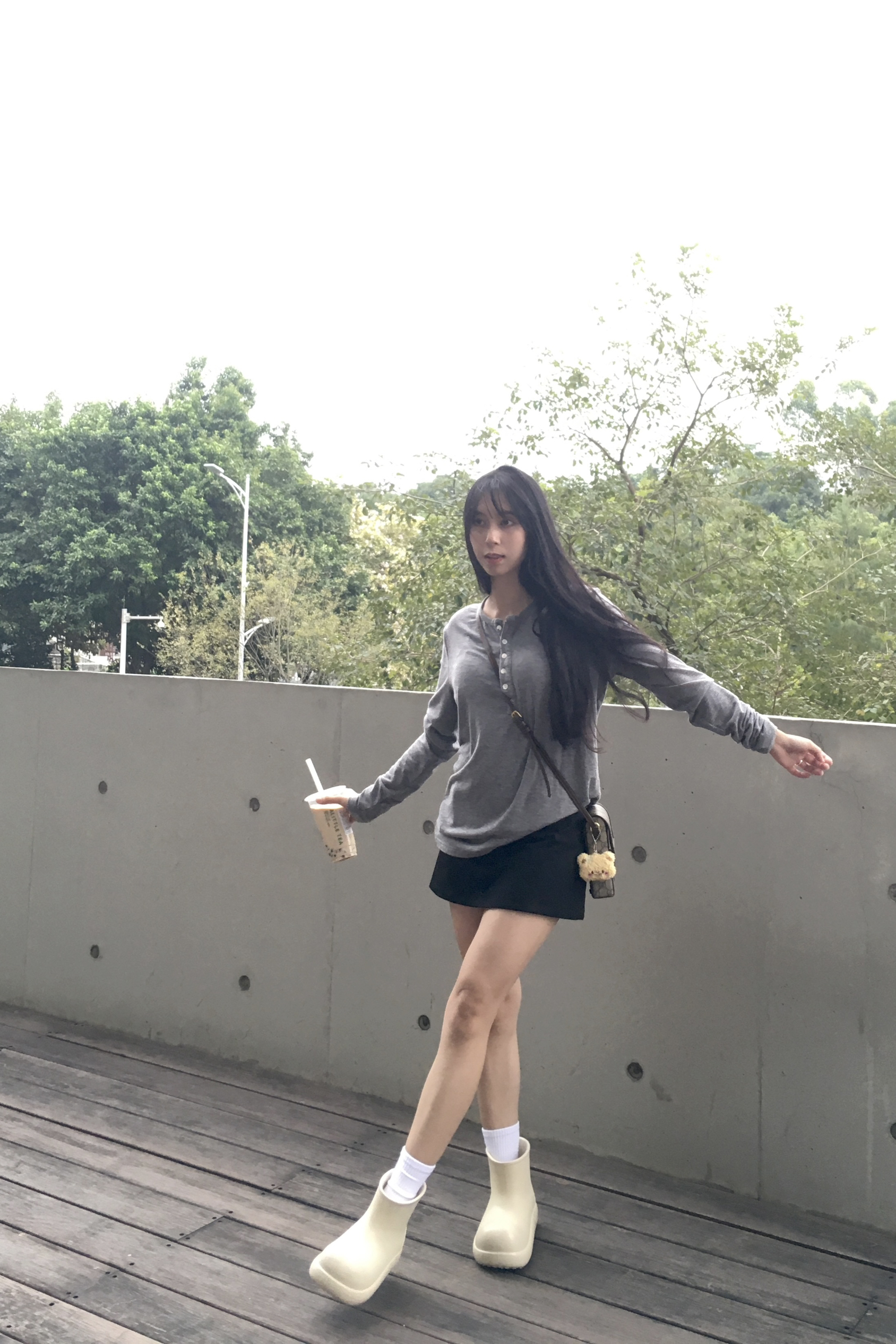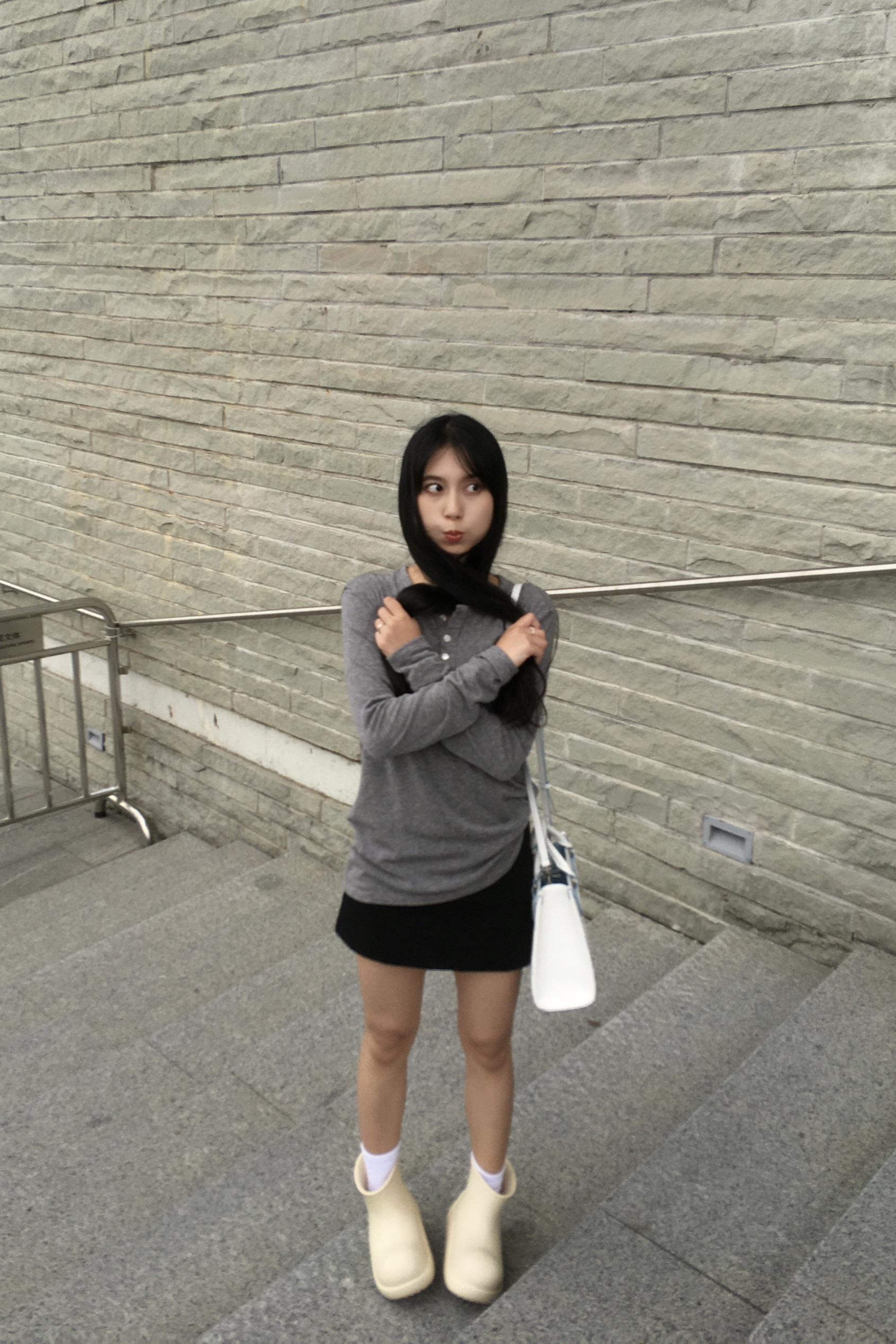 Hello~这里是梁梁! 抓住夏季的小尾巴 还是穿着短裙出门 利用基础色+小设计感给秋日穿搭拉开帷幕~ 灰色修身t+黑色西装短裙 再挎上一只轻巧的手提包👜 Casual出街吧!
