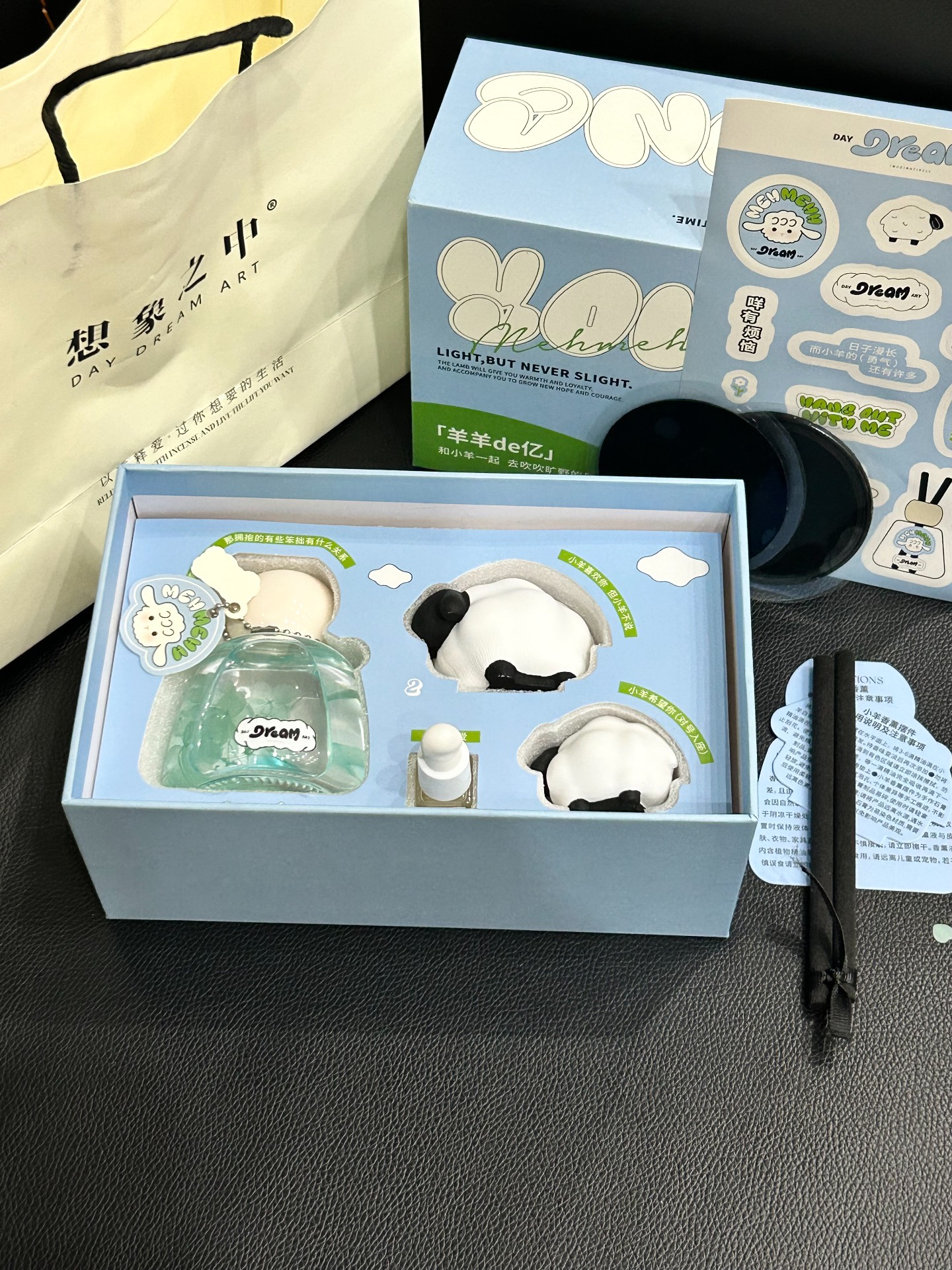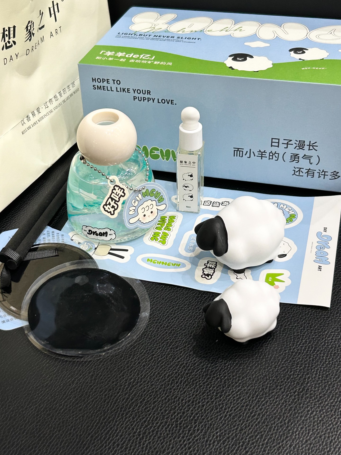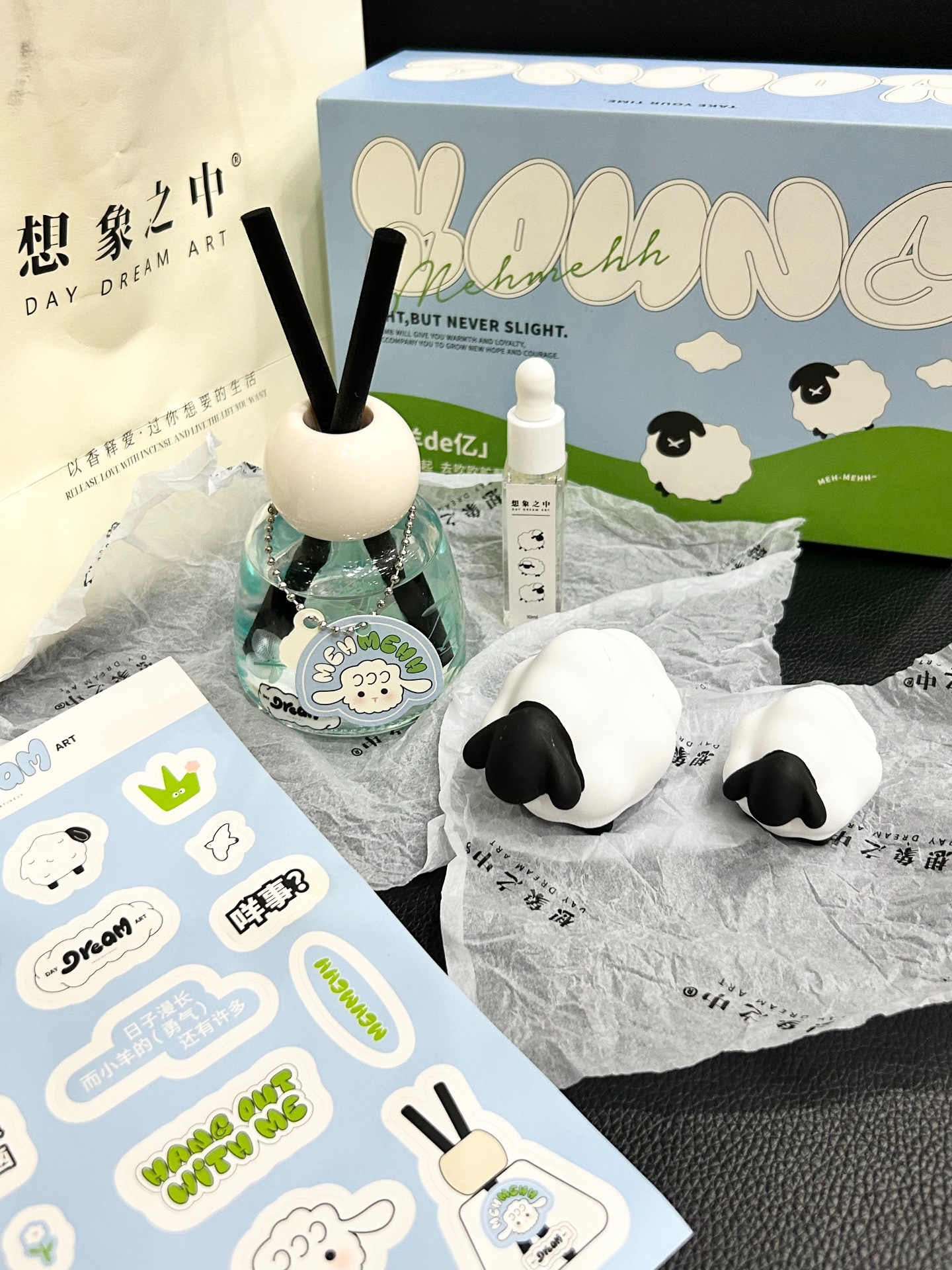 素小羊咩咩🐏无火香氛礼盒呀 可可爱爱 好有趣的创意小礼物 本来是想给男朋友的 这下好了,想自己留着了呢 里面有藤条香薰、两只羊咩咩、香薰精油和贴纸 闻着淡淡的 大自然的味道,很治愈~ 当摆件放在卧室得桌子上还挺好看呢 喜欢💕