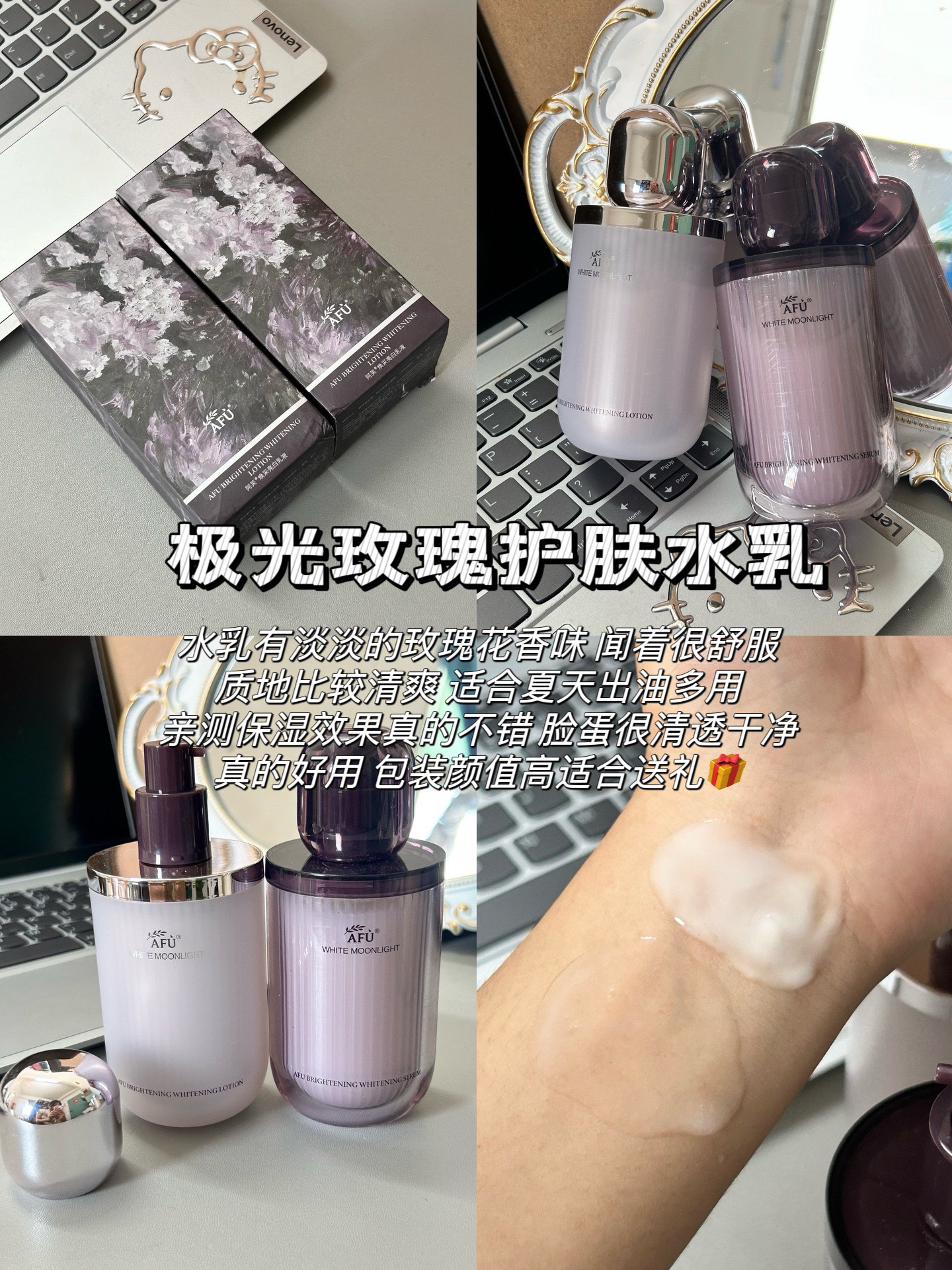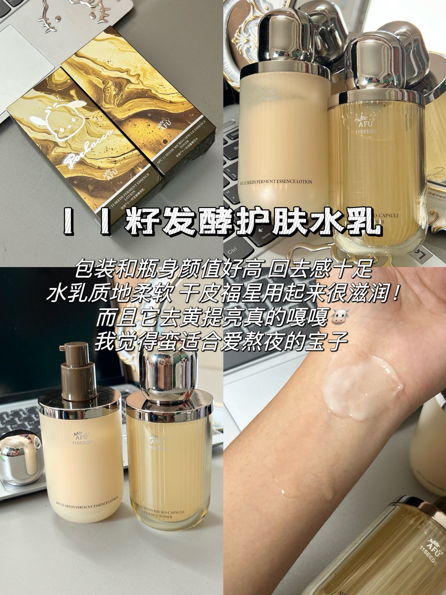 本篇笔记关联了AFU/阿芙 十一籽发酵精华水乳护肤套装 焕亮以油养肤淡纹抗干老 水120ml+乳120ml、AFU/阿芙 极光玫瑰焕采水乳面霜护肤套装 祛黄提亮 水120ml+乳120ml等商品,为用户提供真实的使用体验和购买参考。