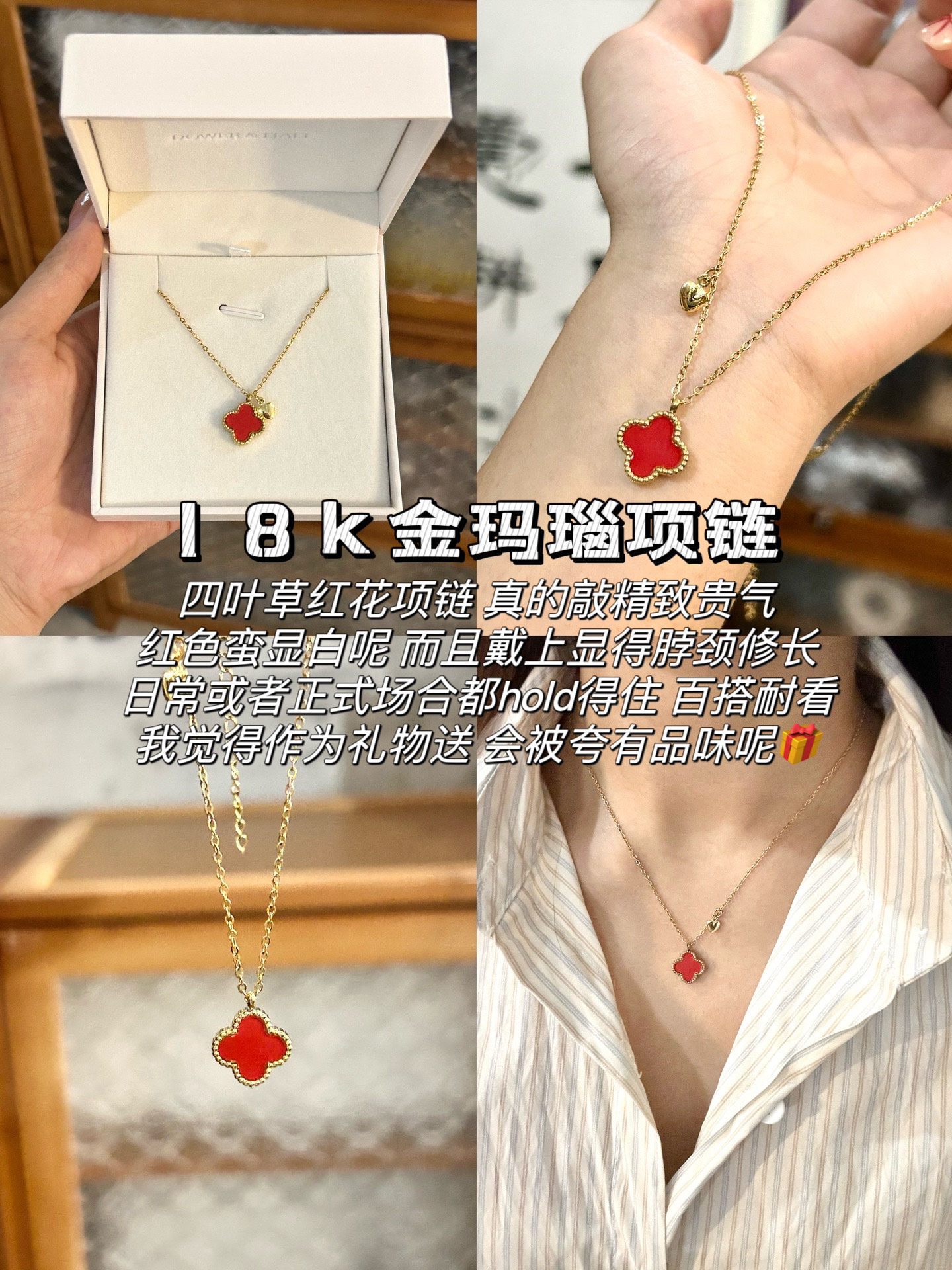 每次送礼物都头疼不知道送什么礼物的宝子们 我给大家整理了一期适合在节日送给女生的礼物 希望能够给正在挑礼物的宝子一个参考! 都是我觉得实用性和有仪式感的创意礼物🎁 18k金玛瑙项链 我才发现红色这么显白的,戴上显脖颈长! 质感不错,四叶草状的玛瑙吊坠,简约高级~ 和条纹衬衫还适配,日常或者正式场合都hold得住 我觉得在纪念日送npy很有意义! 购物袋通勤包 藏青色大容量购物包,既简约又时尚 ...