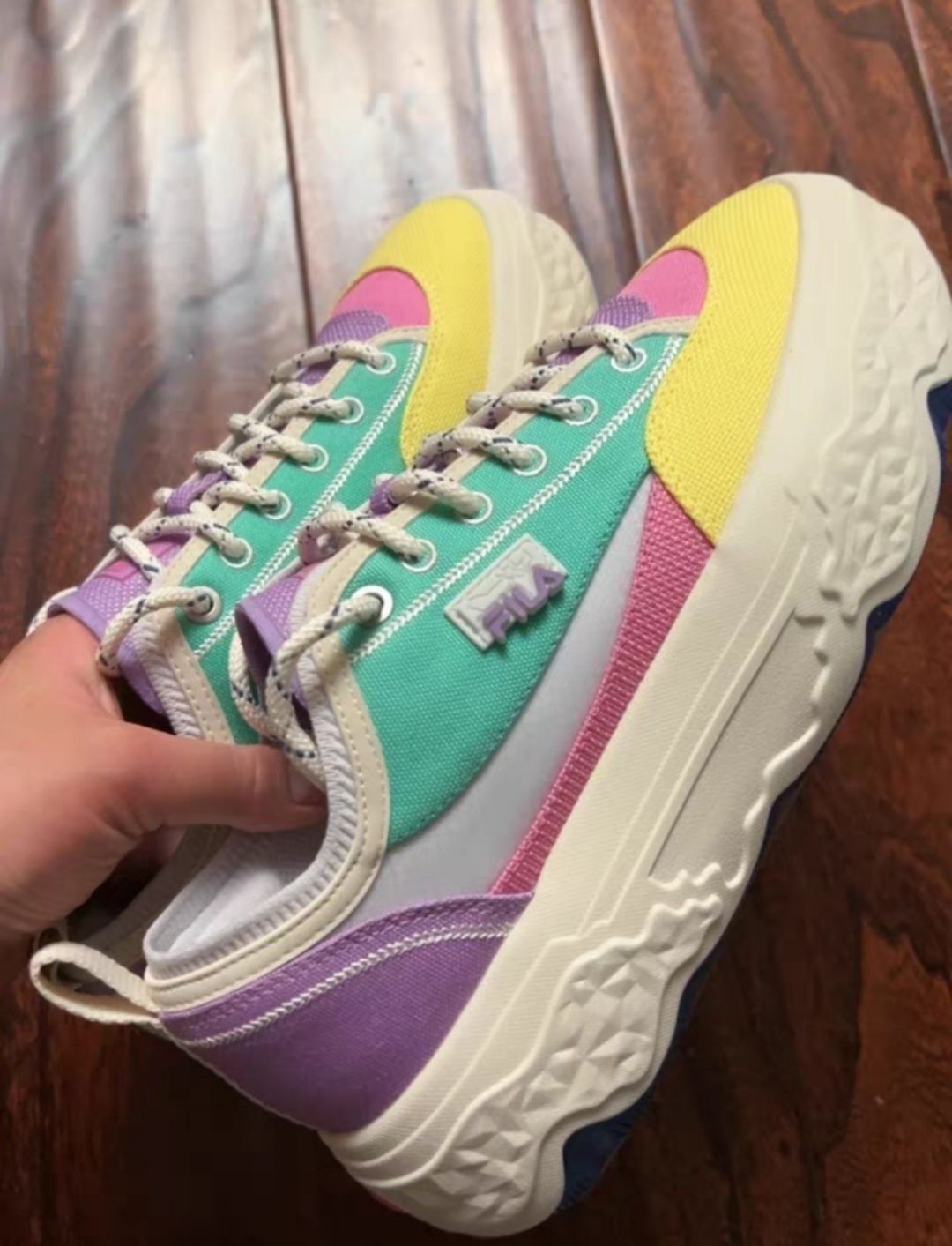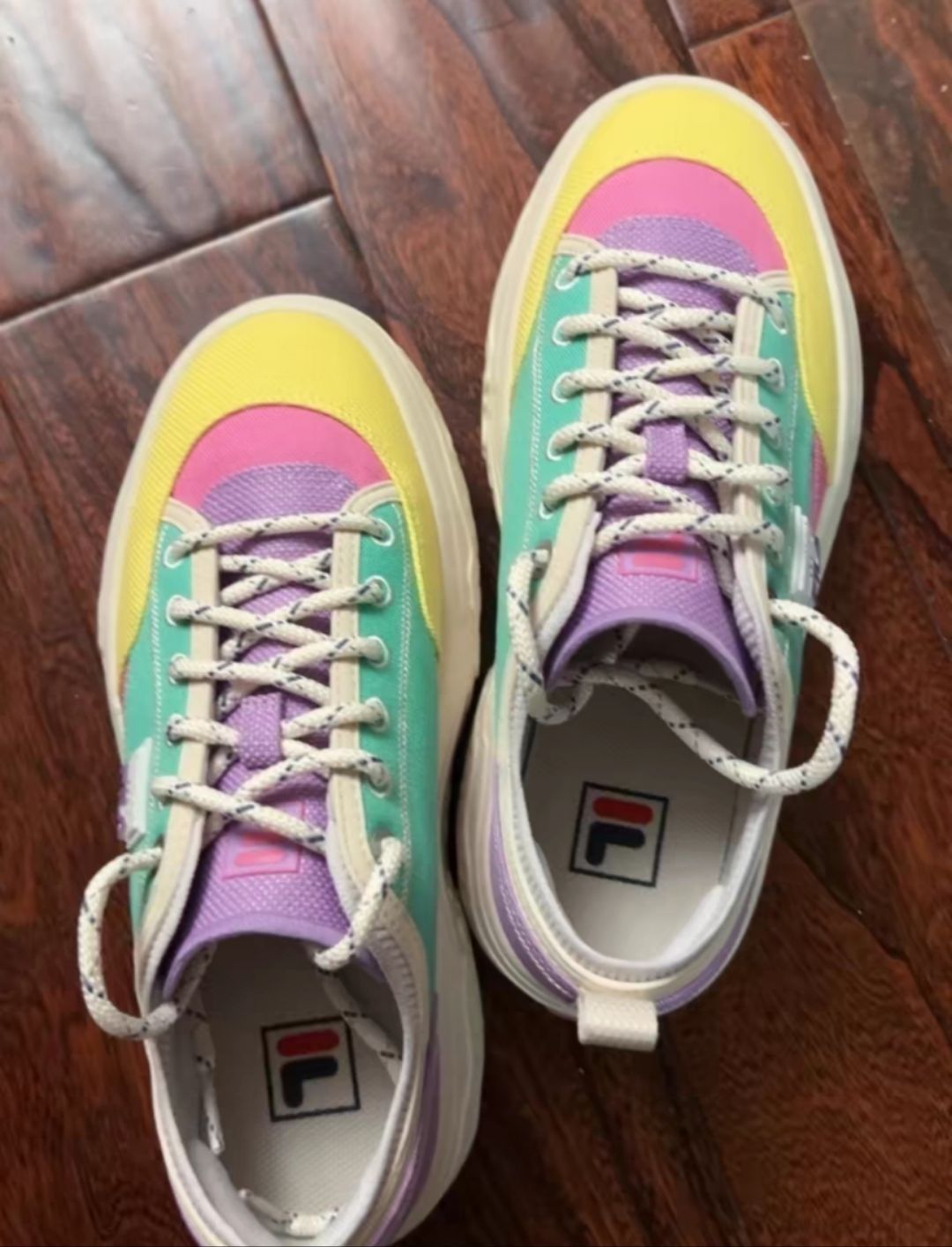 👟球鞋名称:fila rock岩石帆布鞋 🔍分享理由:杨幂同款,但是杨幂的没这个靓 🤔整体感受:颜色很跳脱,穿起来还行,后跟稍微有点磨,整体感觉还是很不错的,这个配色真的是太绝了,浅色搭配为主,拒绝黑衣人