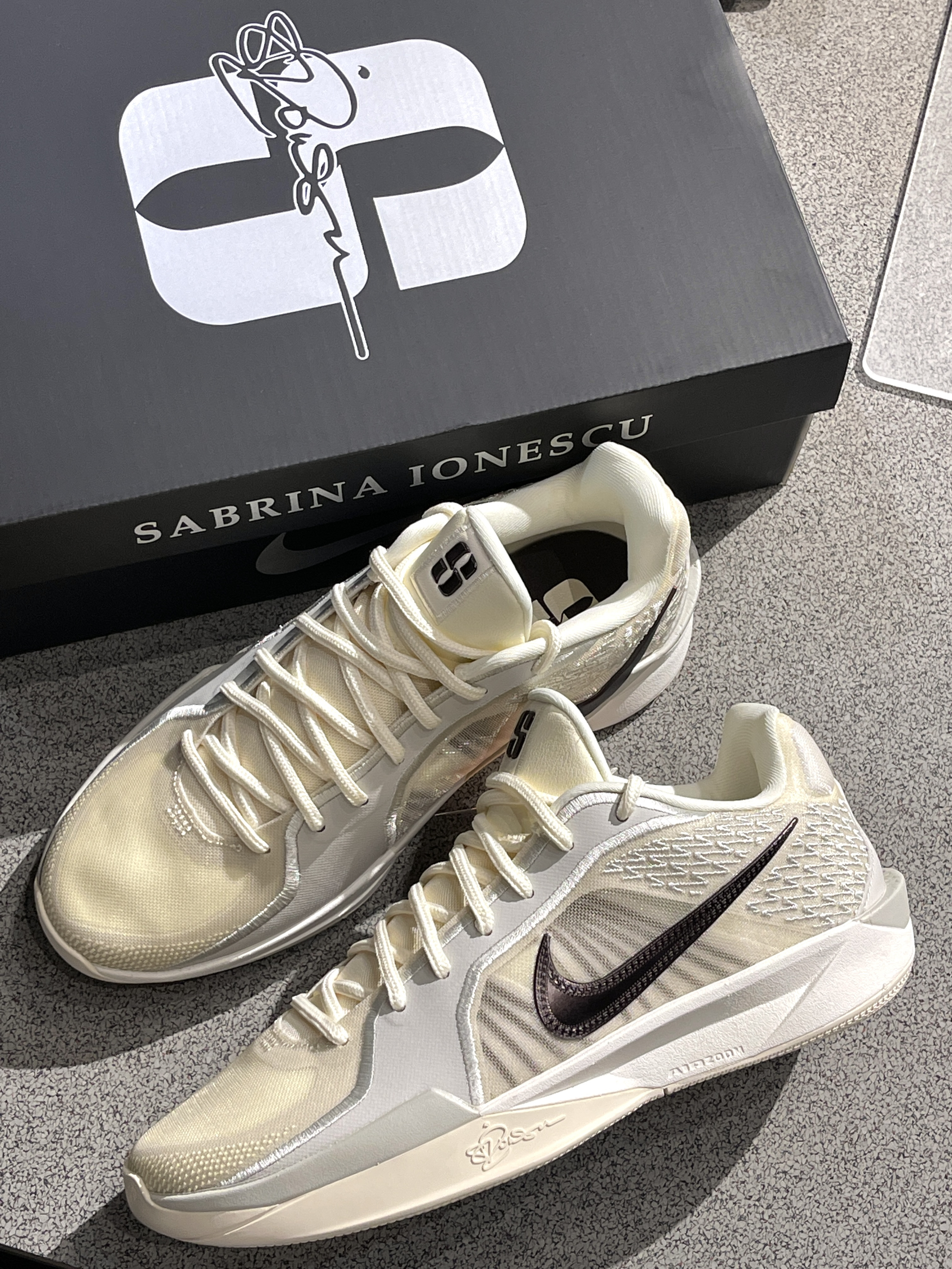 好评如潮的萨布丽娜2代战靴新配色!🤩 Nike|Sabrina 2 “Relentless”低帮篮球鞋“椰奶色”🥥,实物开箱质感满满哦~米白色椰奶鞋面➕银色Swoosh,整体层次感十足!外观酷似科比战靴~😍