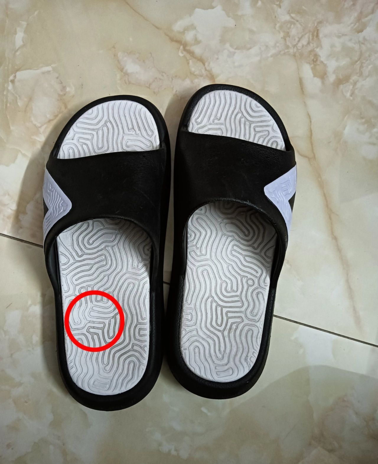 这双匹克拖鞋送我在去年八月份购物的,总体体验下来还算不错,鞋底没有什么磨平的迹象,但是由于它里面是白色,因此不太耐脏,第三张图会发现有一个明显的色差,其实刚开始穿的时候还没有觉得什么,但是一旦把它弄脏,这个色差就会特别明显,或许是因为有胶的原因吧,然后穿了一年鞋子,外侧的logo有一些裂痕,可能是因为我是室内穿,会穿着它洗澡的原因,当然,他还会磨我们的脚背,我的脚背之前被磨出水泡过 这是我发现的一...