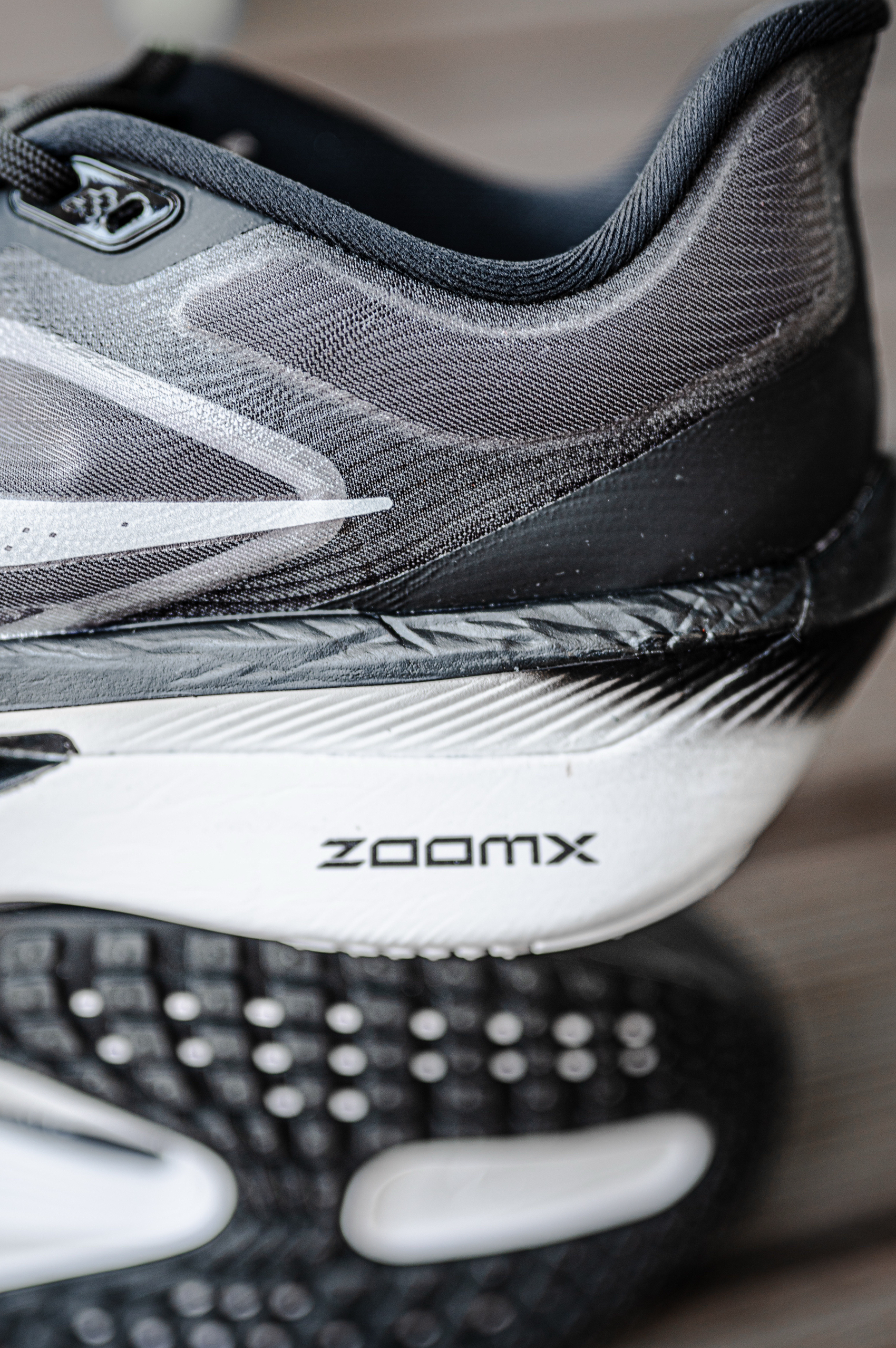 最近新推出的Zoom Fly6代我认为是脚感很好的一双跑鞋了,定位于公路跑鞋的它,我也是频繁穿着在路跑跑道。 这款黑色配色是很沉稳类型的,并且非常耐脏,鞋面适配范围广泛,科技人群也友好。 ZOOMX气垫的配置我认为大体重跑友也可以穿着,尺码正常选择即可。