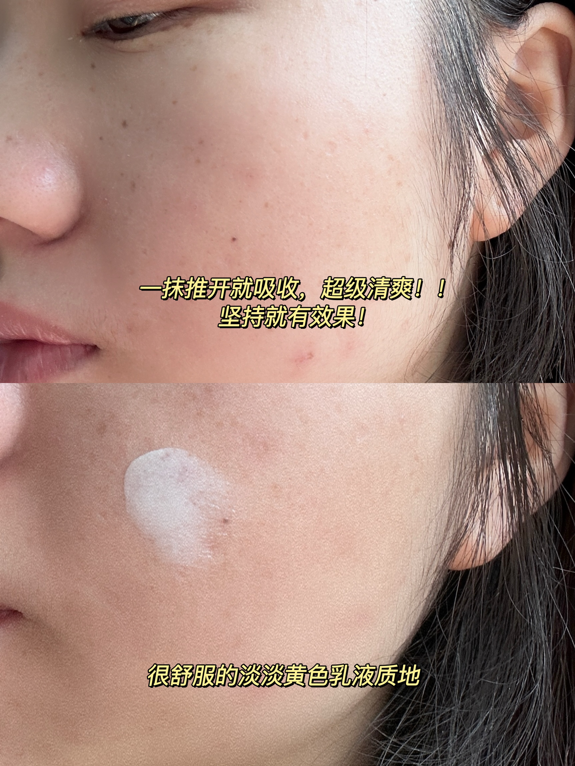 我因为之前长痘留下痘印暗沉 还有脸上的小雀斑 导致肤色不均,脸蛋看起来很脏 很需要米白 听说377是米白届的扛大旗高手 坚持使用一段时间后 暗沉慢慢在变淡,肤色也一致了一些 整体气色好了不少 每次早晚按压一泵 Get素颜好皮肤啦!