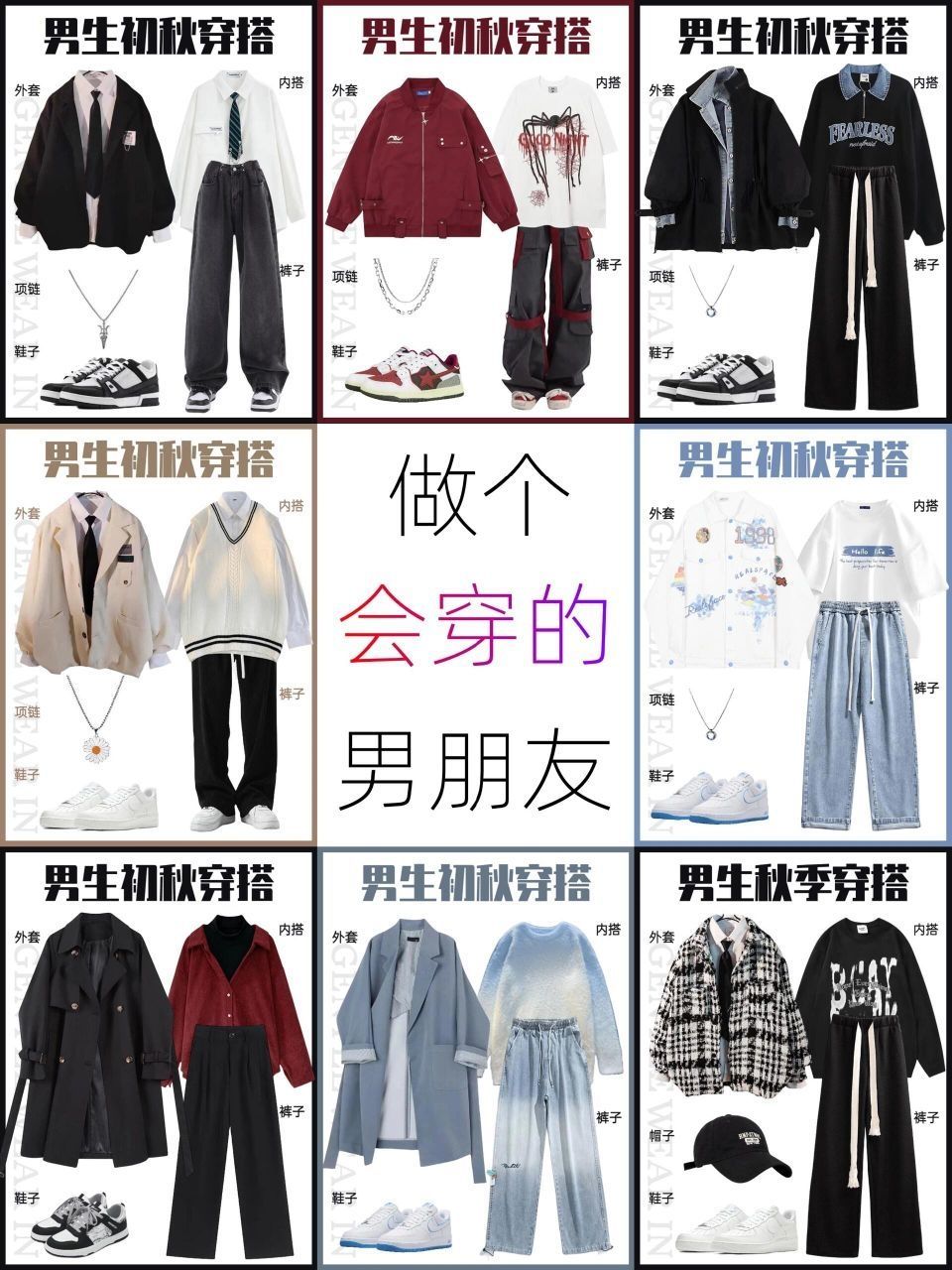 🥾LOOK1️⃣:深秋的标配,毛呢大衣,保暖又时尚,搭配休闲裤和运动鞋,你就是韩剧男主角! 🥾LOOK2️⃣:简约款棉服,搭配高腰裤和马丁靴,轻松打造韩系高级感! 🥾LOOK3️⃣:工装风的裤子搭配简约款的牛仔外套,轻松穿出活力少年感! 🥾LOOK4️⃣:夹克外套搭配休闲裤,轻松打造韩系潮流风格,潮男气质! 🌟韩系高级感男装搭配主要追求简约、舒适、有质感,在颜色上主要以基础色为主,给人一种温暖又高...