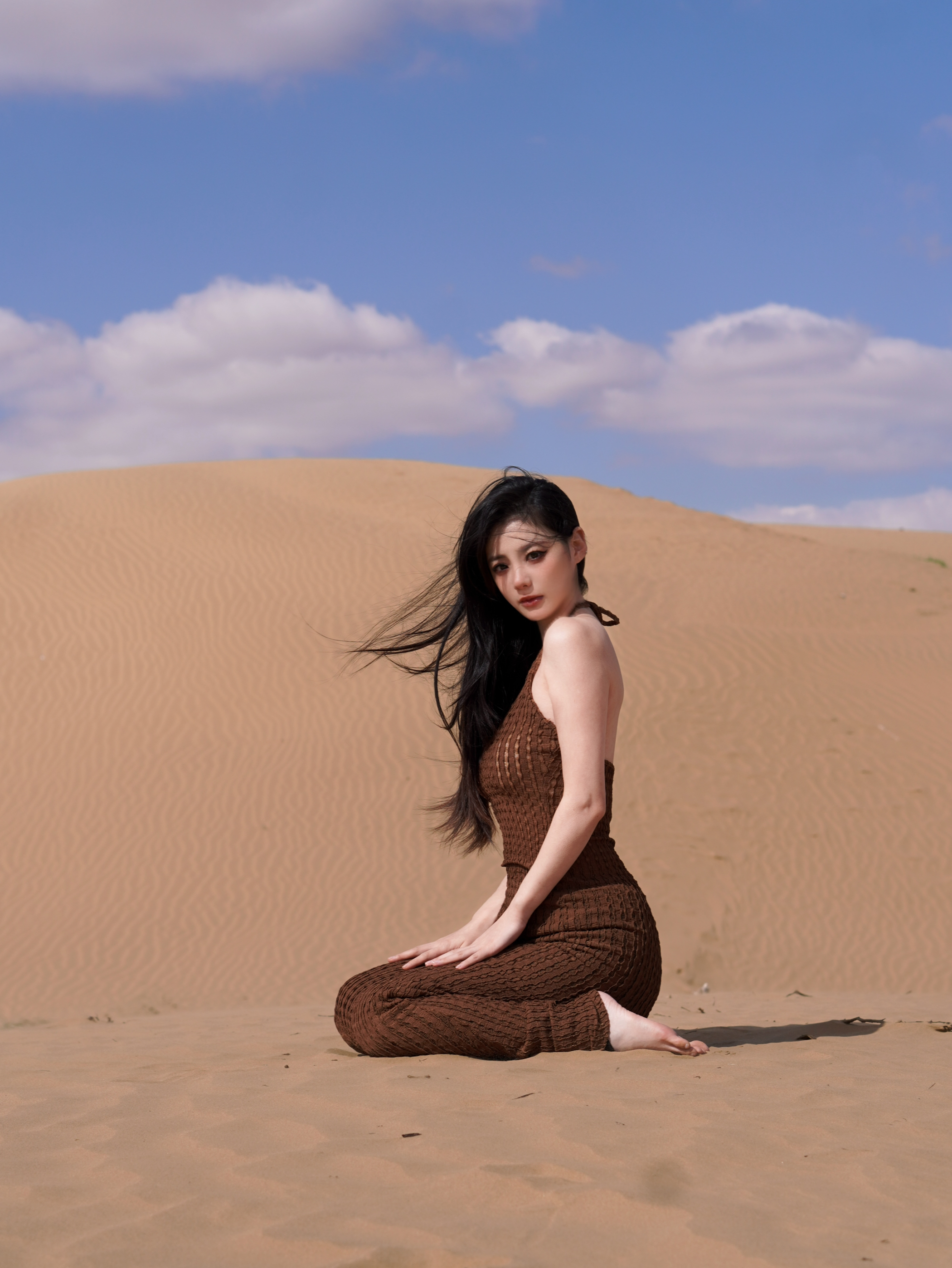再冷也要出片的女人 沙漠拍真的太有氛围啦 沙漠 蓝天 白云 每一张都好绝 风吹来瑟瑟发抖 也要让每一根发丝都美出天际 🏜️ 穿着和妆容上面 选的美拉德色系 真的配上沙漠好高级 大地之母即视
