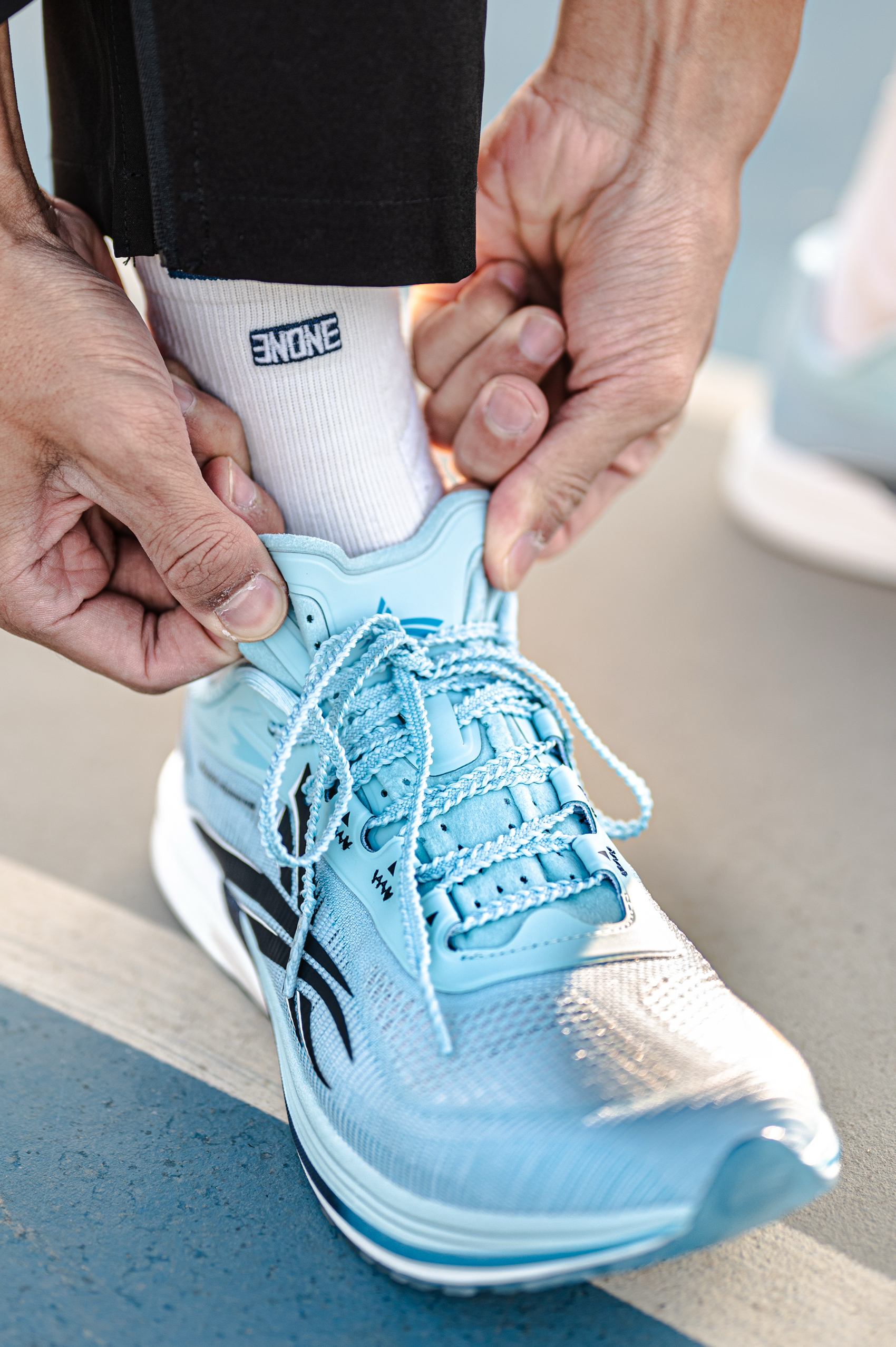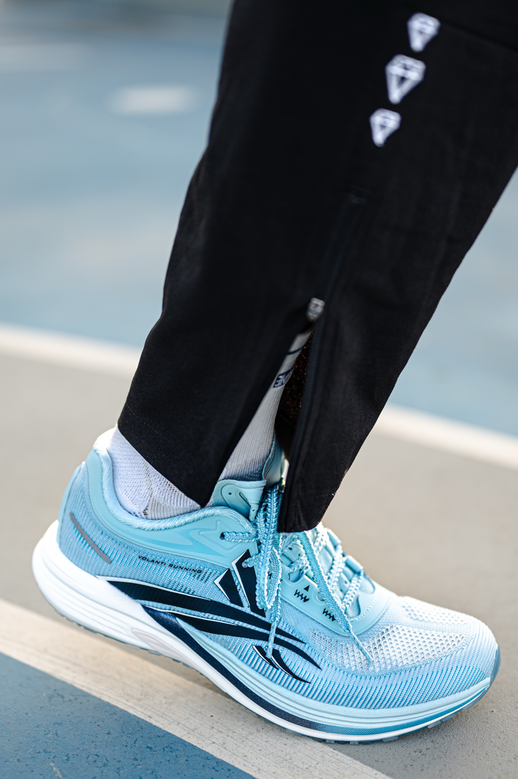 这双蓝色色系的火箭气垫跑鞋我认为是非常好看的,它的整个蓝色不会说太过于饱和,是比较好穿搭的。 这双跑鞋我也回购过很多次了,性能方面也在线,配置则是前掌气垫、前掌碳板、TPU加持,这套配置体考生们穿着是足够的。 对于百米竞速的整个启动感是很灵敏的,跳远所需要的抓地力需求也很OK,我认为在体考体测项目上是非常适配的。