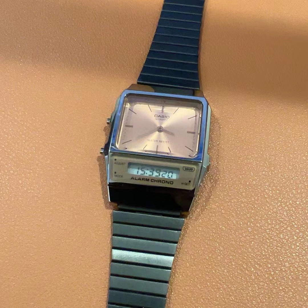 本篇笔记关联了Casio/卡西欧 DIGITAL系列 不锈钢表带30米防水离子镀双显表盘小方块石英男士手表 橙色 AQ-800ECGG-4A等商品,为用户提供真实的使用体验和购买参考。