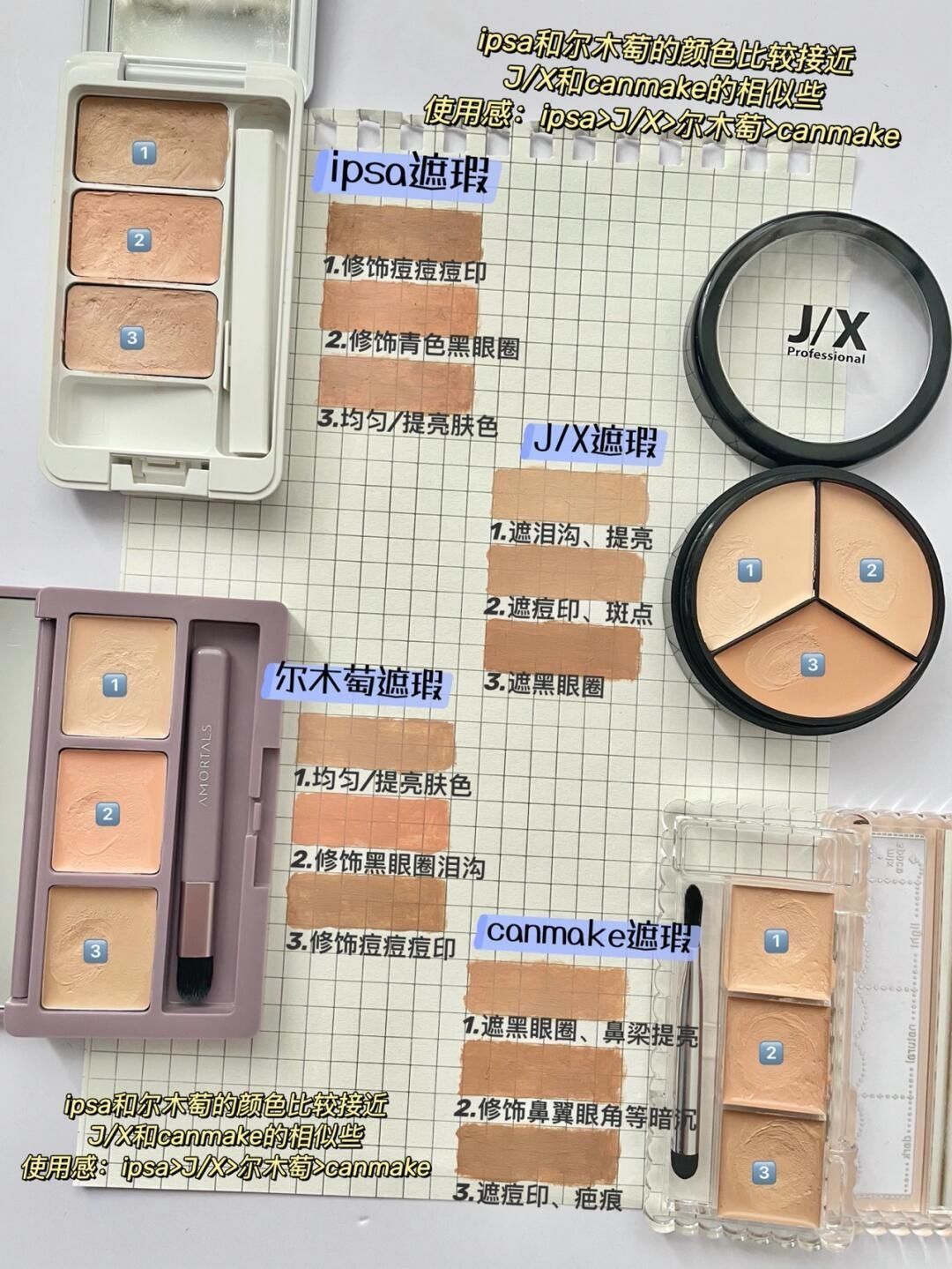 本篇笔记关联了NYX 六色遮瑕盘 9g、Ipsa 纯美无瑕三色遮瑕膏 清透遮黑眼圈 遮痘印 提亮 4.5g 光透无瑕、歌剧魅影 遮黑眼圈遮痘印裸妆六色遮瑕盘 提亮 40g #基础色等商品,为用户提供真实的使用体验和购买参考。