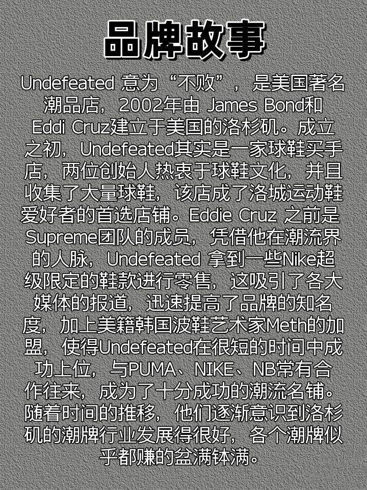 【每天认识一个品牌丨Undefeated】,由用户 王波穿搭小卖部 分享,来自辽宁。这是一篇来自识货社区的真实用户分享笔记。