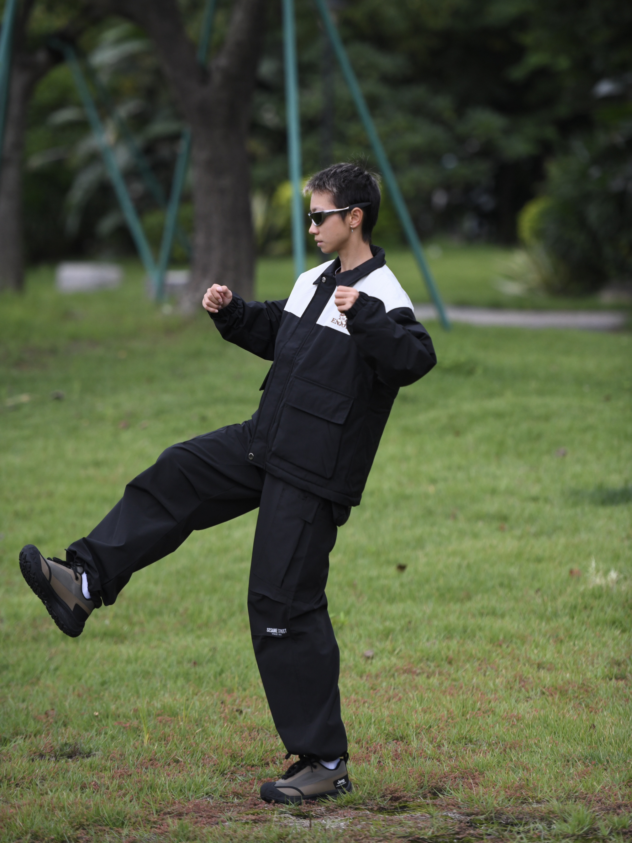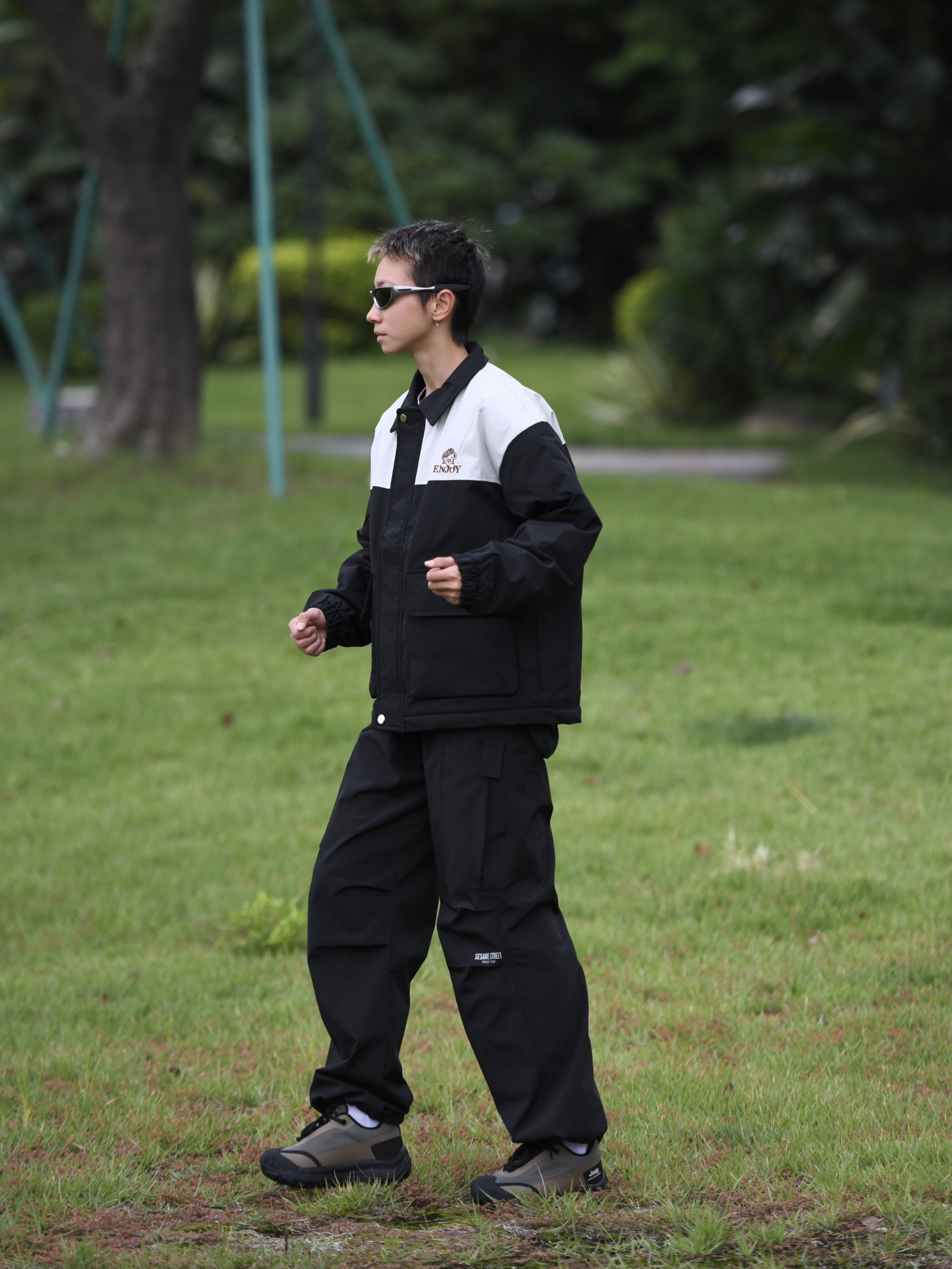 哈喽,欢迎来到哇哇哇穿搭分享频道! 172CM|55KG|👔:M 👖:m|👟:39码搞 上身黑白拼接棉服 可可爱爱 还带领子哒 两个口袋可以装很多东西耶✌️ 穿上咯黑色工装裤 不费力秋冬穿搭get Jeep 黑绿拼接哒户外鞋 我也穿上啦 圆头的设计还挺可可爱爱 鞋底防滑耐磨 就很适合我这种经常徒步的人儿!