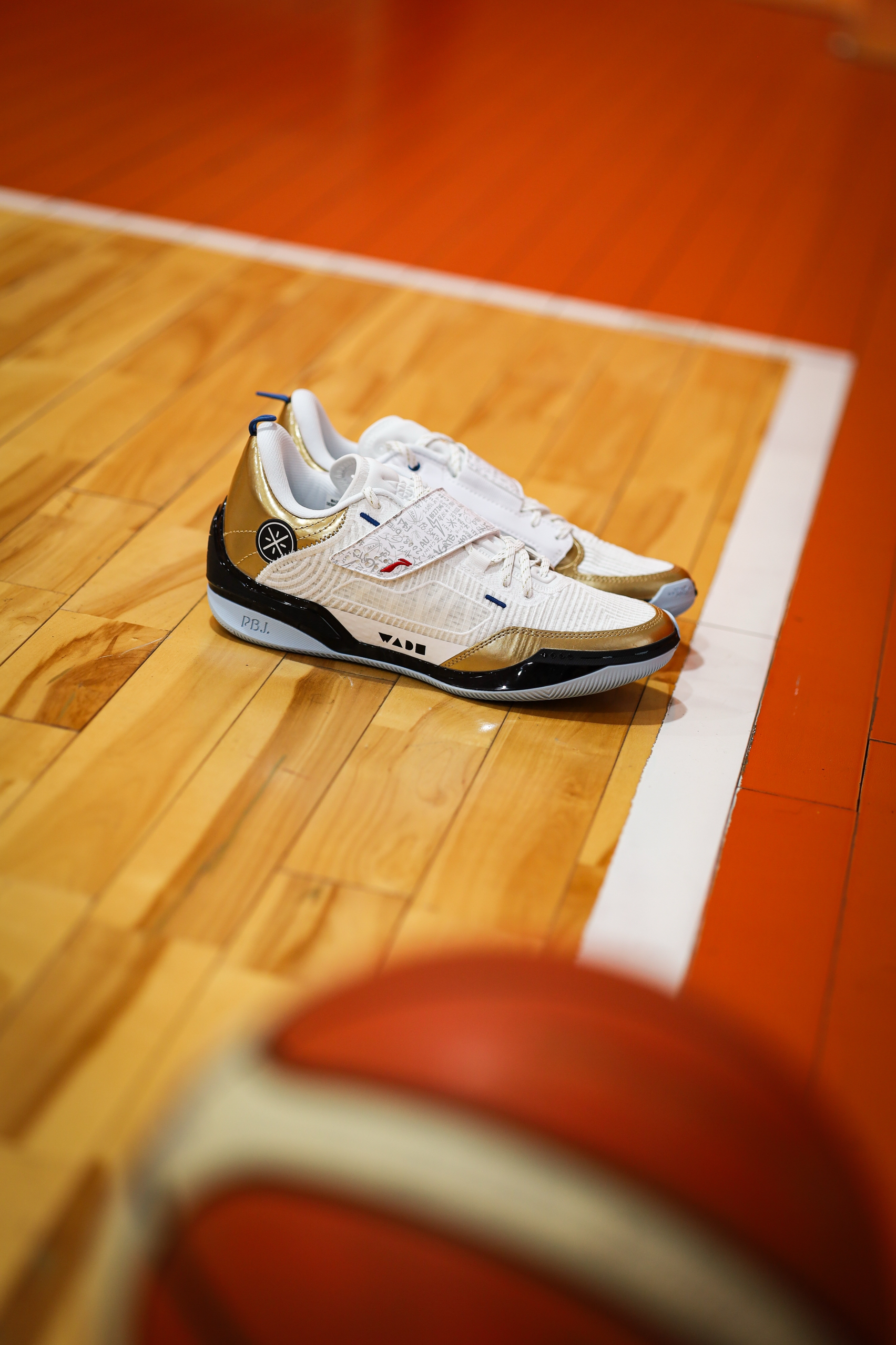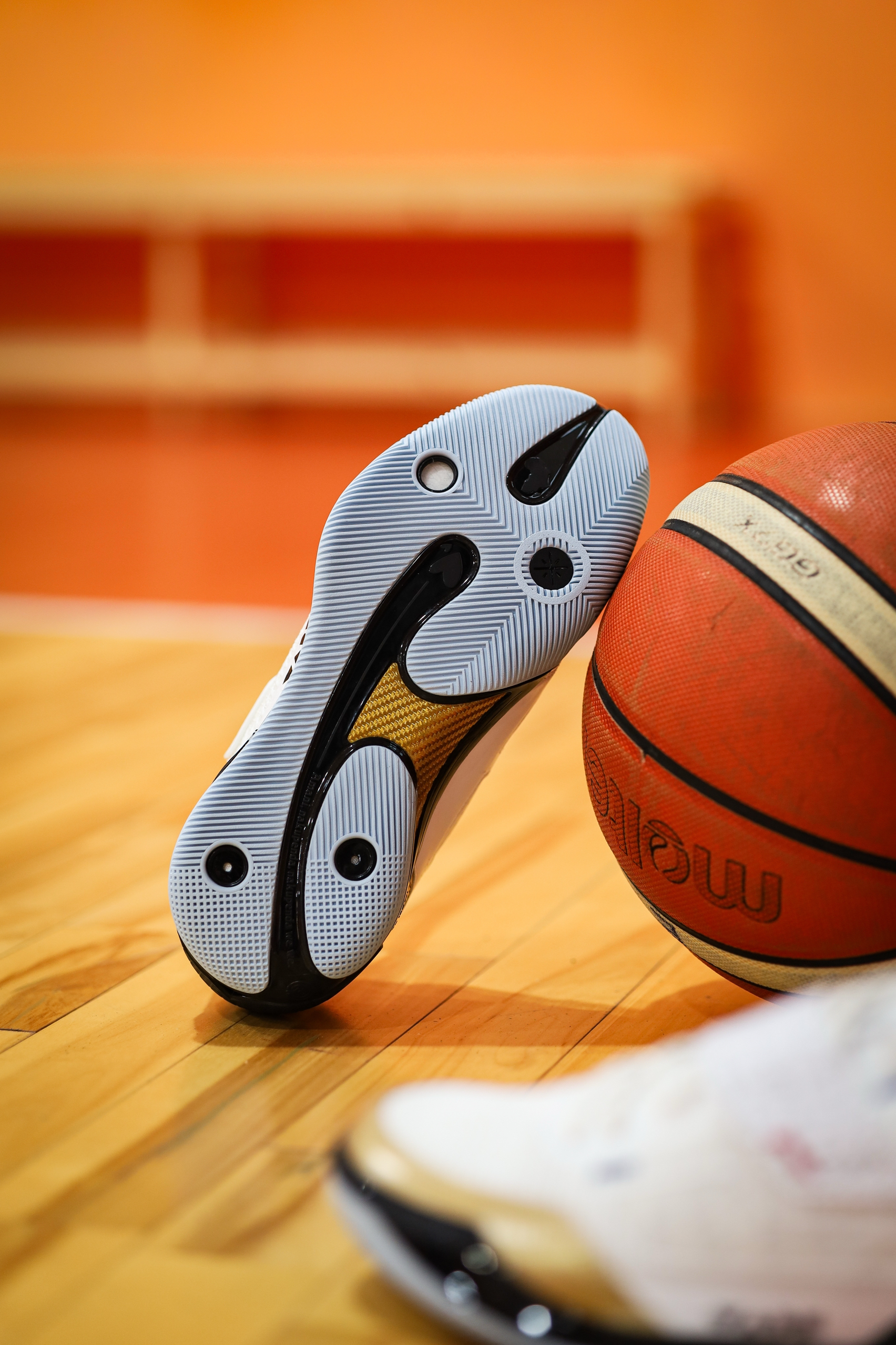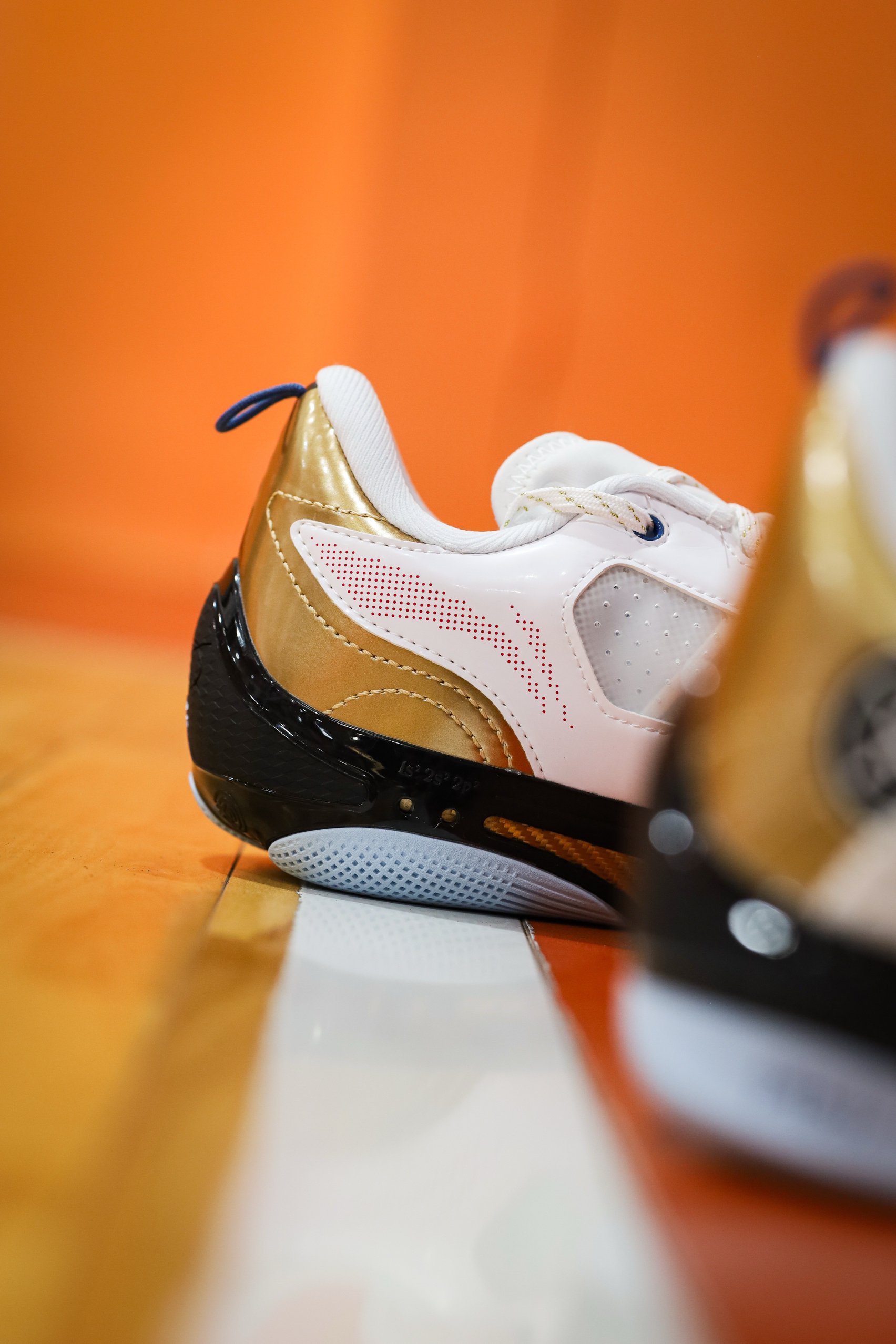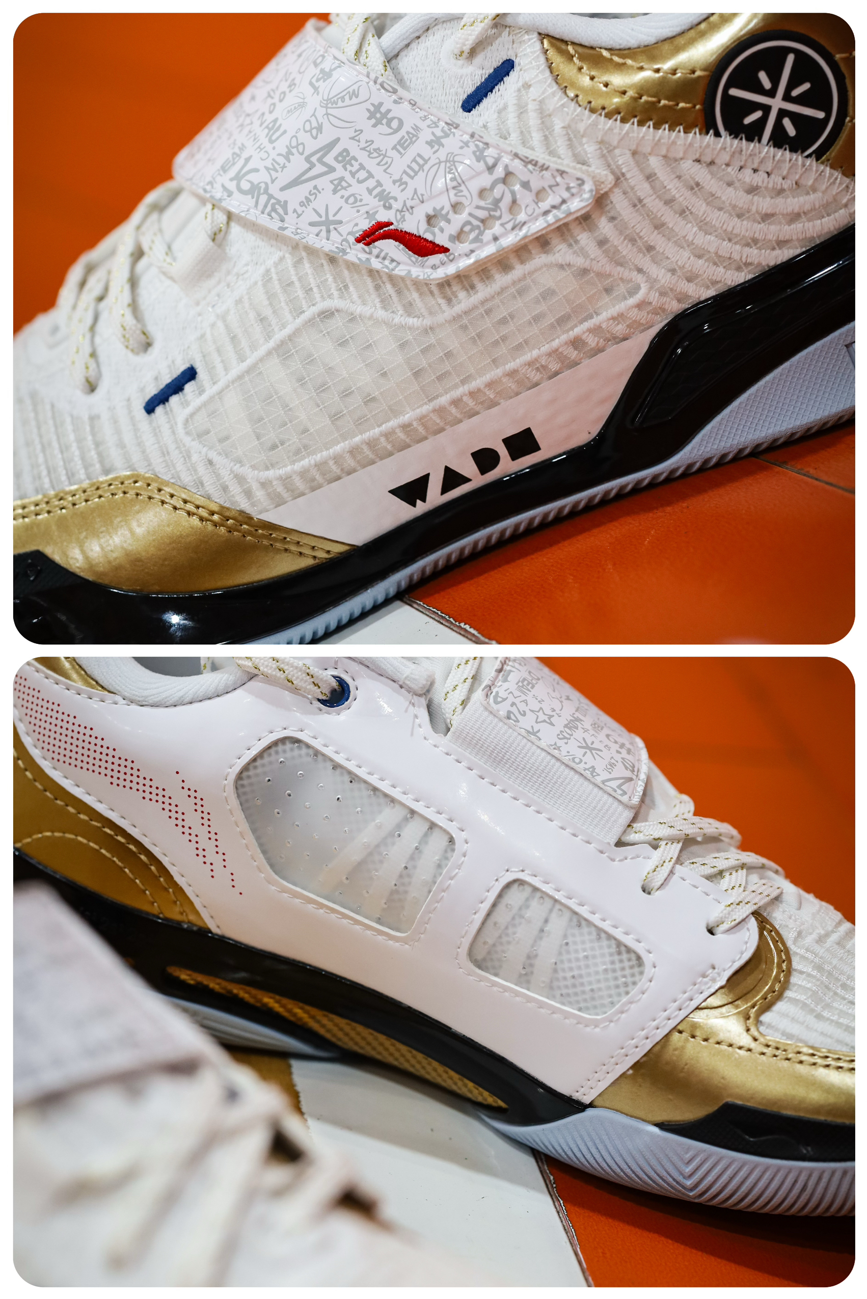 说真的,808四代Ultra的颜值我个人觉得是非常帅的。 虽然有魔术贴,但是鞋型并不会显得臃肿,修长凌厉,很有速度感。 而我这双得分王配色,白金搭配,也看起来高贵典雅,上脚非常炫酷。 同时这双鞋还有丰富的细节,特别是魔术贴上满印的韦德元素。 顺便说一句,这块金色碳板真的太帅了! 不知道兄弟们觉得它颜值如何呢?
