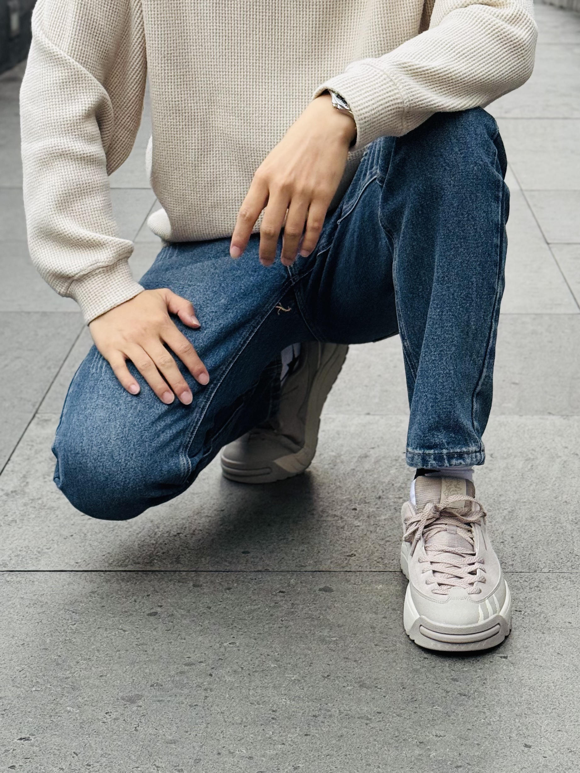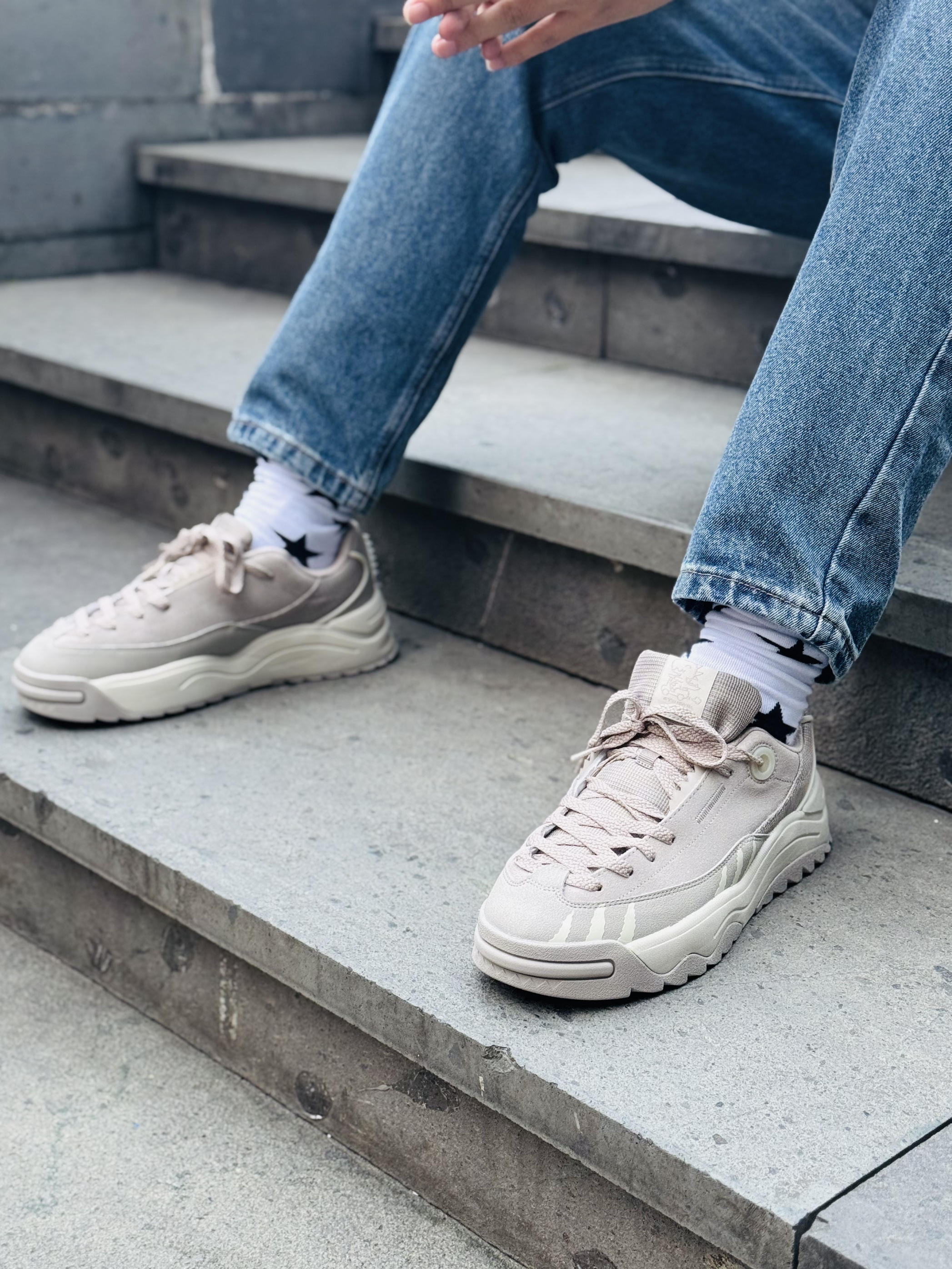 今年的秋冬季注定是国产鞋穿搭季 为什么这么说呢? 前几年钩子、椰子已经收割得够多了 也该国产鞋登场了 最为关键的是国产鞋的设计已经展现出了它的生命力了 今天的这款个人觉得除了性价比之外就是这个设计了 灰白的颜色搭配在秋冬季可以说是百搭 鞋面反毛皮的设计又是中高端球鞋的标配 这么一双极具辨识度的恐龙鞋 绝对会拿捏当下秋冬季大学生穿搭。