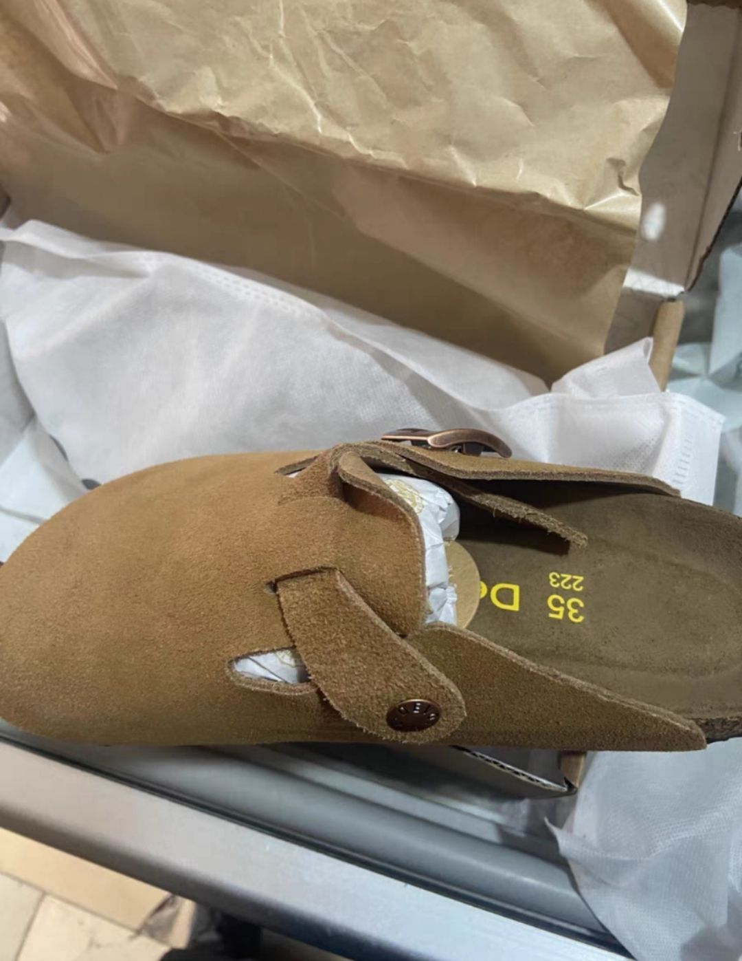 👟球鞋名称:devo life勃肯鞋软木拖鞋鞋拖 🔍分享理由:时尚的欧美元素,让人神往 🤔整体感受:鞋子穿起来很带感,但是些微有些磨脚背,轻微掉色,搭配深色厚袜子一切都不是问题了,毕竟为了鼠标也要搭配一台电脑是不是呢?学生党有限考虑