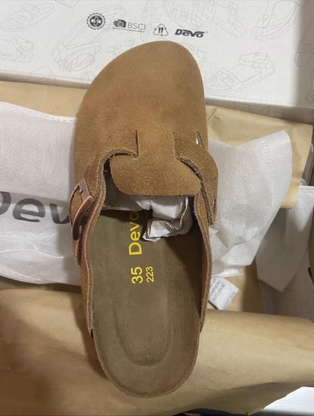 本篇笔记关联了Devo/的沃 软木 复古法式绒面 包头 外穿 磨砂皮 反绒皮 一脚蹬 半拖鞋 黄棕/反绒皮等商品,为用户提供真实的使用体验和购买参考。