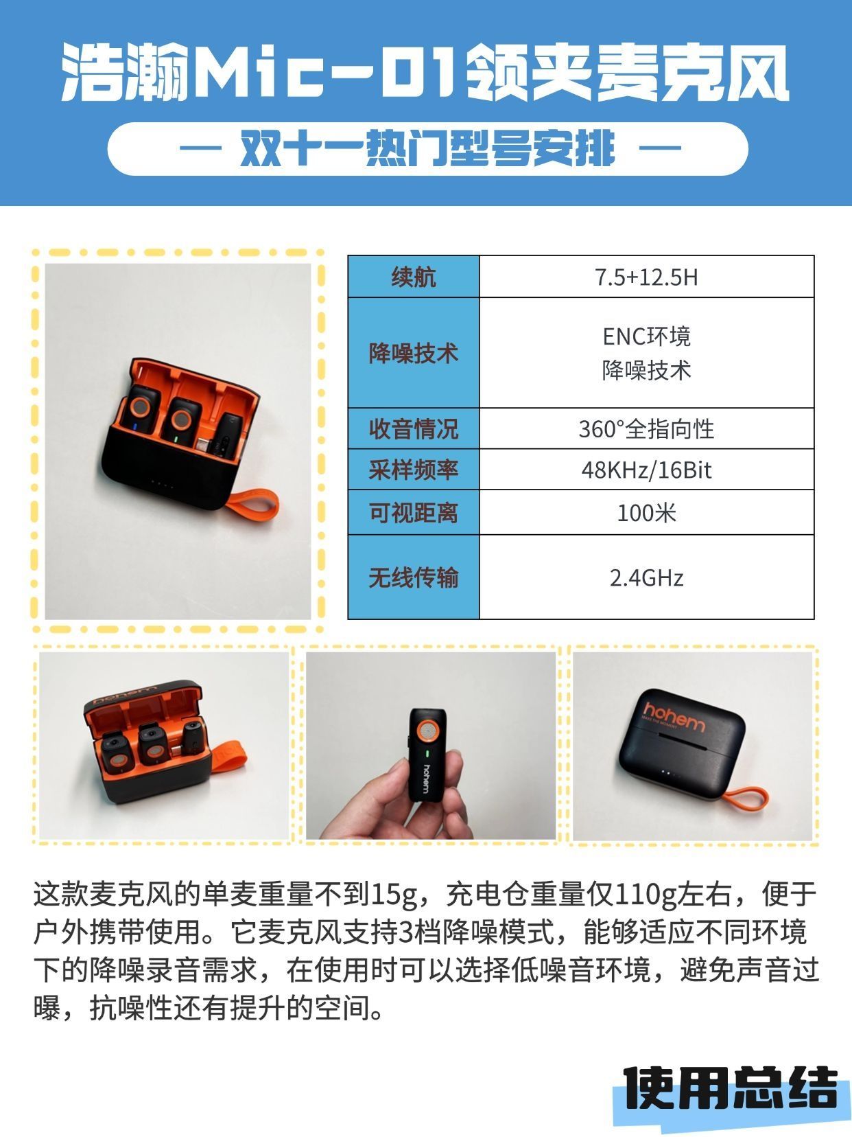 本篇笔记关联了hohem/浩瀚卓越 MIC-01 2.4G连接 夹领佩戴 麦克风话筒 降噪 直播话筒 收音麦 讲解器 手机K歌 主播 短视频 星耀黑、XISEM/西圣 Mike 无线(领夹式)麦克风话筒 超CD音质 即插即用 黑色、Ulanzi/优篮子 AM18 领夹一拖二无线麦克风话筒 收音 防风 【安卓苹果通用】超长续航|防风毛衣|手机相机通用黑等商品,为用户提供真实的使用体验和购买参考。