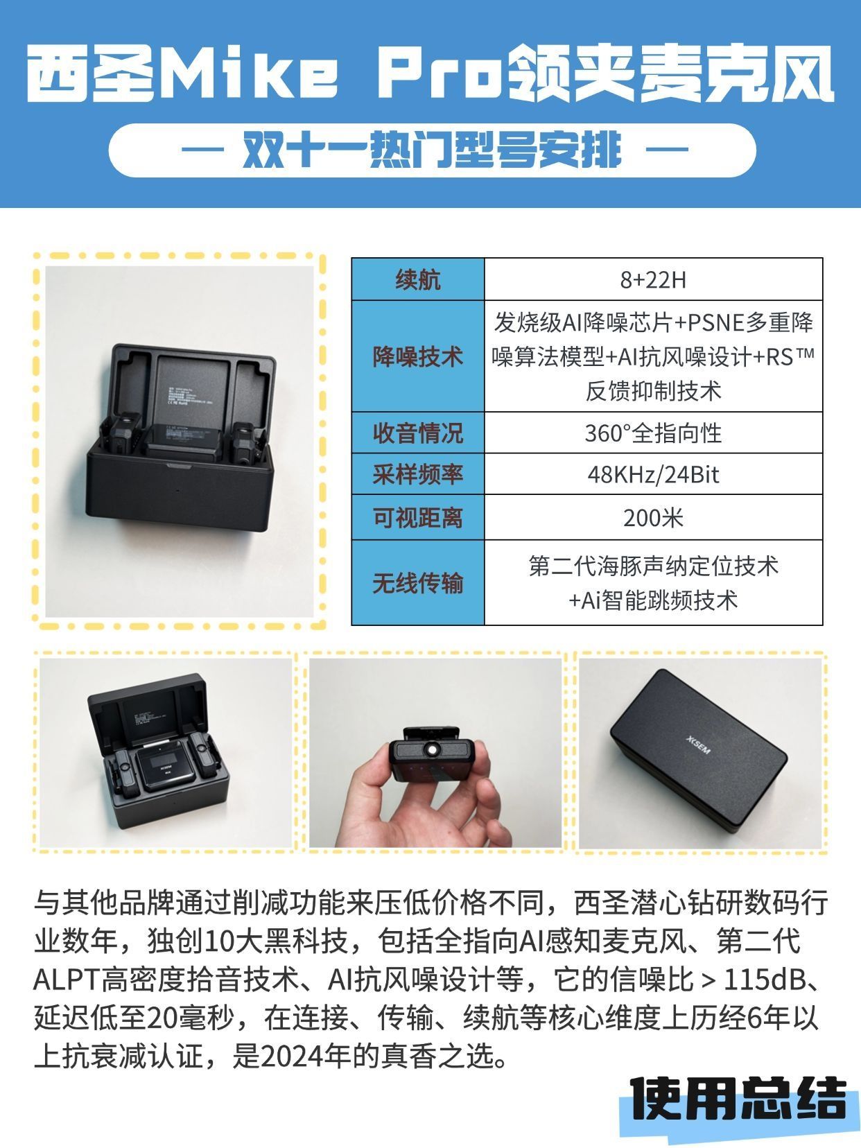 🛒在今年双11这个年度购物盛宴中,你是否已经为自己的直播或Vlog拍摄准备好了一款得心应手的无线领夹麦克风呢?如果没有的话,那可要抓紧时间啦!今天,我就来给大家送上一份超实用的无线领夹麦克风挑选指南! 🎁西圣Mike Pro领夹麦克风 与其他品牌通过削减功能来压低价格不同,西圣潜心钻研数码行业数年,独创10大黑科技,包括全指向AI感知麦克风、第二代ALPT高密度拾音技术、AI抗风噪设计等,它的信...